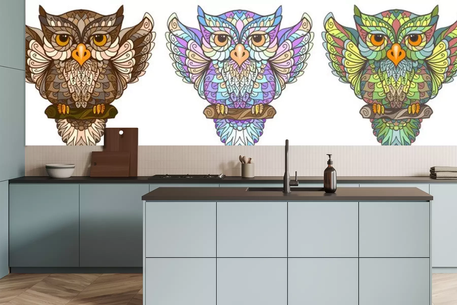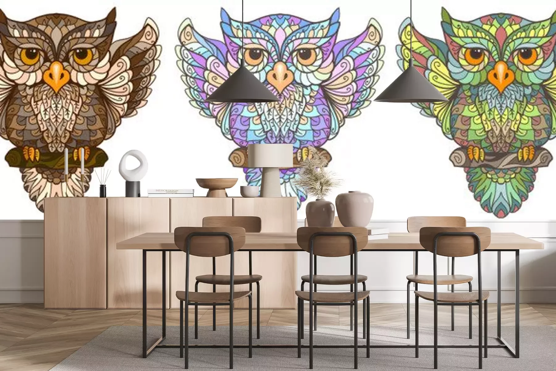 Hiboux colorés sur fond blancLivraison sans problème assurée par des transporteurs de confiance