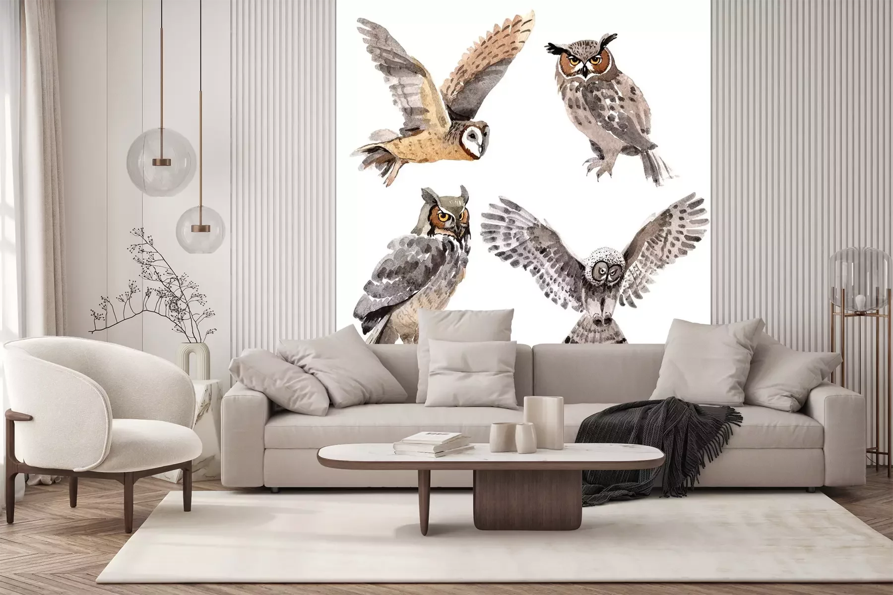 Motif aquarelle avec des hibouxLivraison sans problème assurée par des transporteurs de confiance