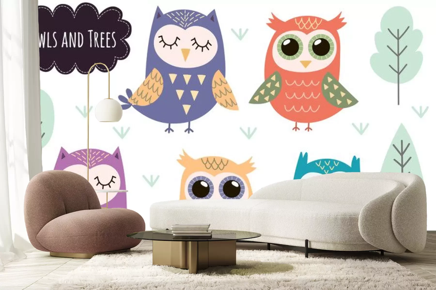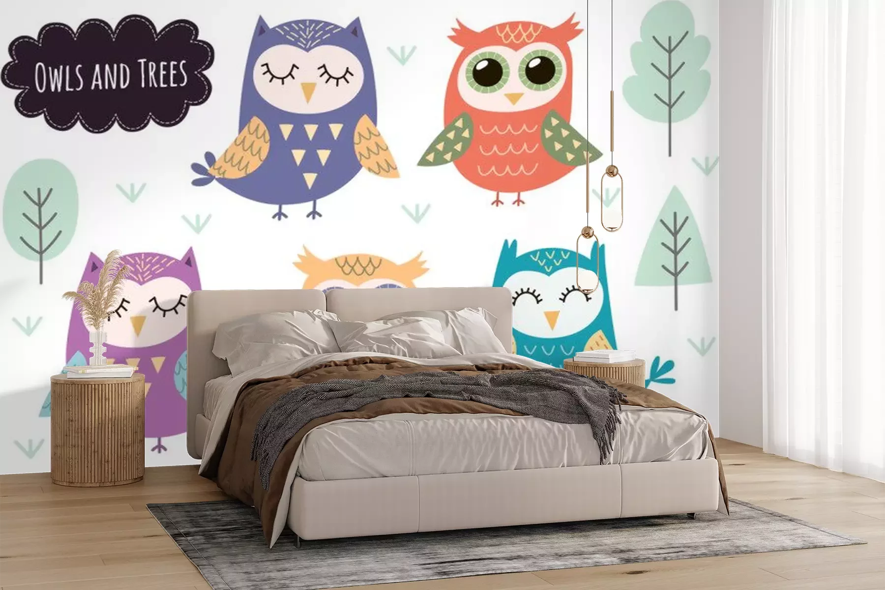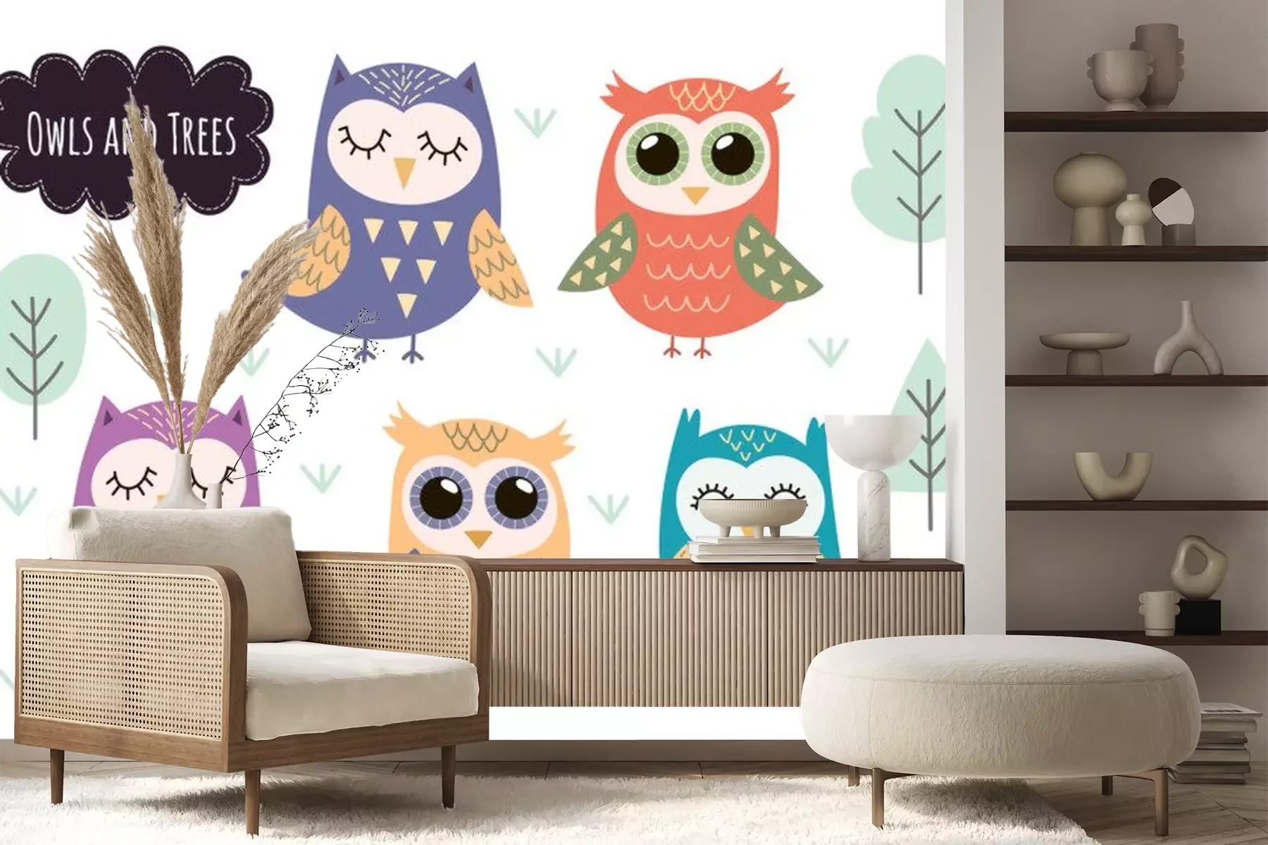 Hiboux pour enfants avec arbres et plantesLivraison sans problème assurée par des transporteurs de confiance