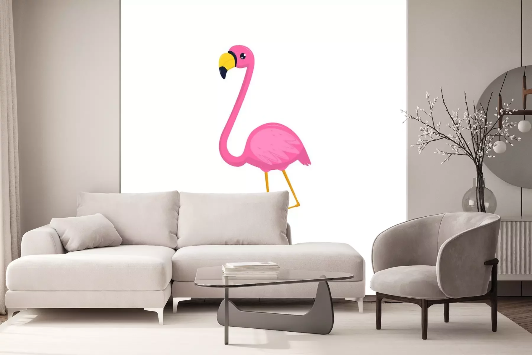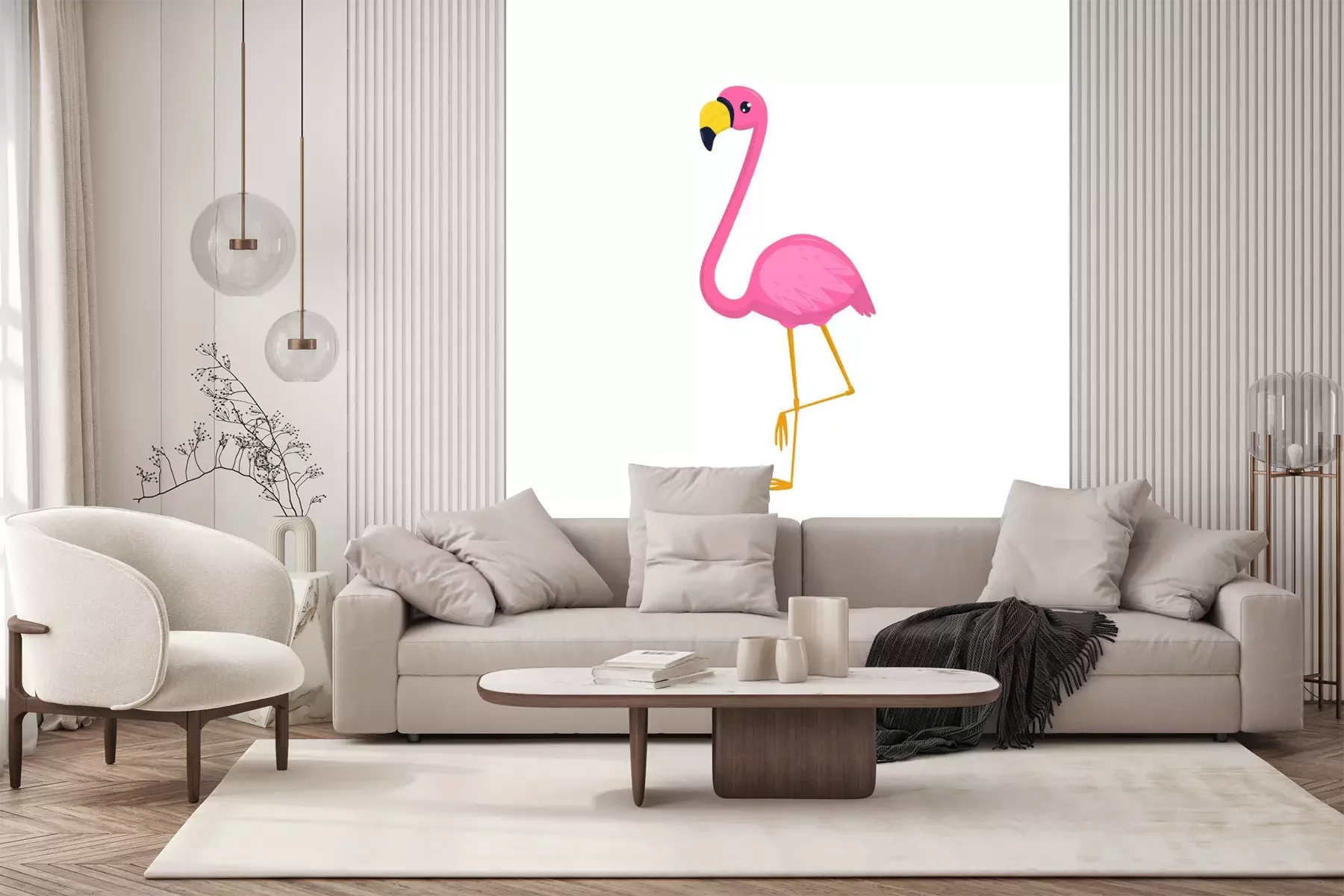 Sticker  Icône plate vecteur de flamant rose. Oiseau tropical au plumage rose et aux longues jambes et au cou. Élément de carte postale, bannière publicitaire ou flyer