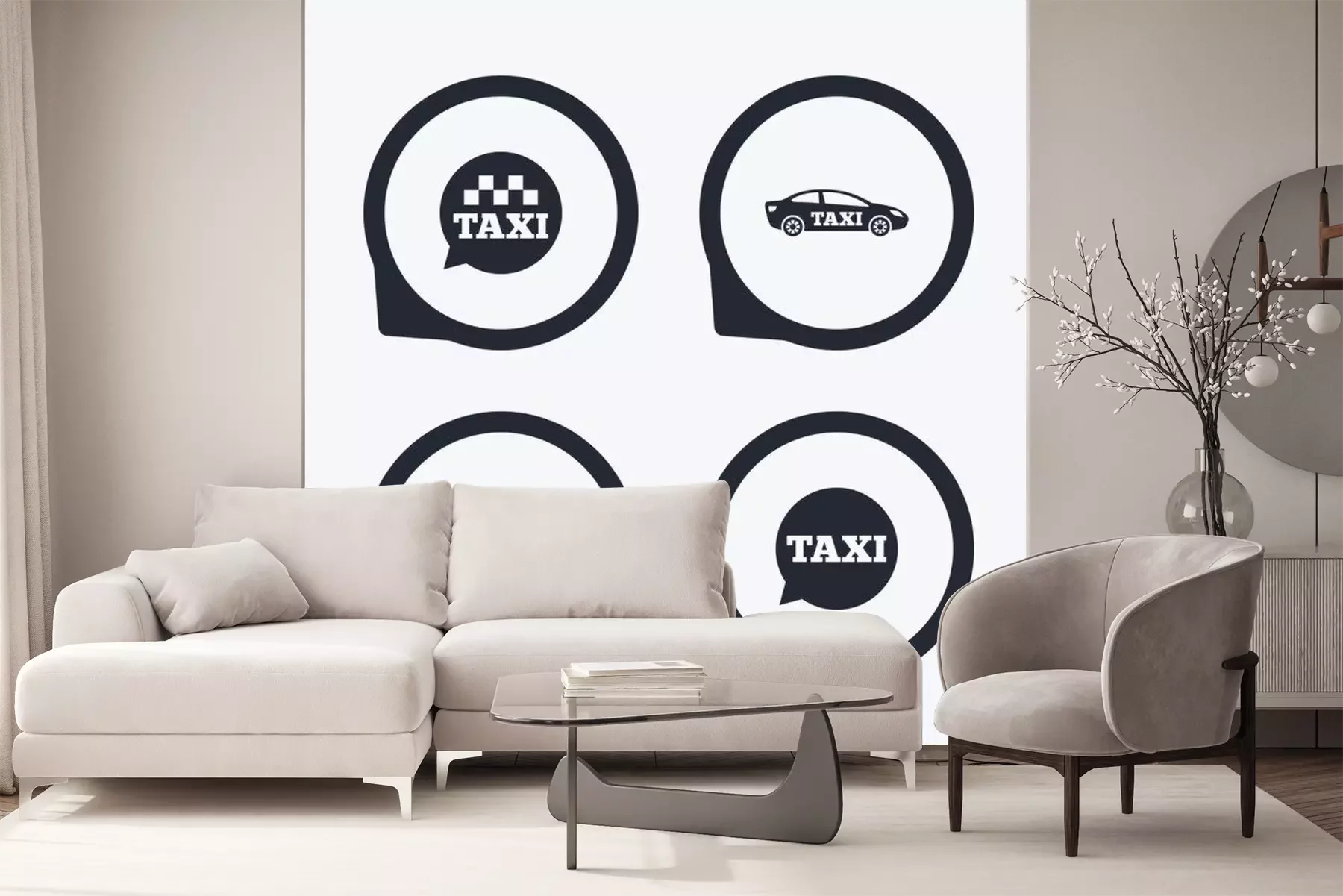 Sticker  Icônes de transport public. Signes de bulle de taxi