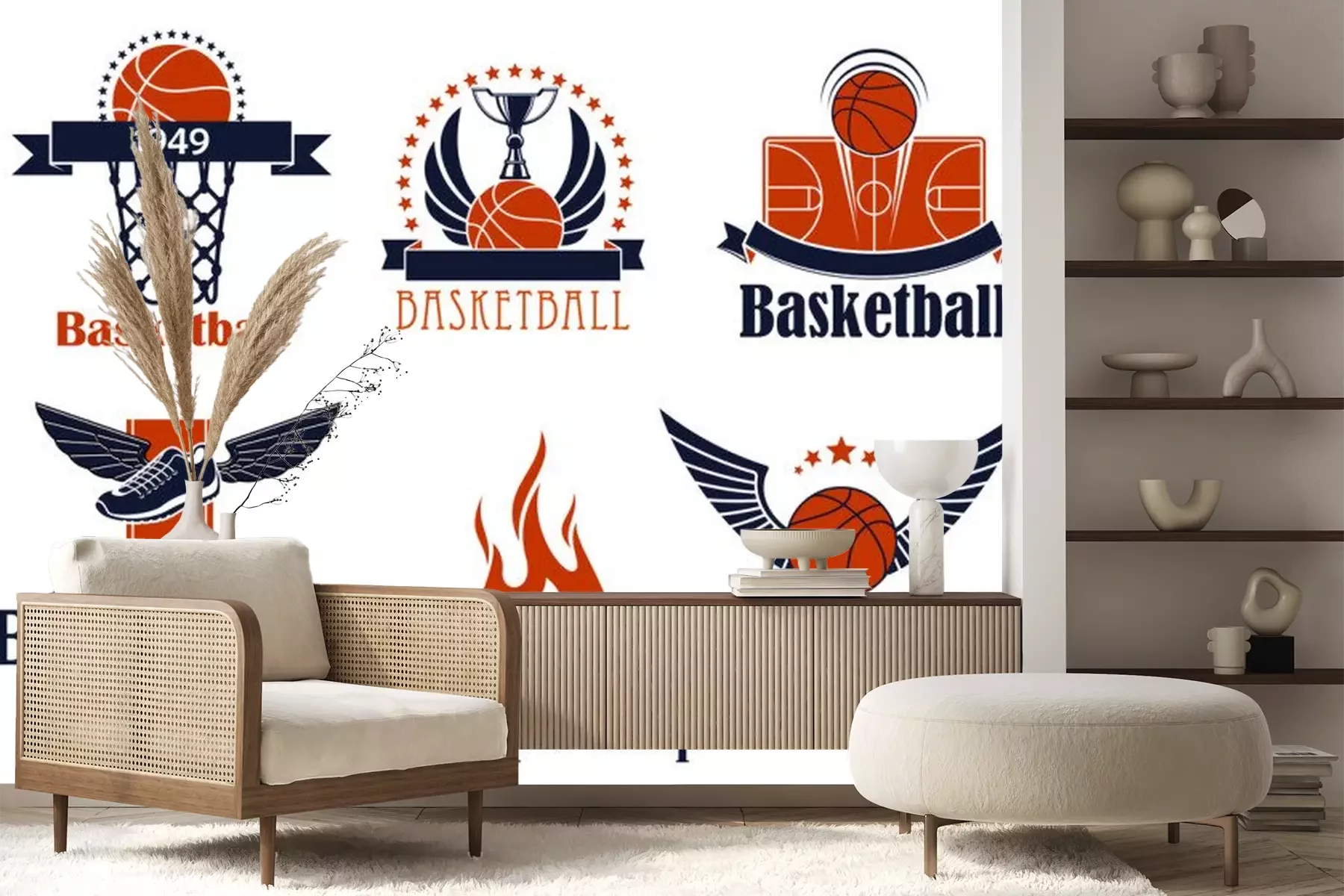 Sticker  Icônes sportives de basket-ball avec des éléments de jeu