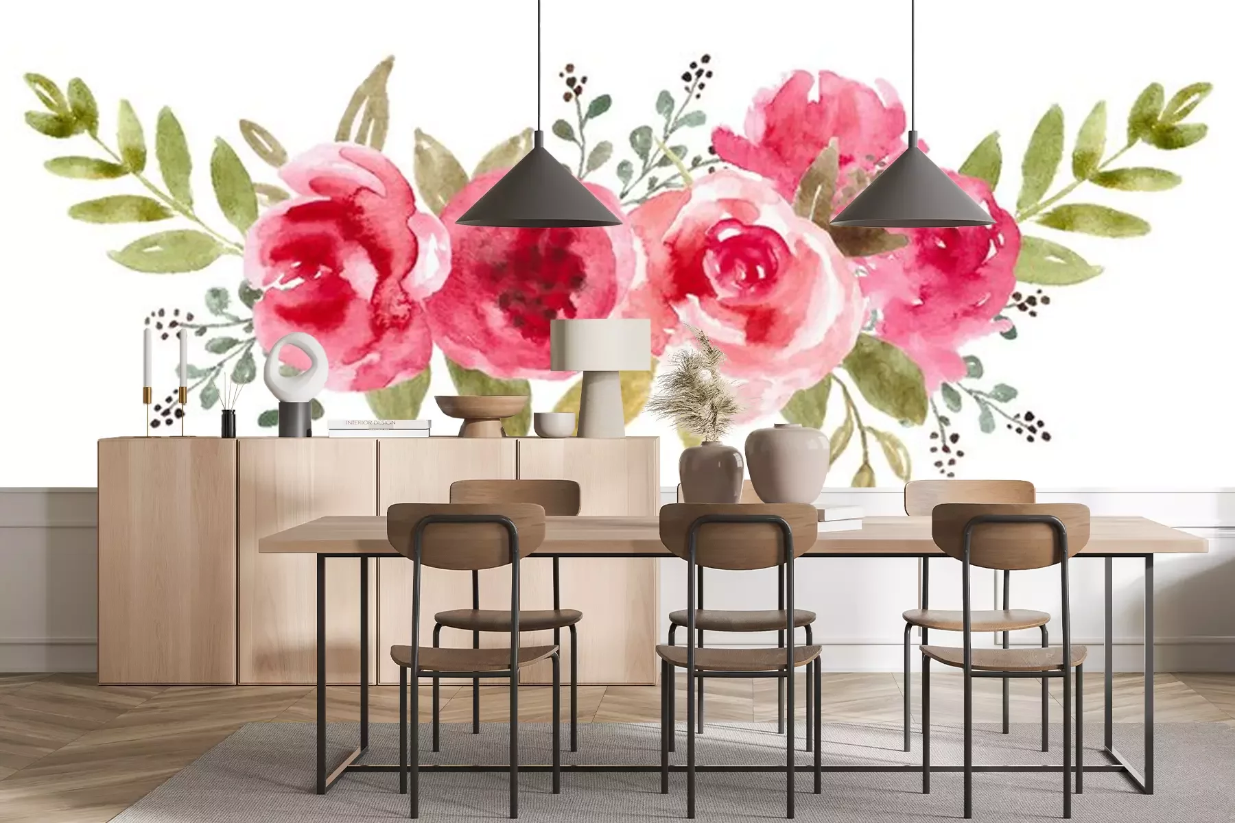 Sticker  Illustration aquarelle décorative de fleurs rouges