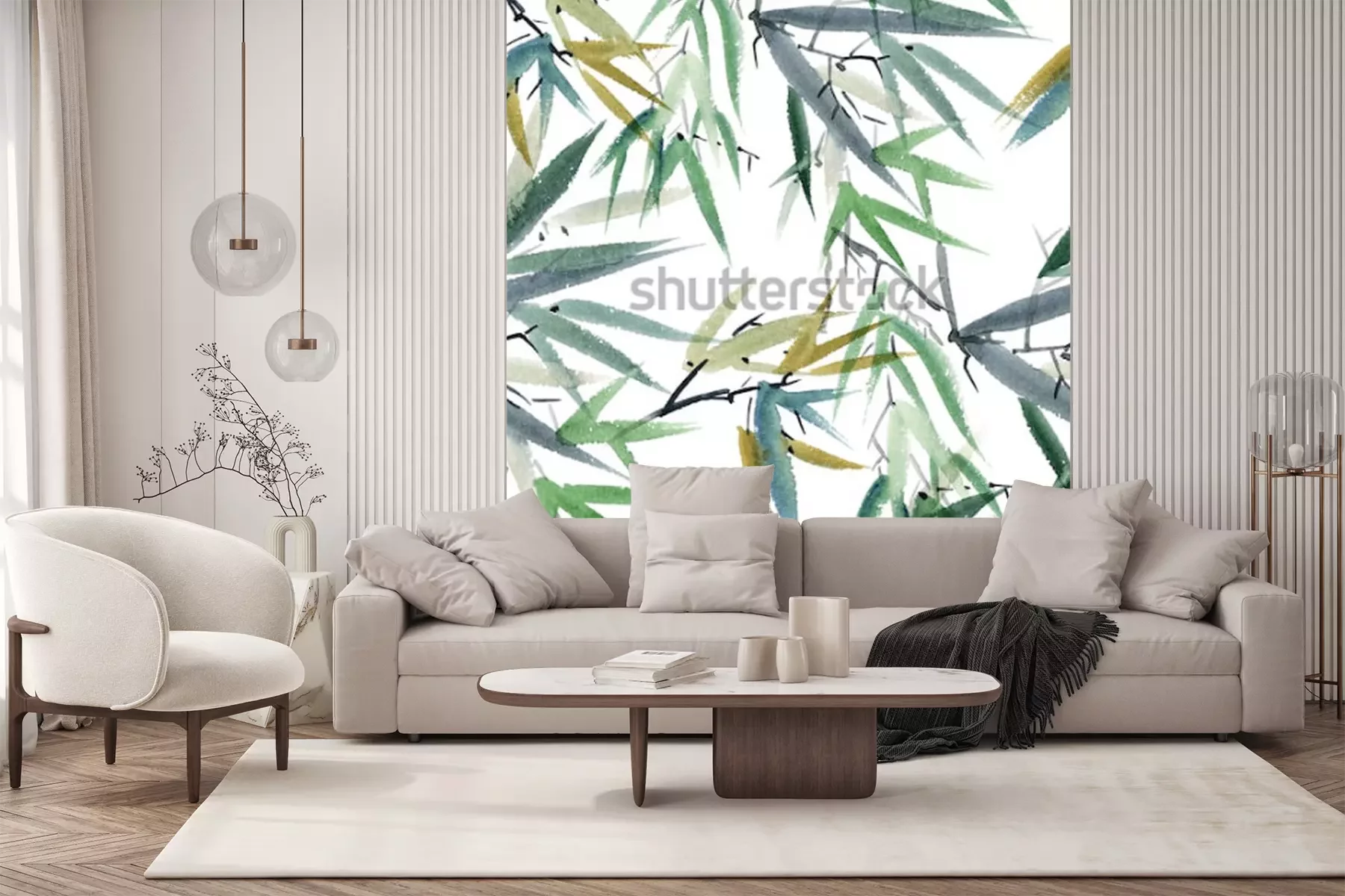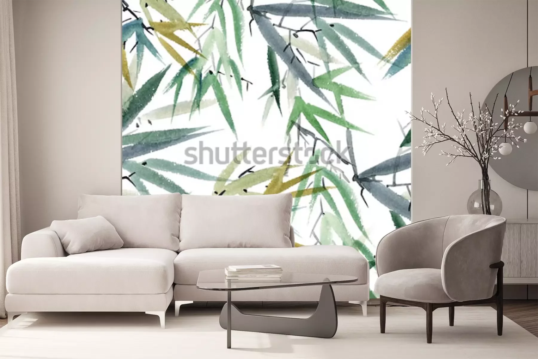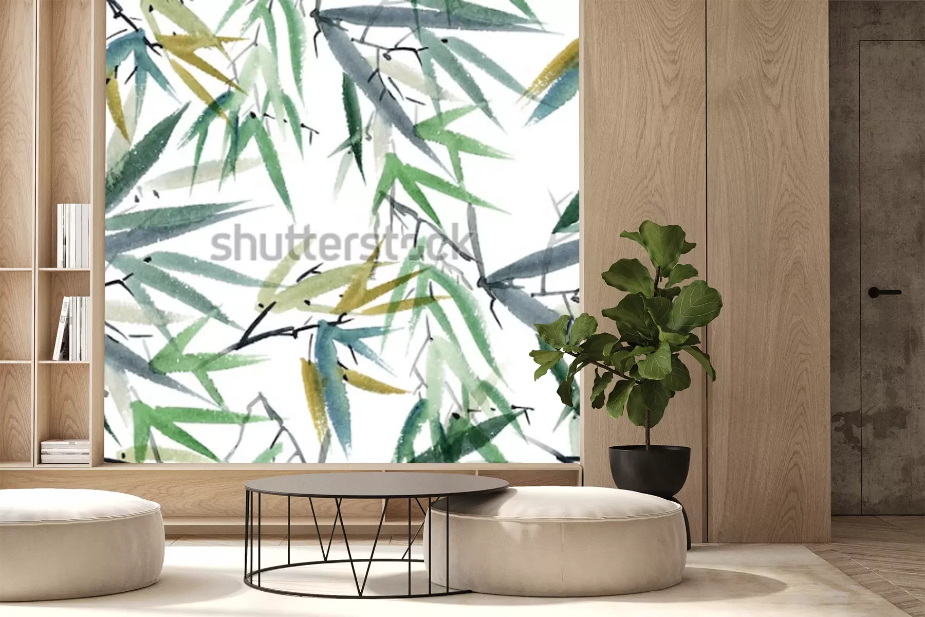 Sticker  Illustration aquarelle et encre de bambou dans le style sumi-e, u-sin. Peinture traditionnelle orientale. Modèle sans couture.