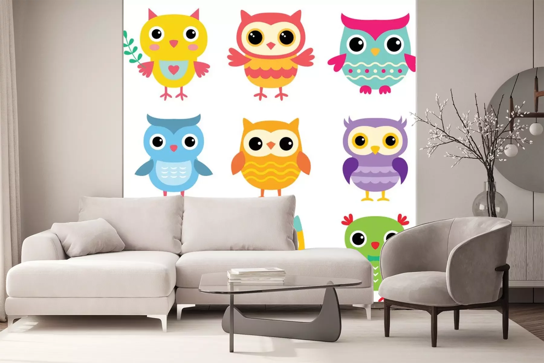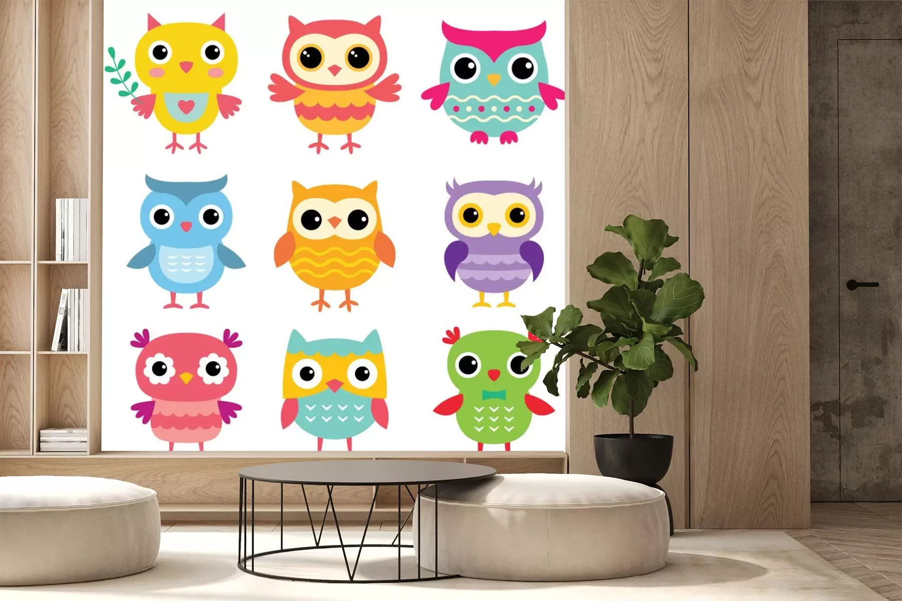 Hiboux colorés de dessin animéSticker