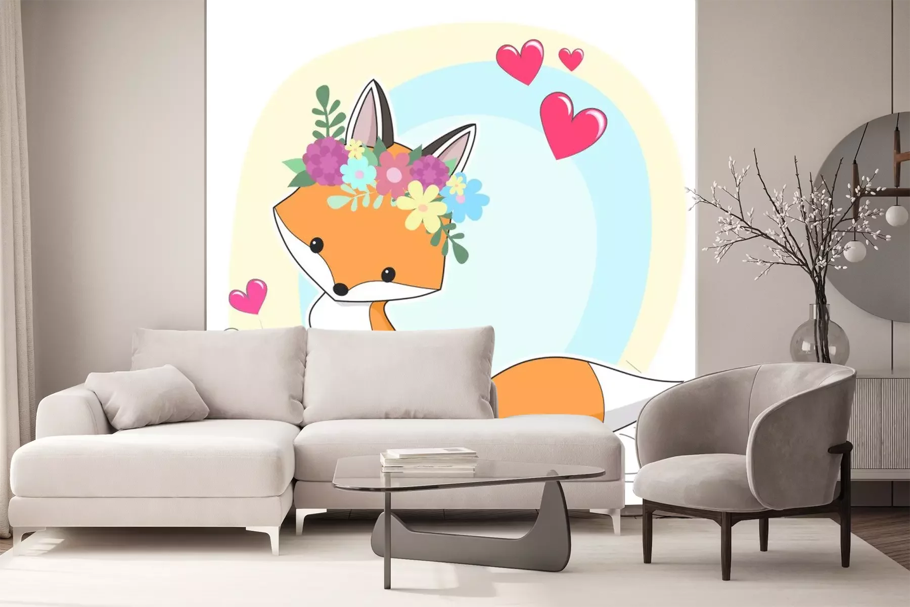 Sticker  Illustration de dessin animé dessiné à la main de renard roux vecteur