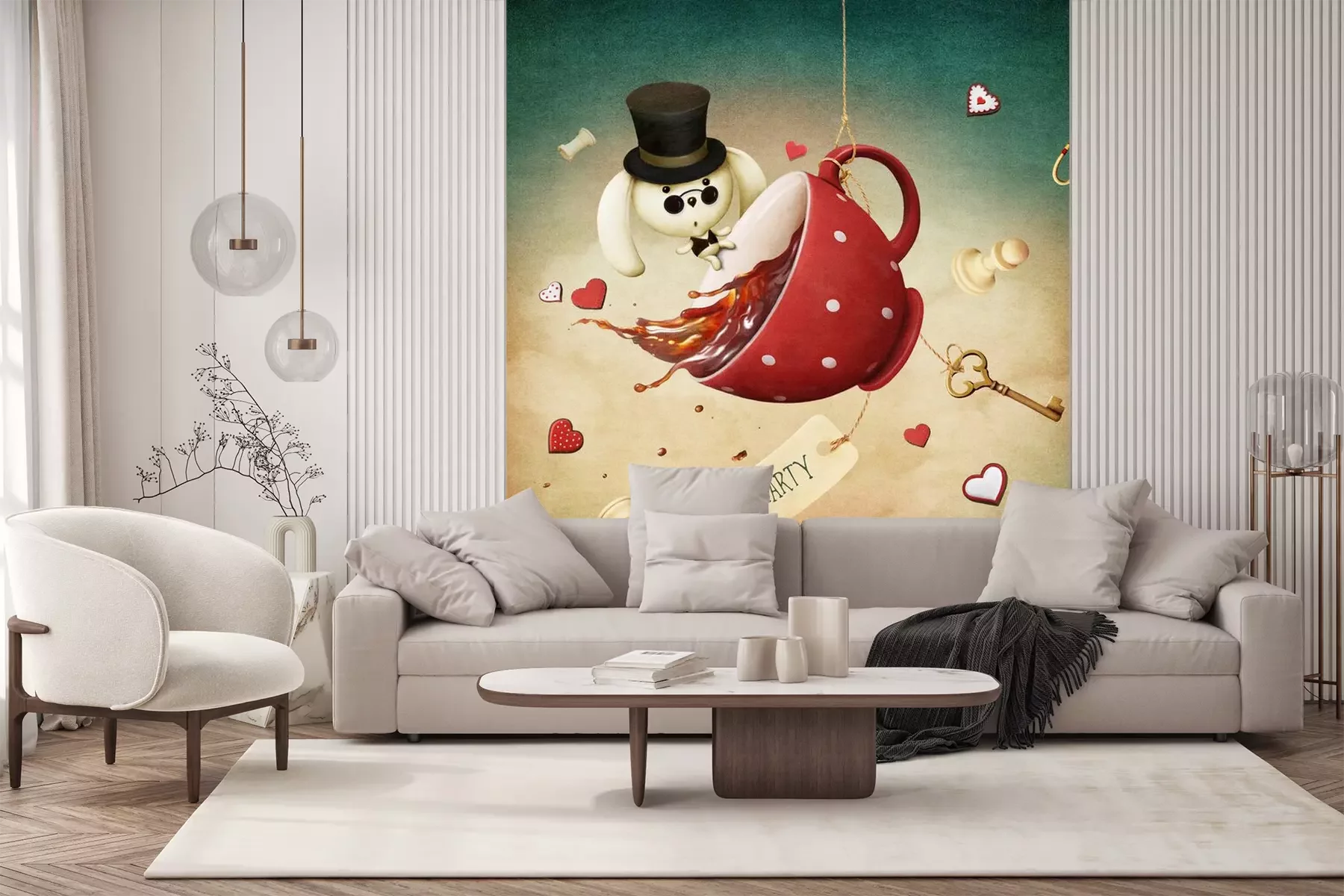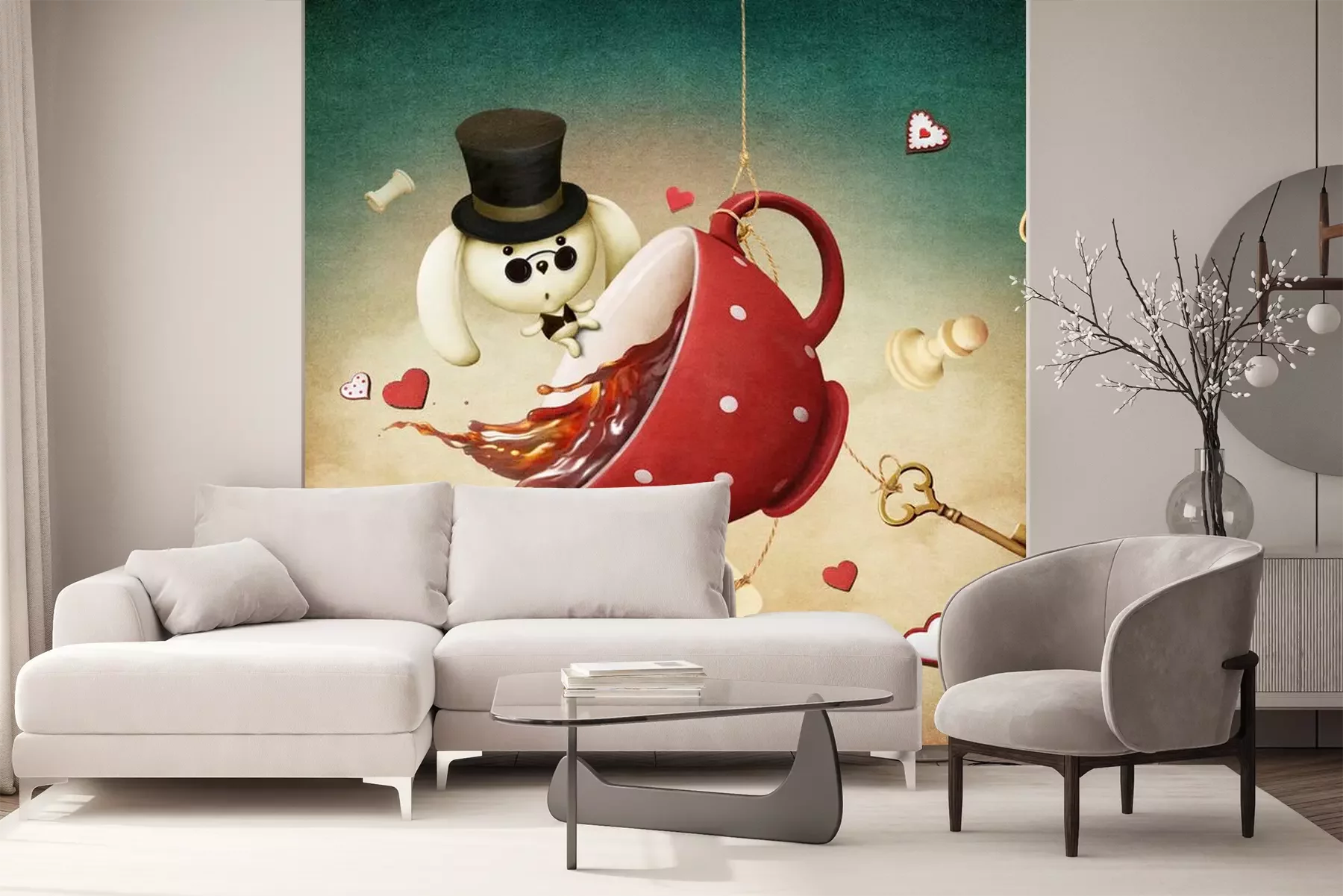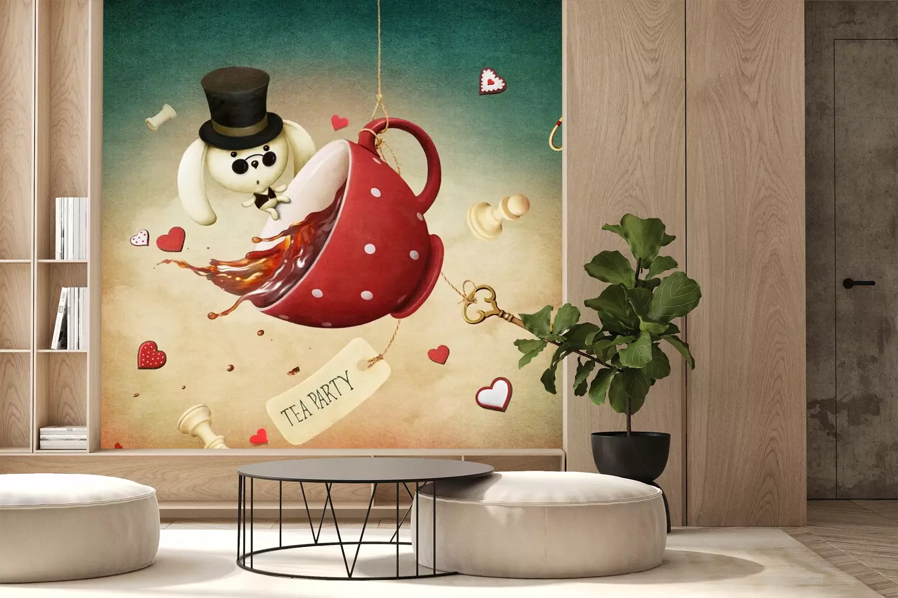 Sticker  Illustration de fantaisie avec la tasse de thé rouge et le lapin