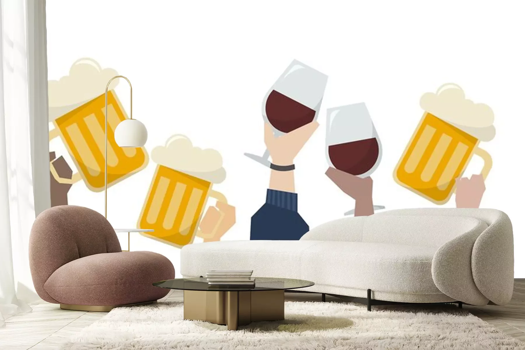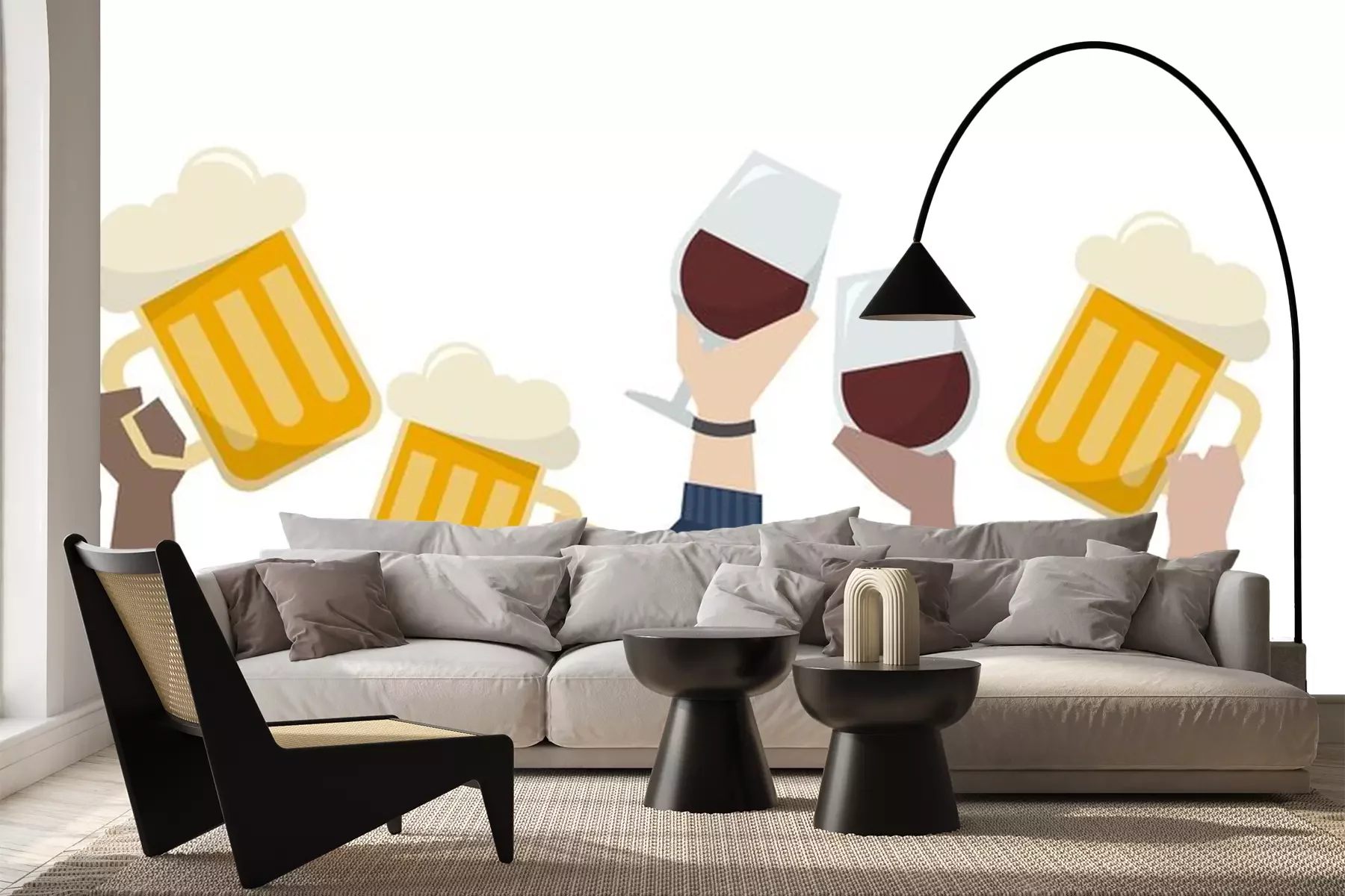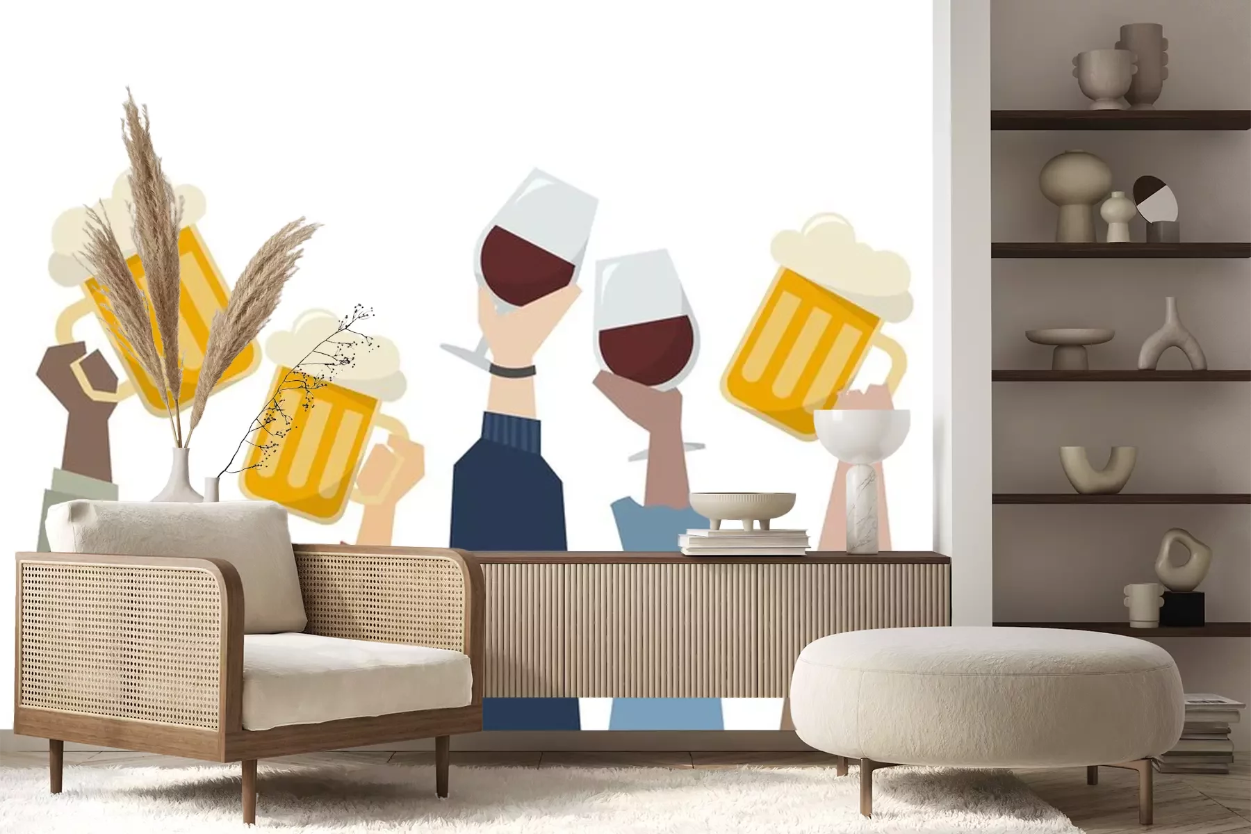 Sticker  Illustration des mains tenant des boissons alcoolisées