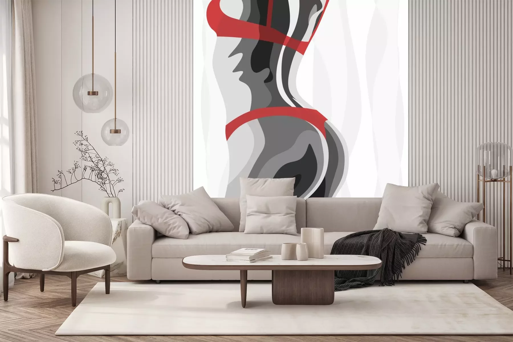 Sticker  Illustration femme blanche noire avec dessous rouge
