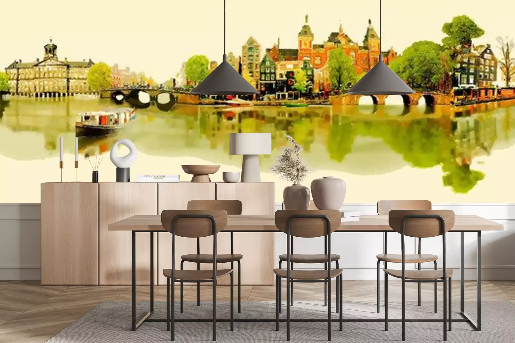 Sticker  Illustration panoramique AMSTERDAM vue ..