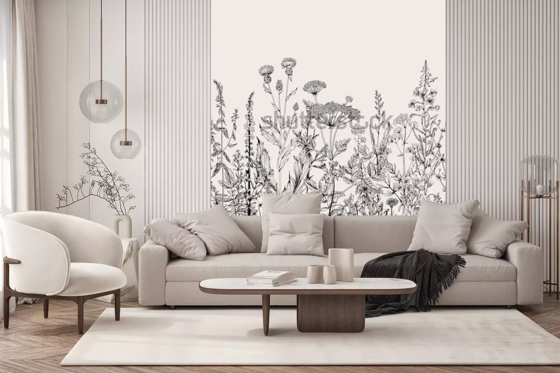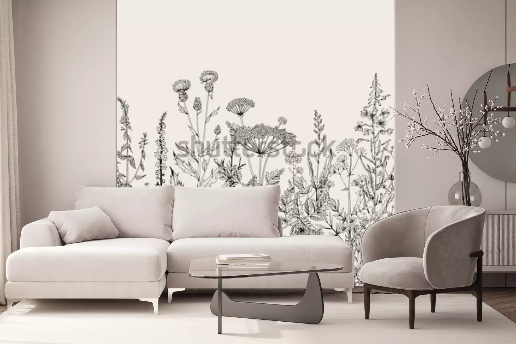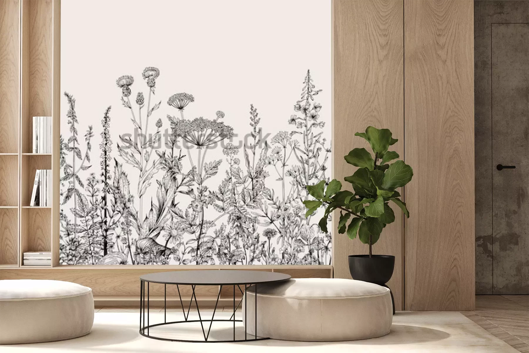 Sticker  Illustration rétro de plantes et d'herbes de prairie