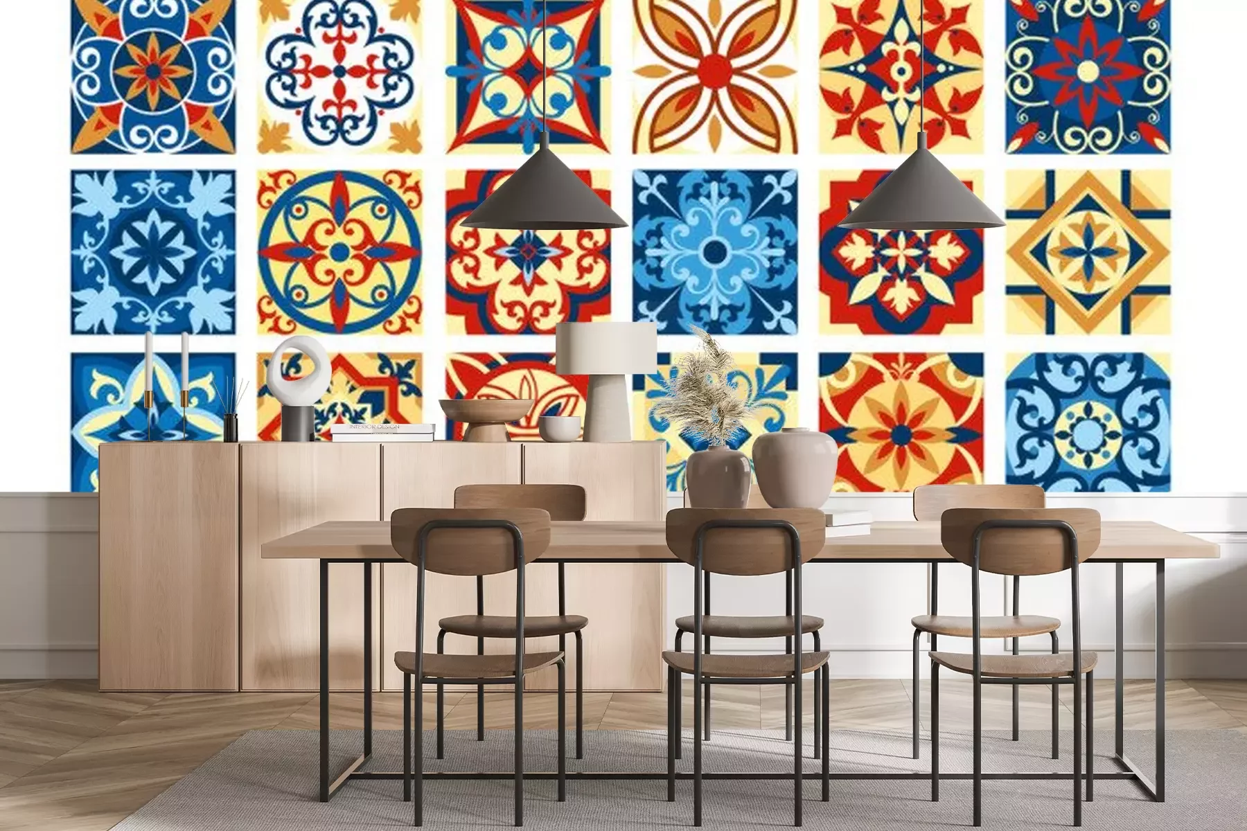 Sticker  Illustration vectorielle Collection de carreaux de céramique dans des couleurs rétro. Un ensemble de motifs carrés dans le style ethnique. Illustration vectorielle