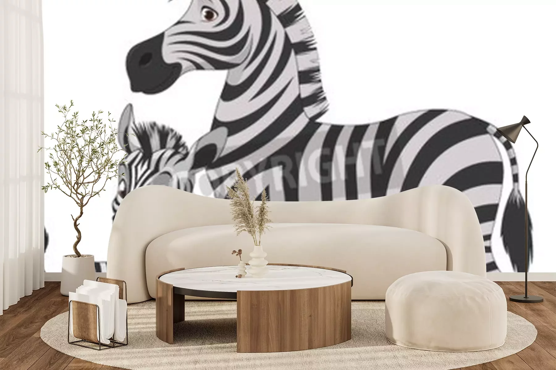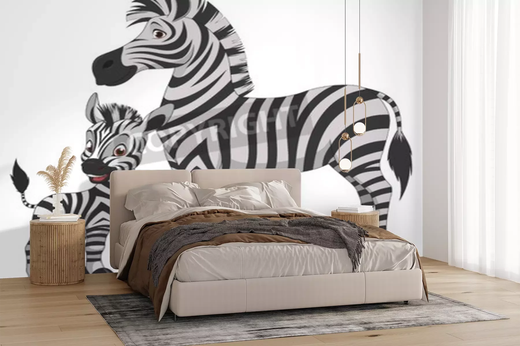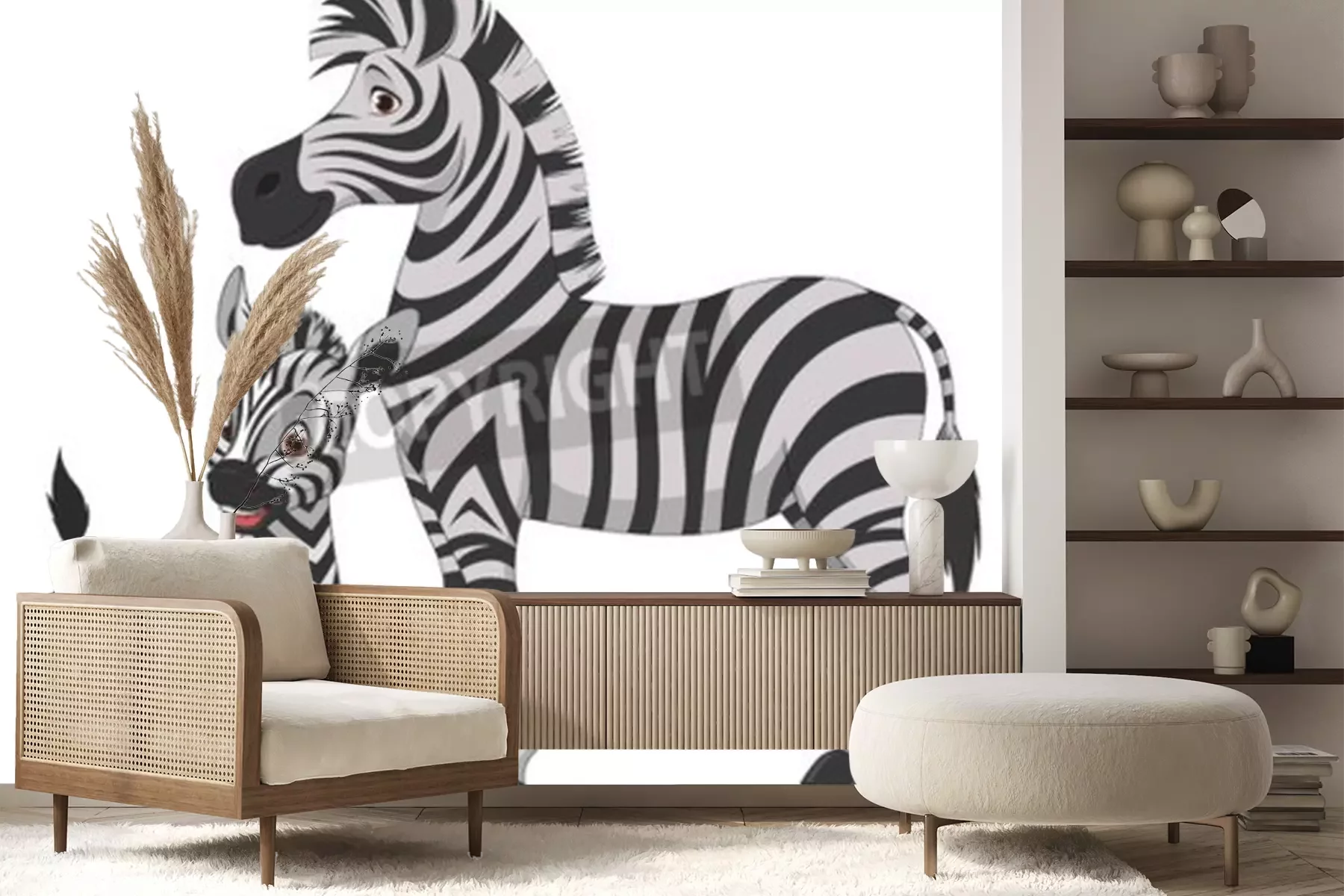 Sticker  Illustration vectorielle, zèbre adulte et jeune zèbre, sur fond blanc