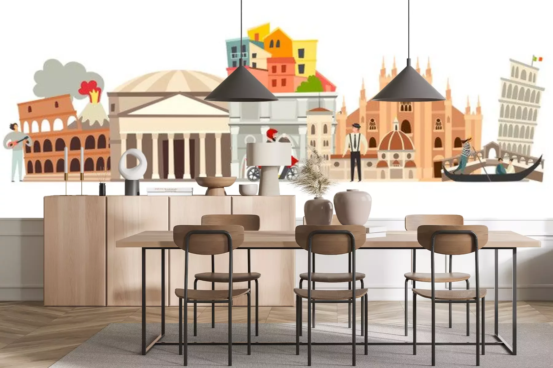 Sticker  Italy skyline colorful background. Famous Italy building. Italy hand drawn vector illustration. Italian travel landmarks/attraction. Vector illustration isolated on white background