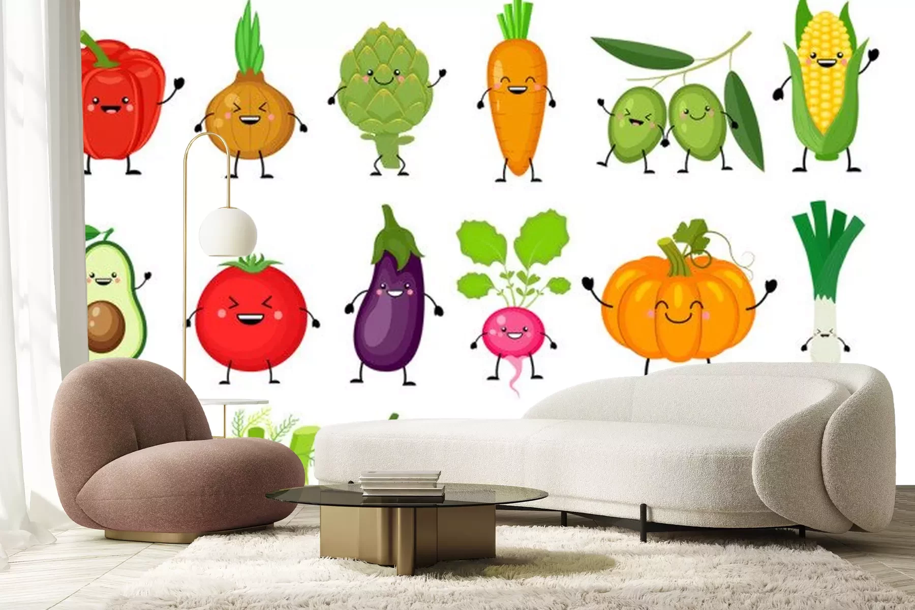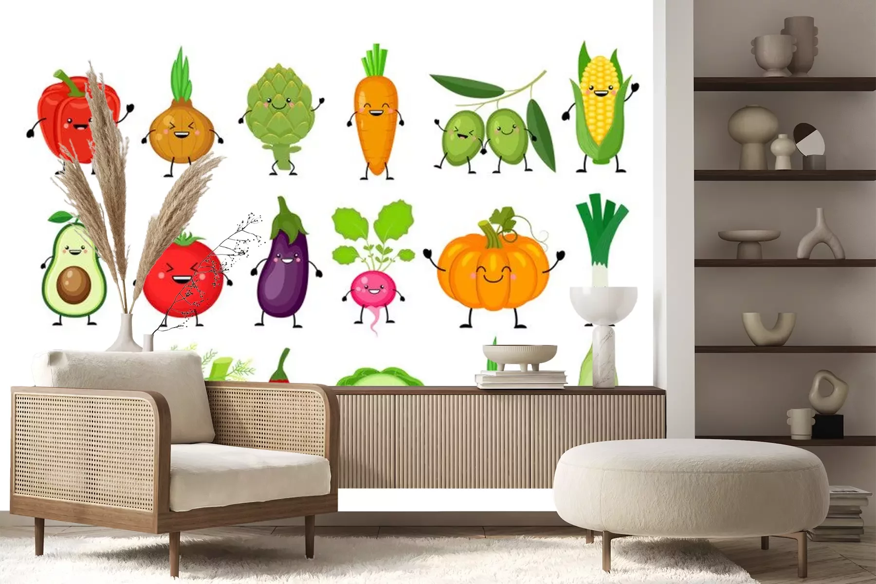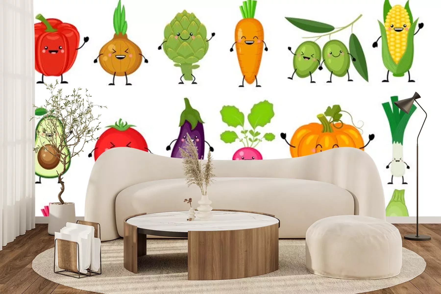 Sticker  Jeu de dessin animé drôle de différents légumes. Légumes Kawaii. S