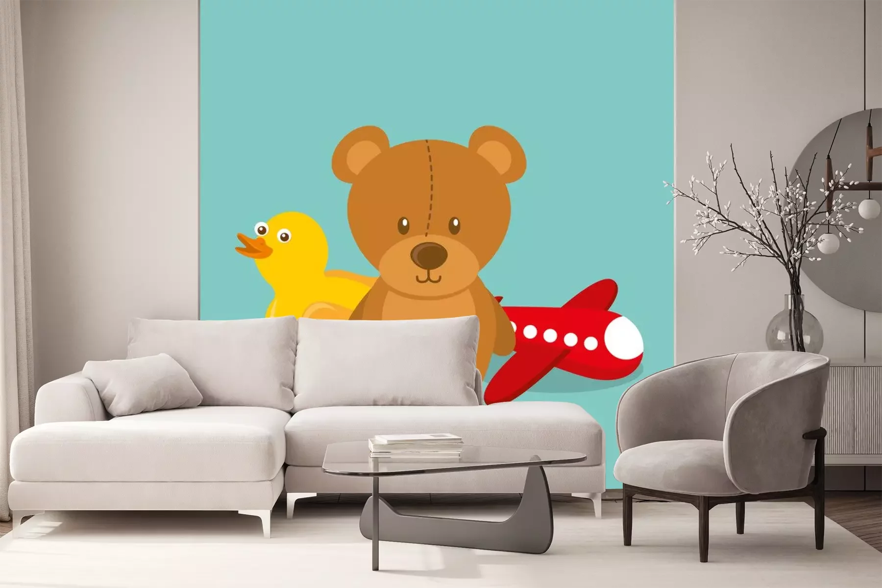 Sticker  jouets pour les enfants nounours en caoutchouc canard et avion rétro vector illustration