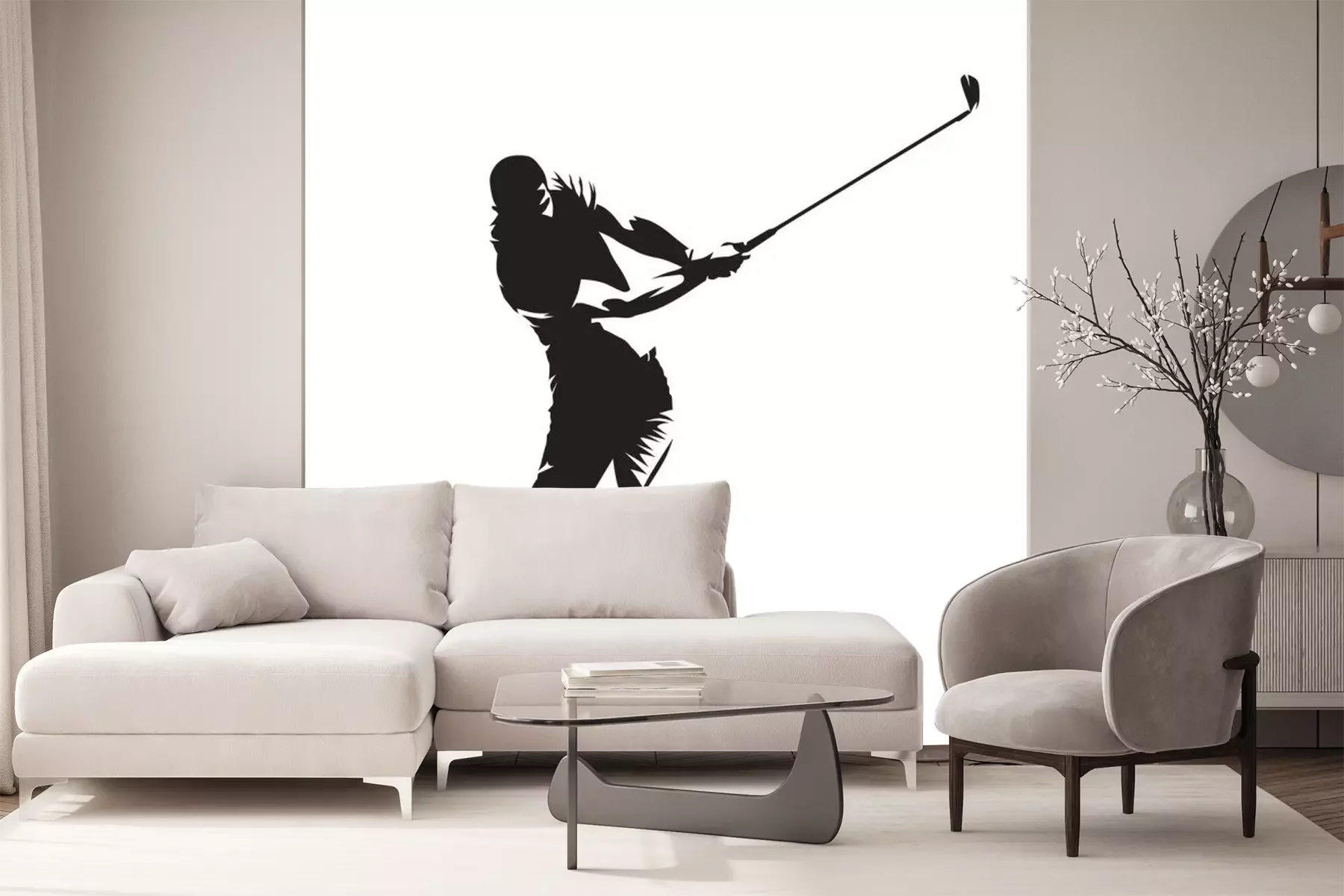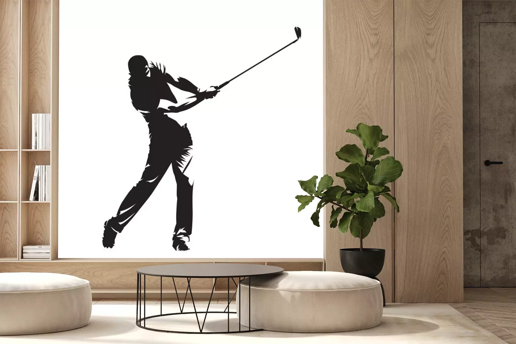 Sticker  Joueur de golf, silhouette vecteur isolé. Personnes actives, swing de golf