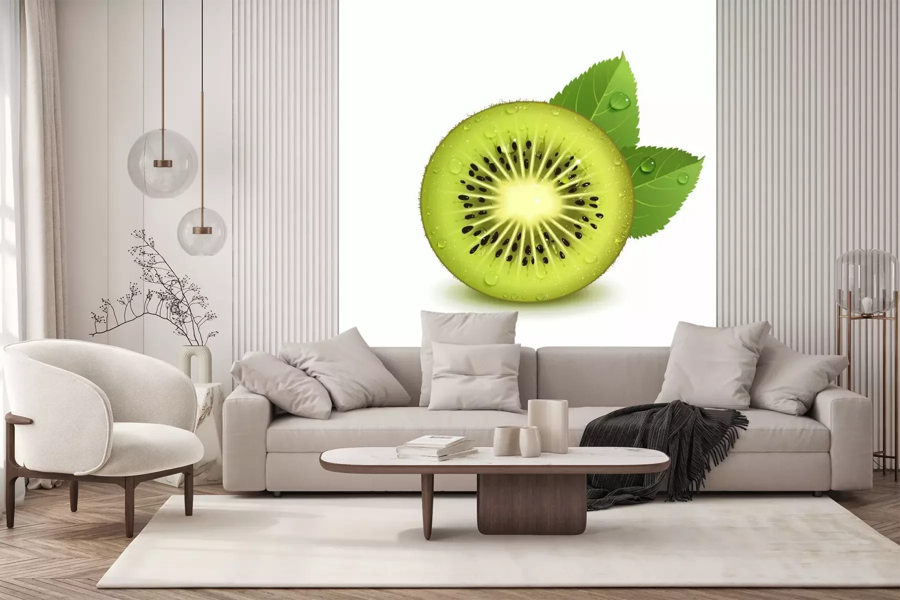 Sticker  Juicy Kiwi Fruit with Green Leaves
