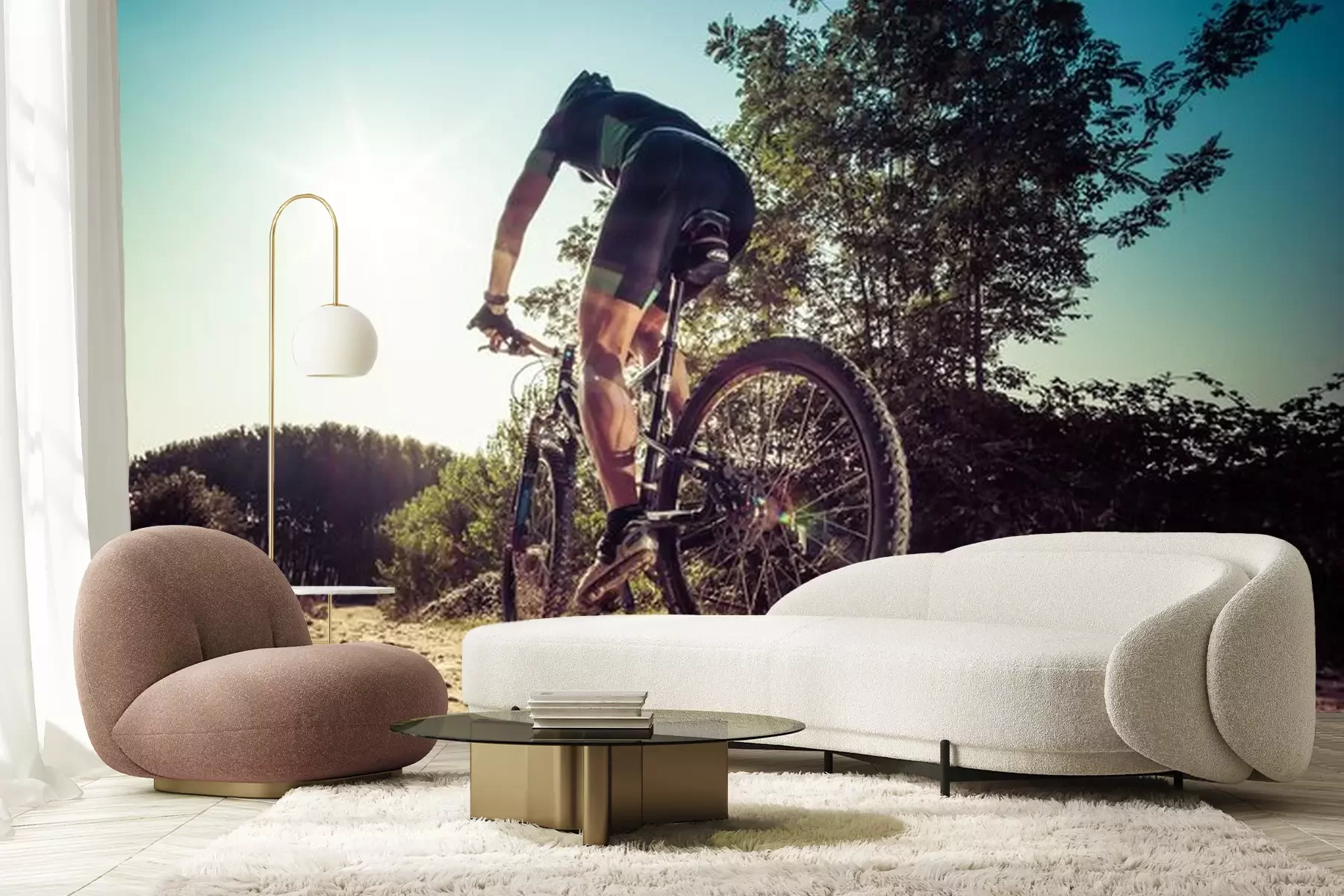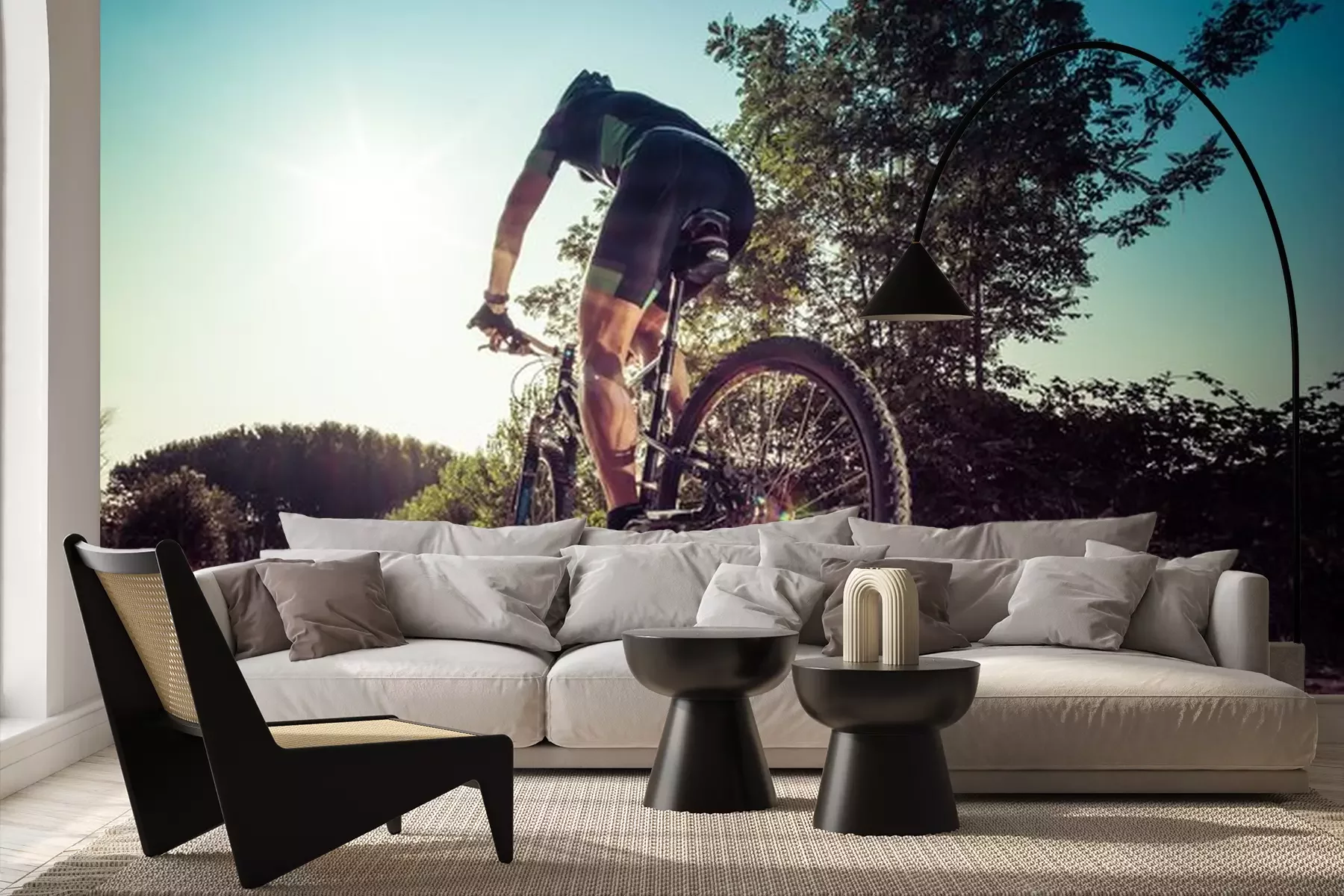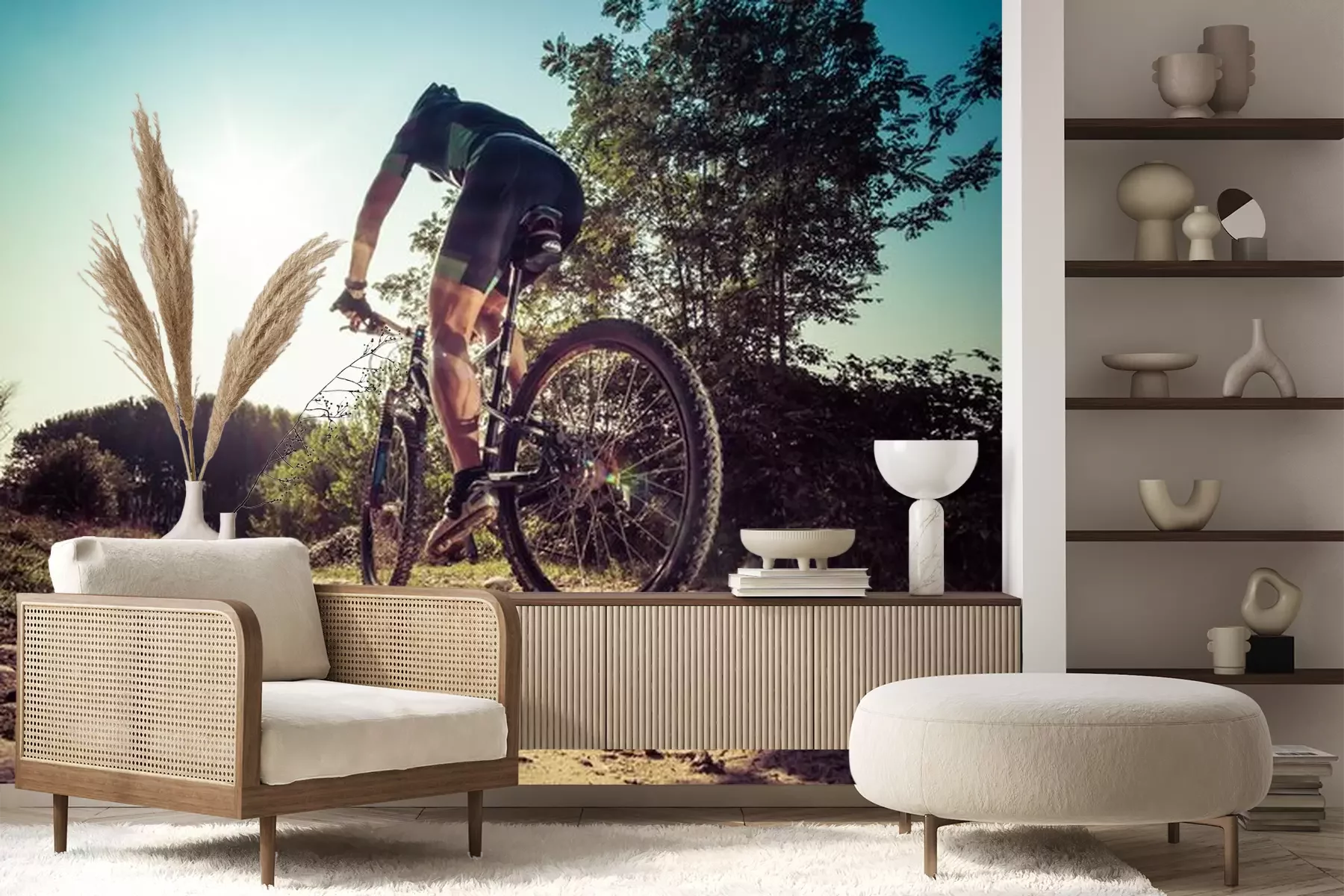 Sticker  L'homme à cheval sur une route sale sur un vélo de montagne