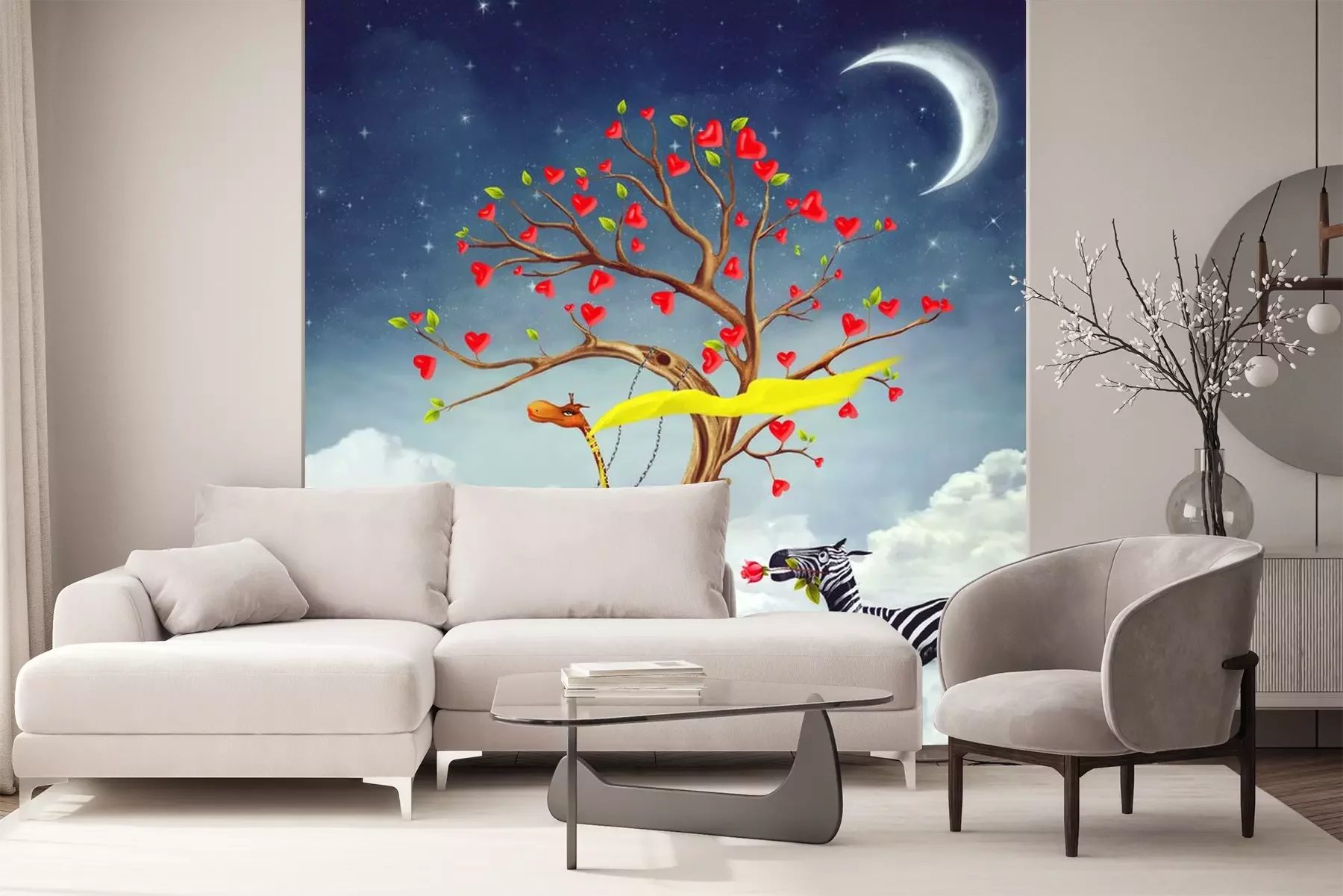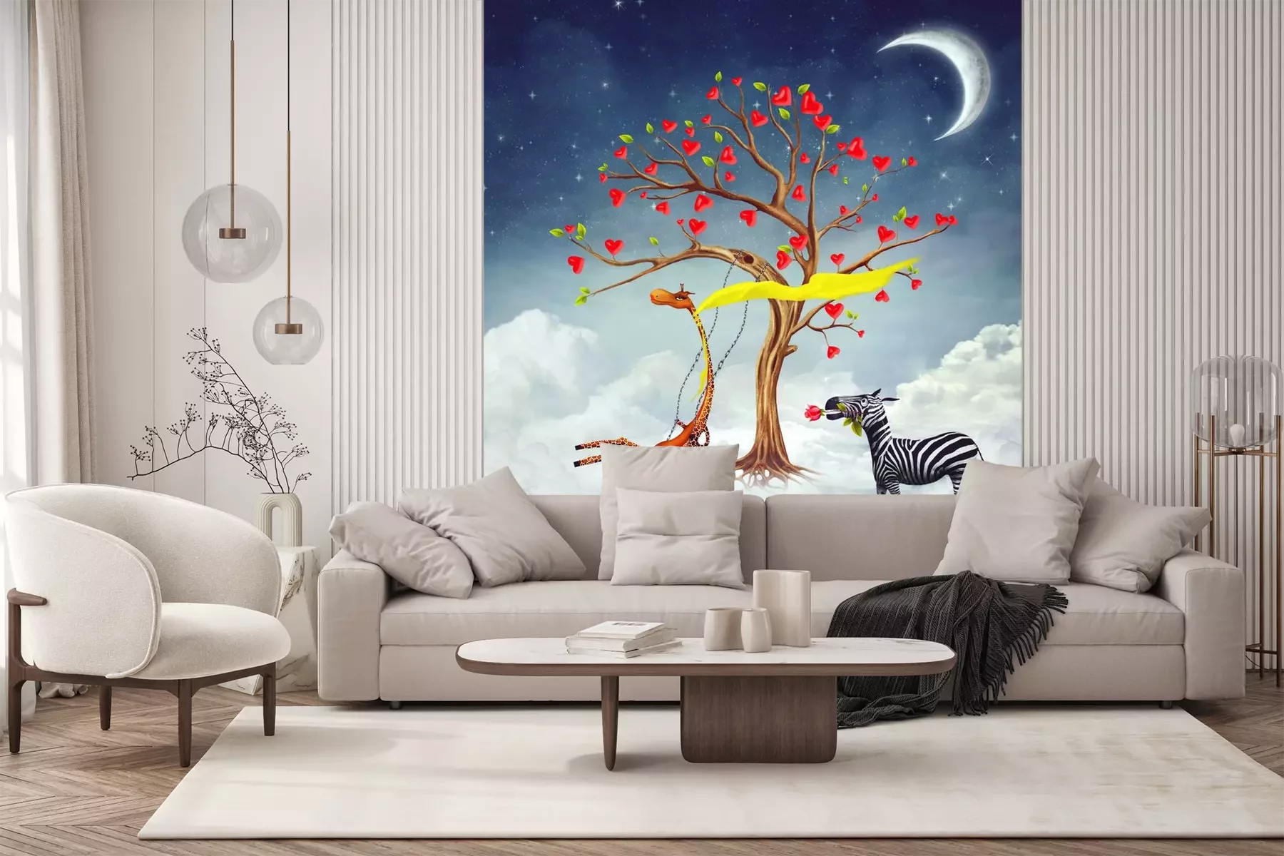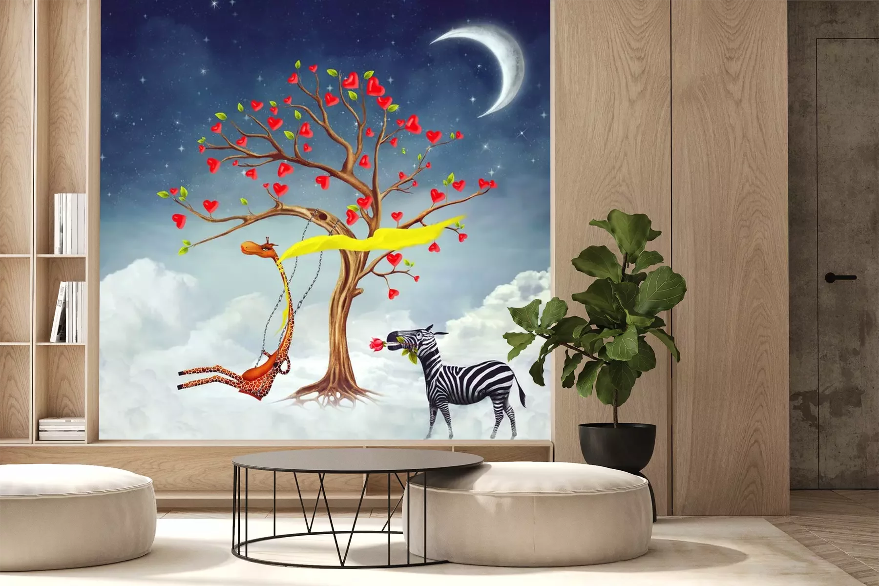 Sticker  L'illustration montre les relations romantiques entre une girafe et un zèbre