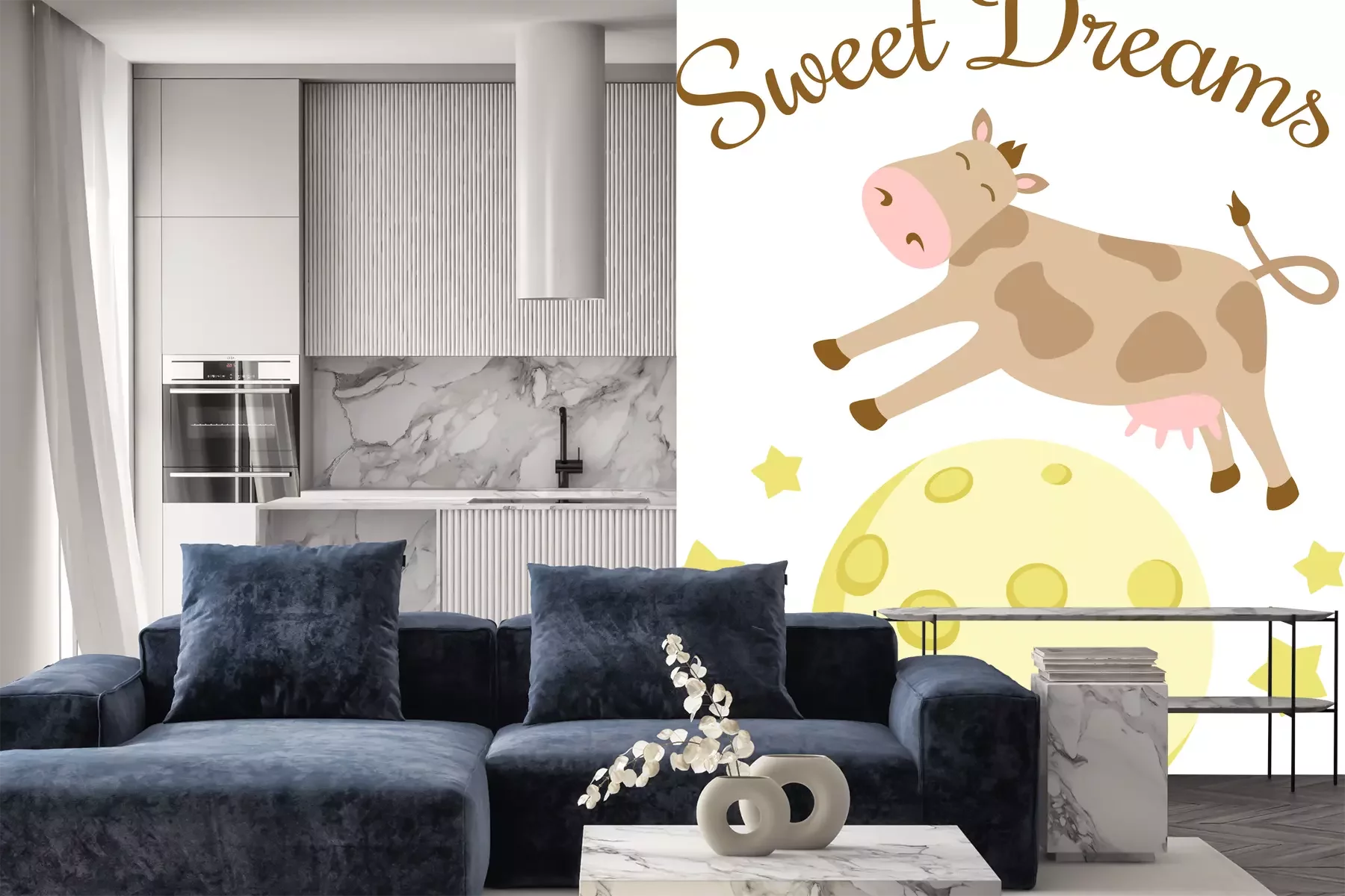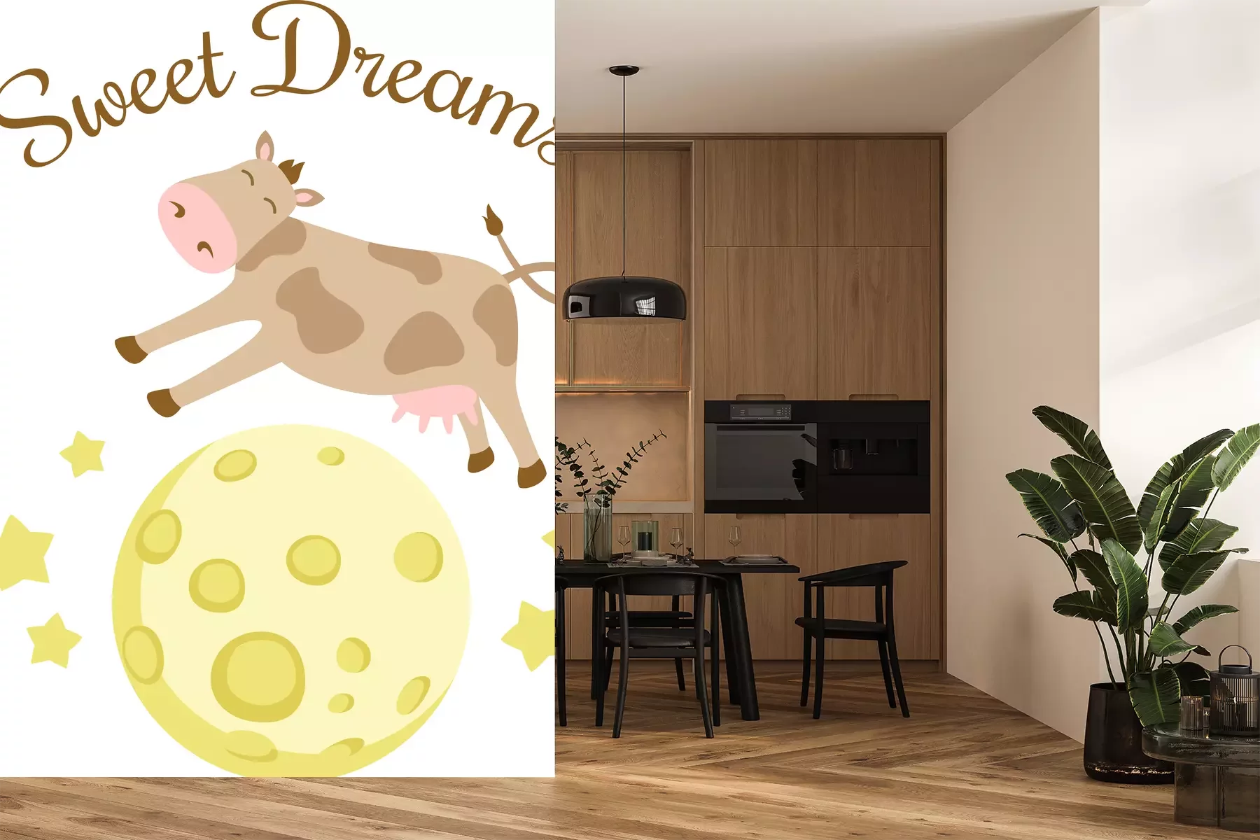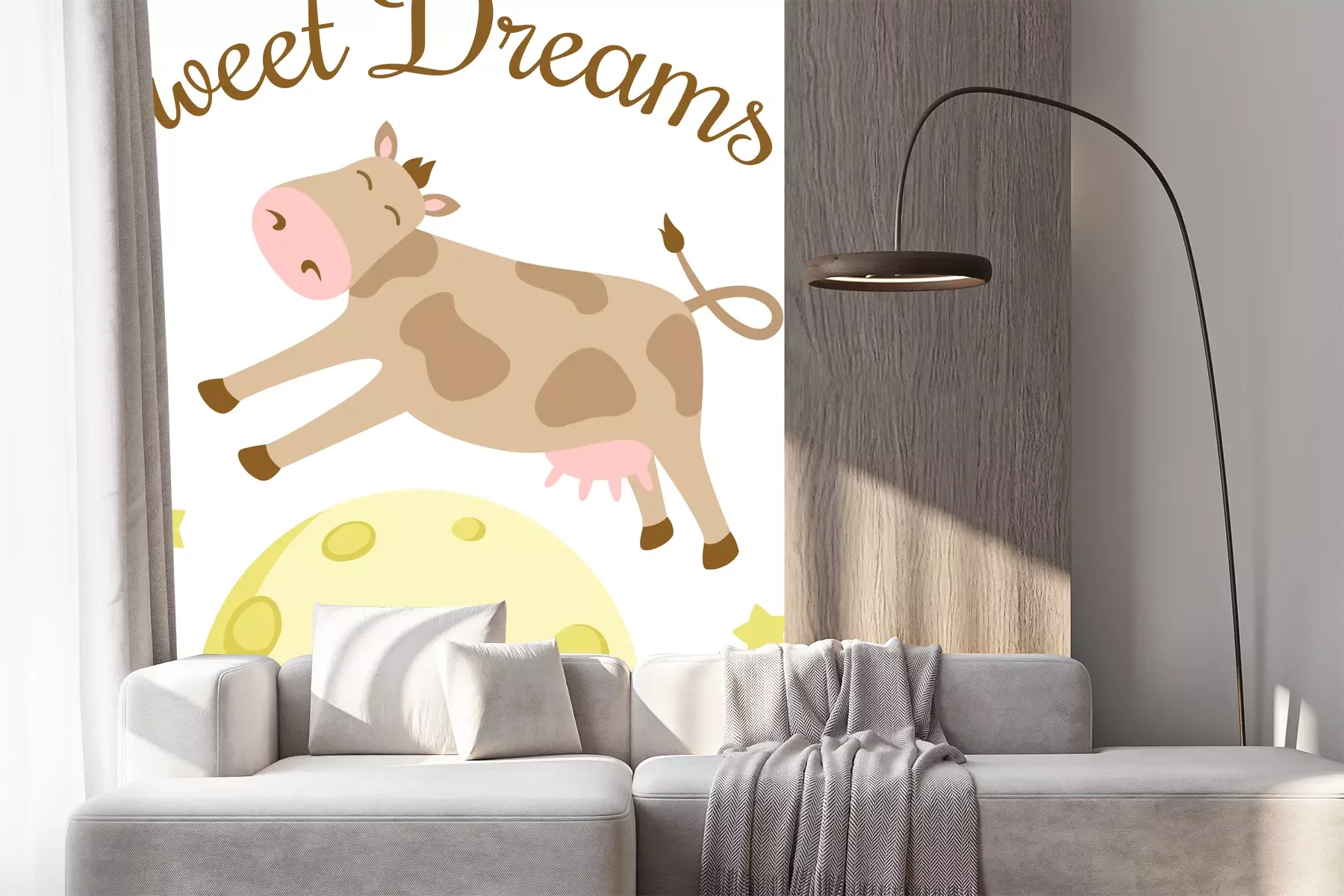 L'inscription au-dessus de la vache sautant par-dessus la lune