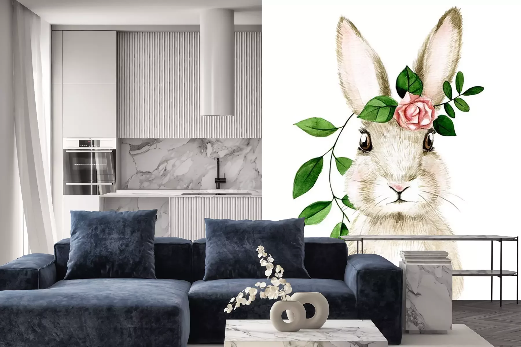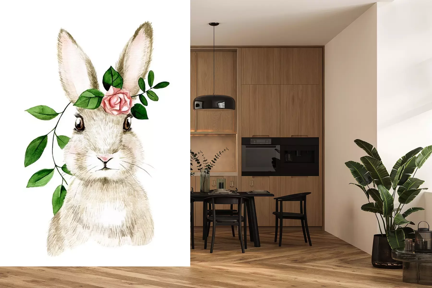 Sticker  Lapin mignon avec une rose sur fond blanc
