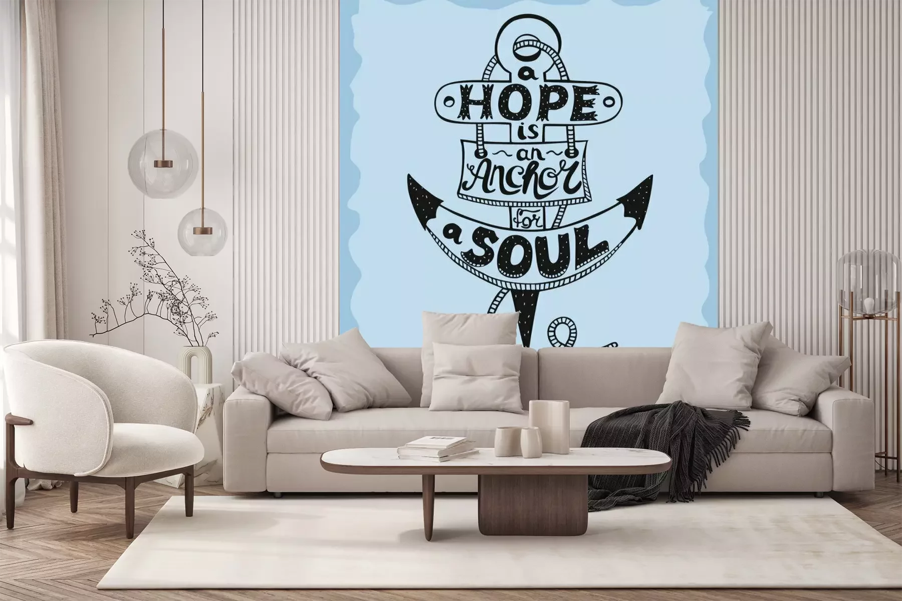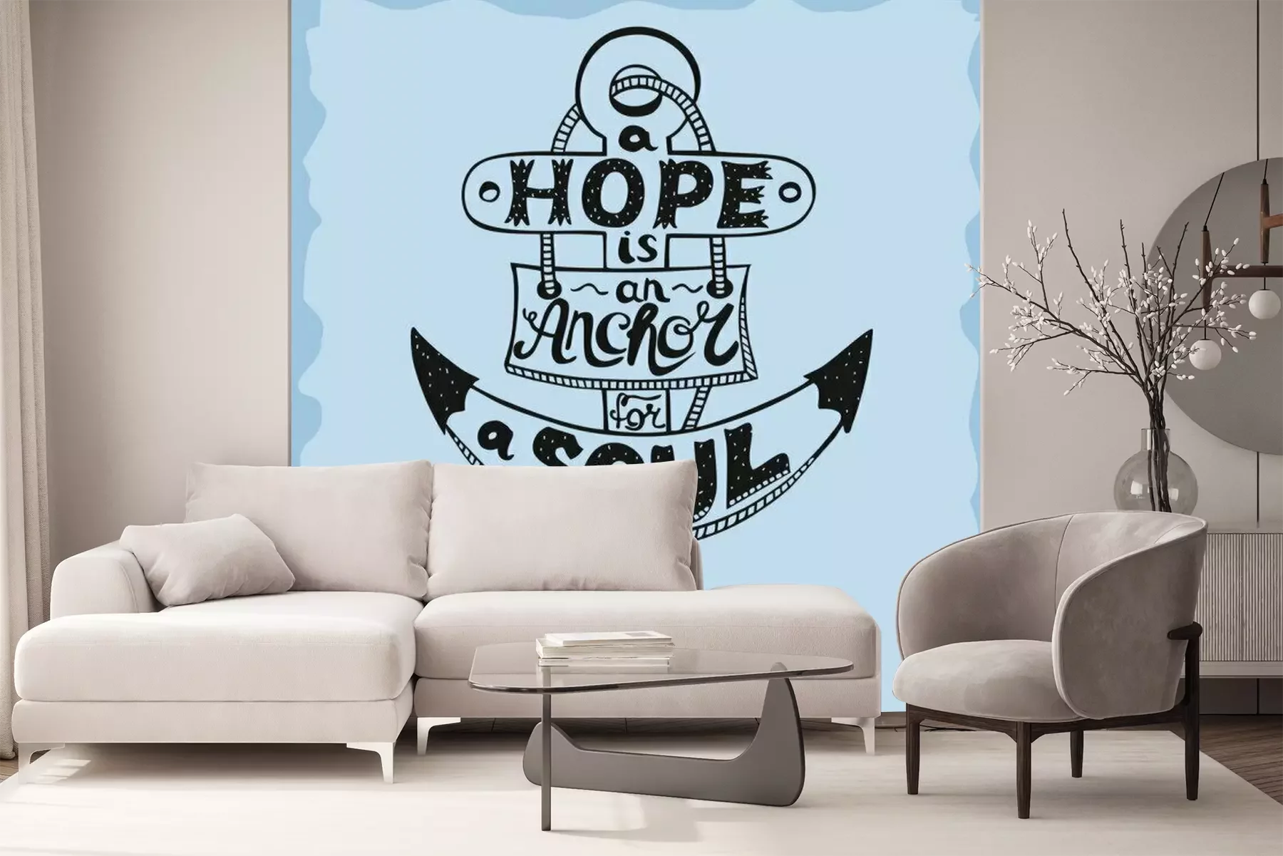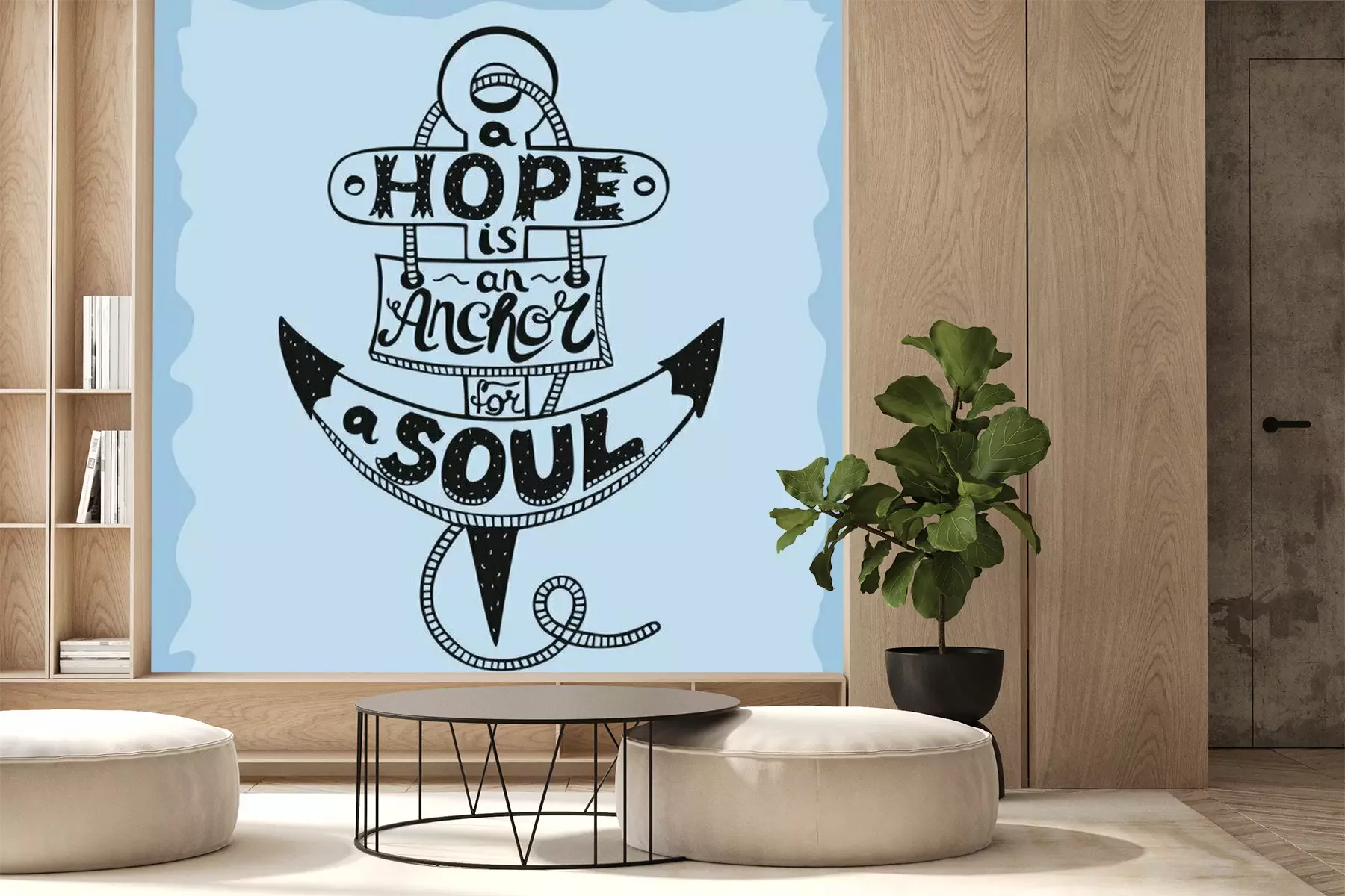 Sticker  Lettre de la main Un espoir est l'ancre pour l'âme sur un fond bleu.