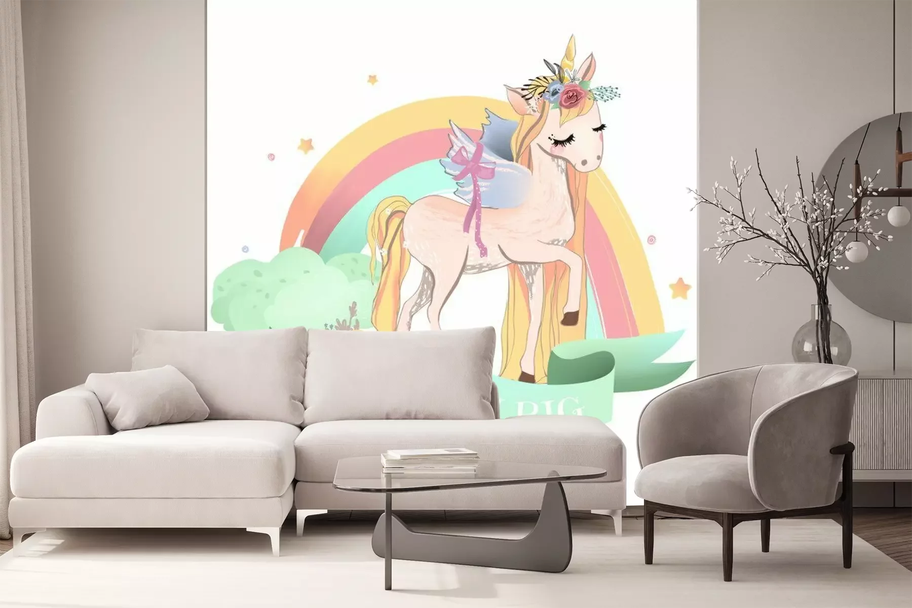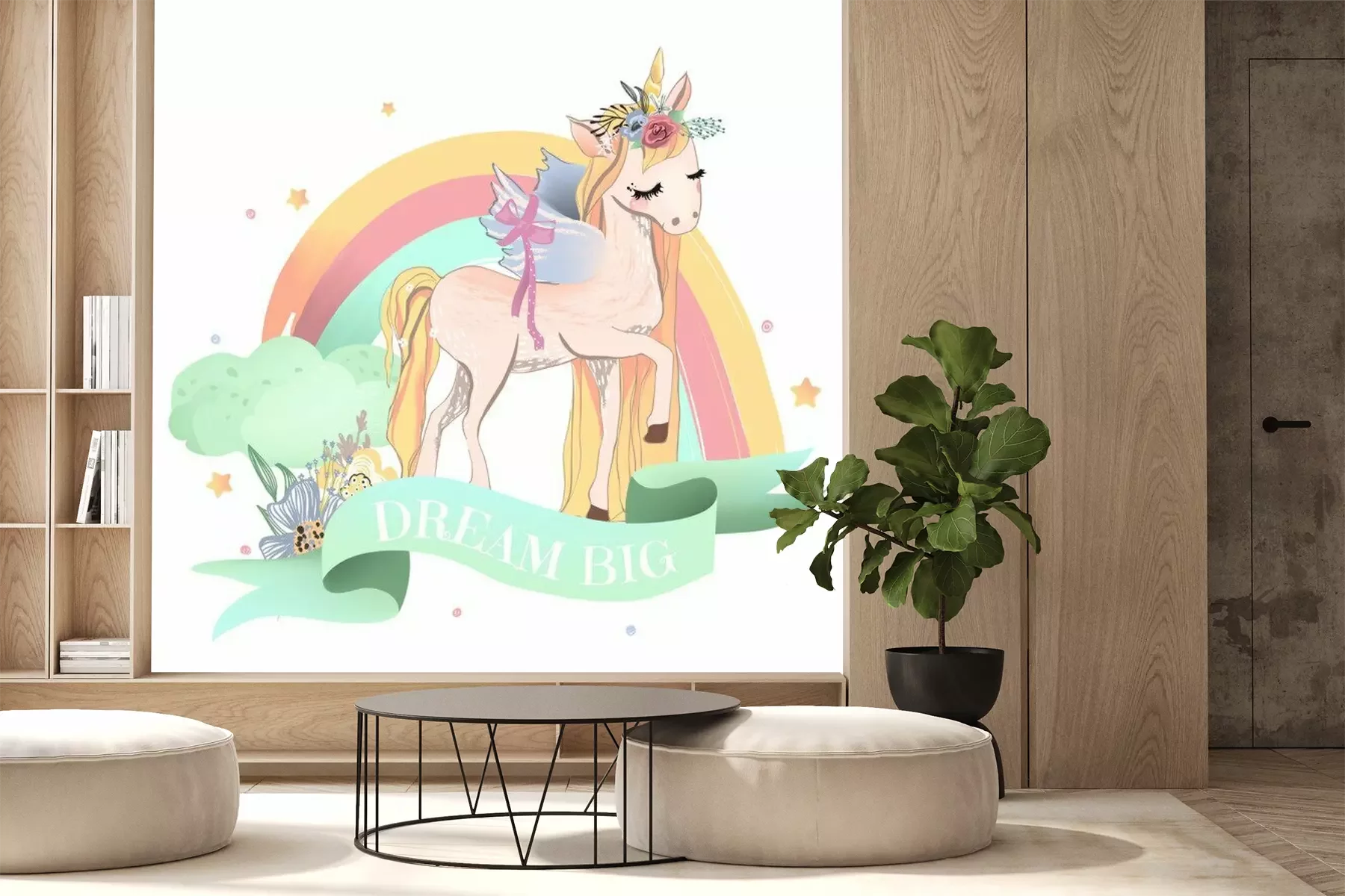 Sticker  Licorne arc-en-ciel et ruban avec l'inscription