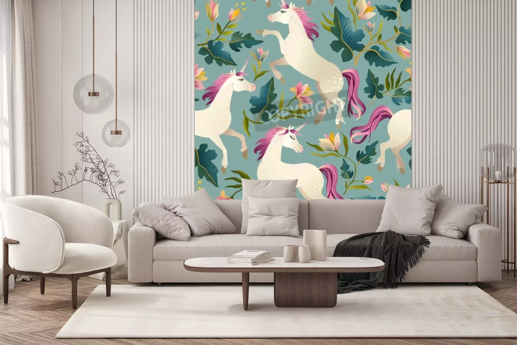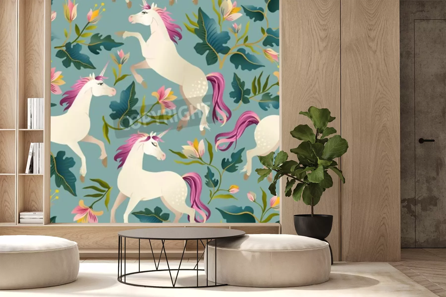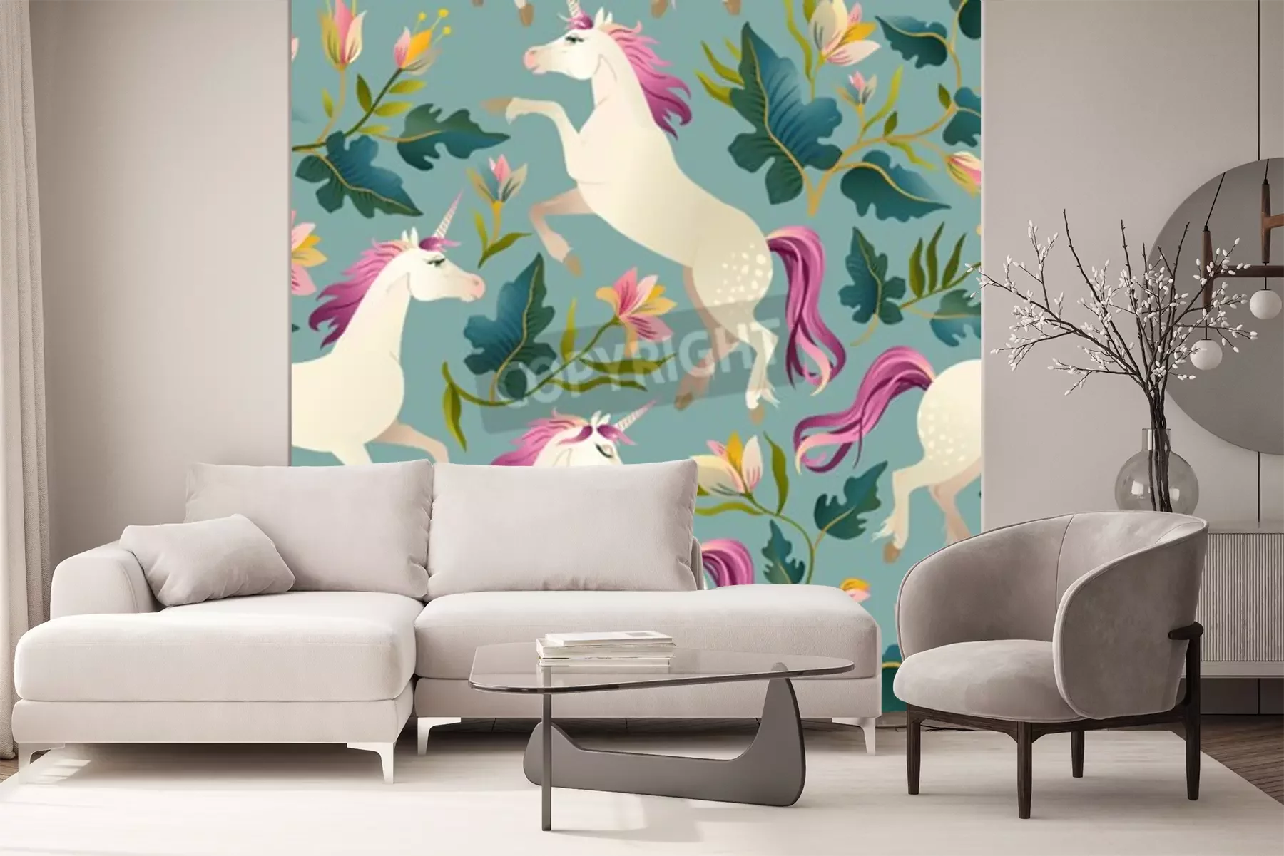 Sticker  Licornes parmi les fleurs et les feuilles