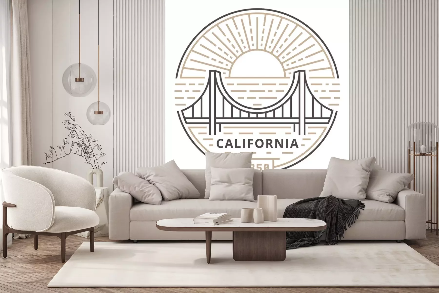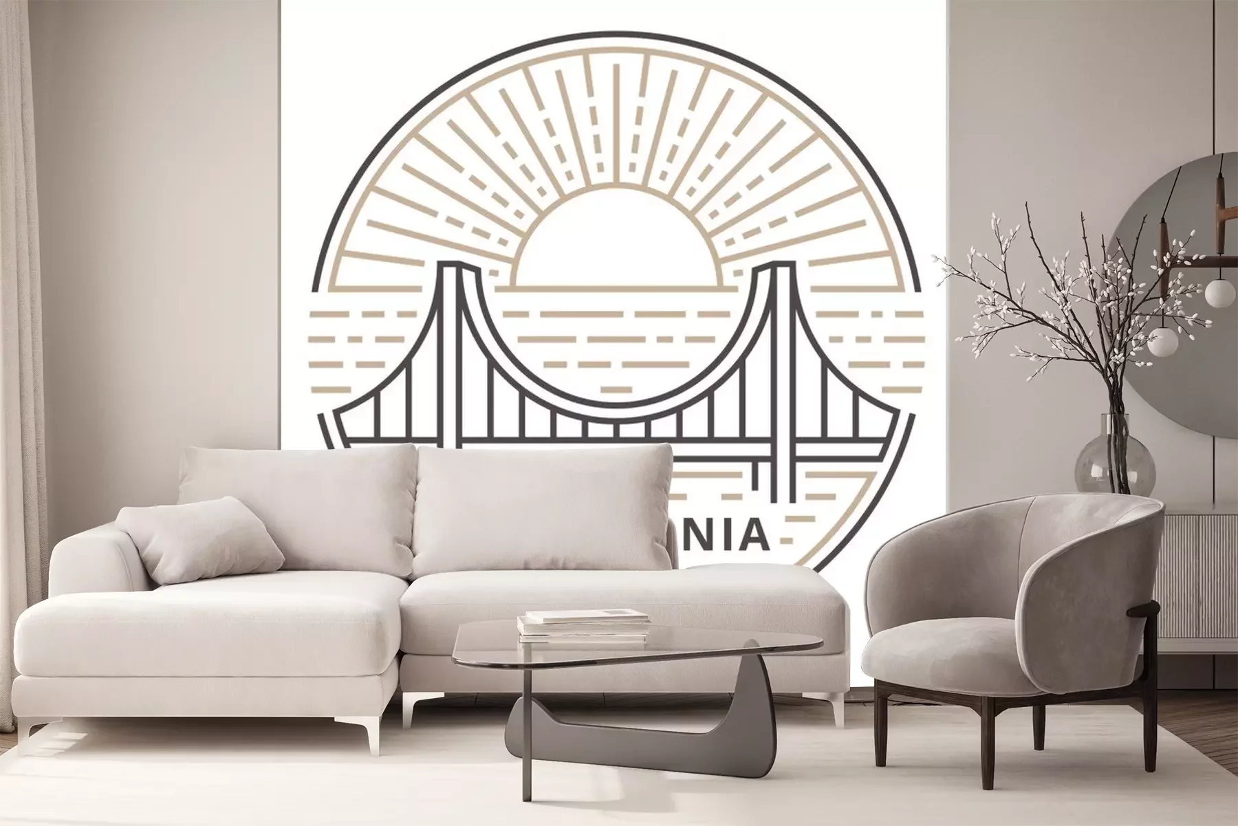 Sticker  Linear Golden Gate Bridge in San Francisco against the sun as an emblem