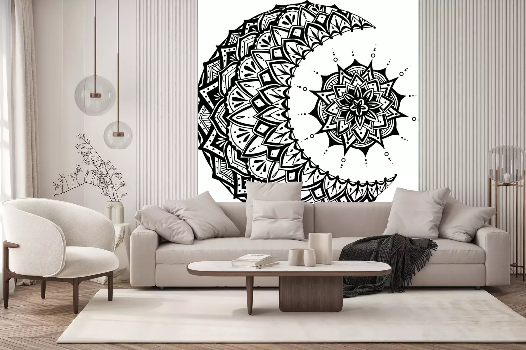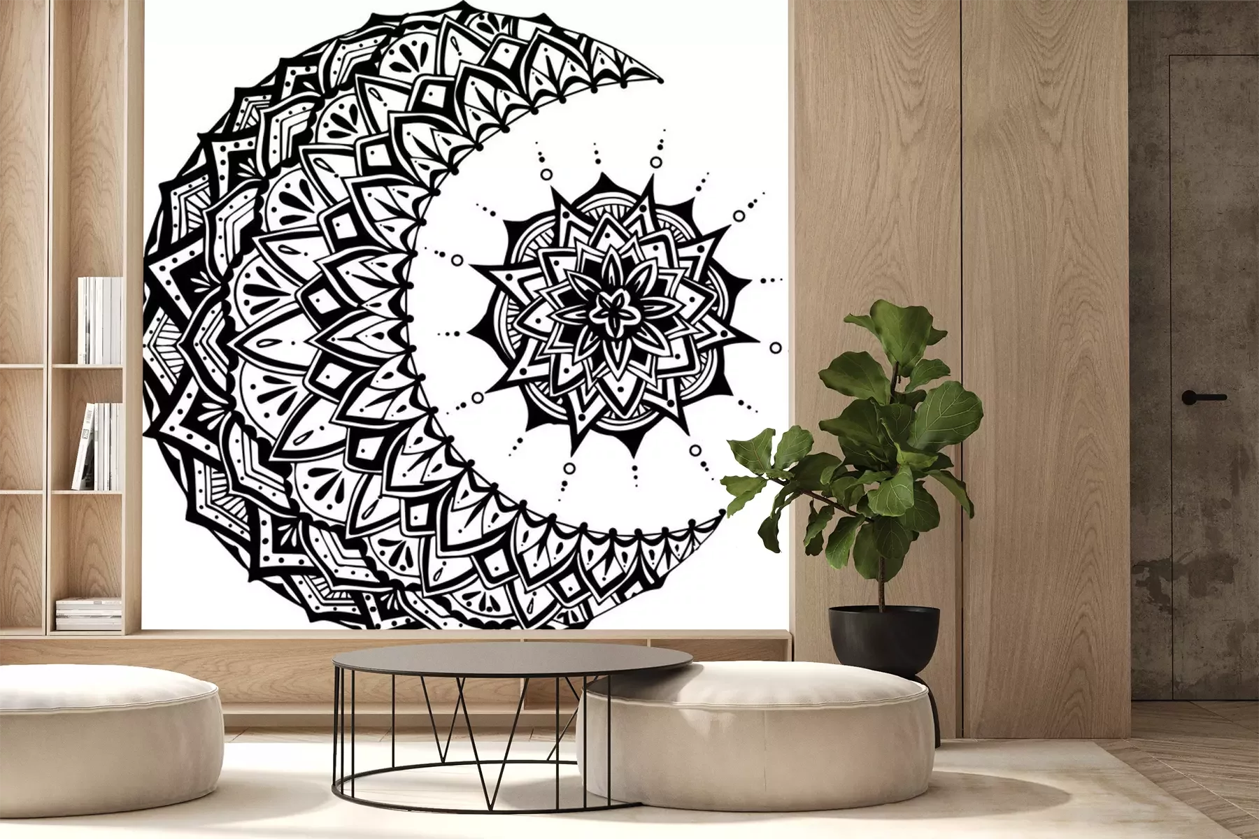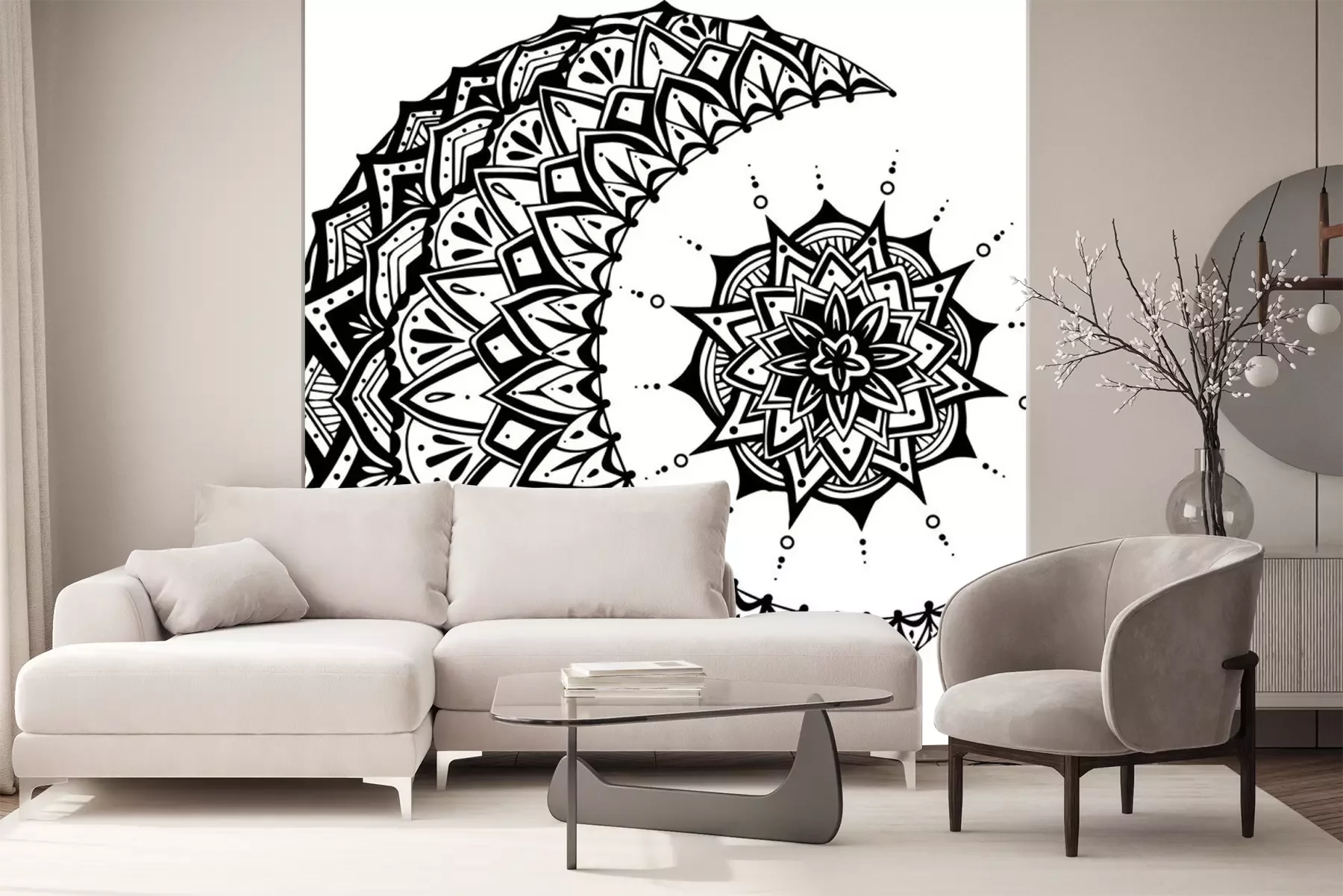 Sticker  Lune et soleil sur fond noir. Illustration vectorielle