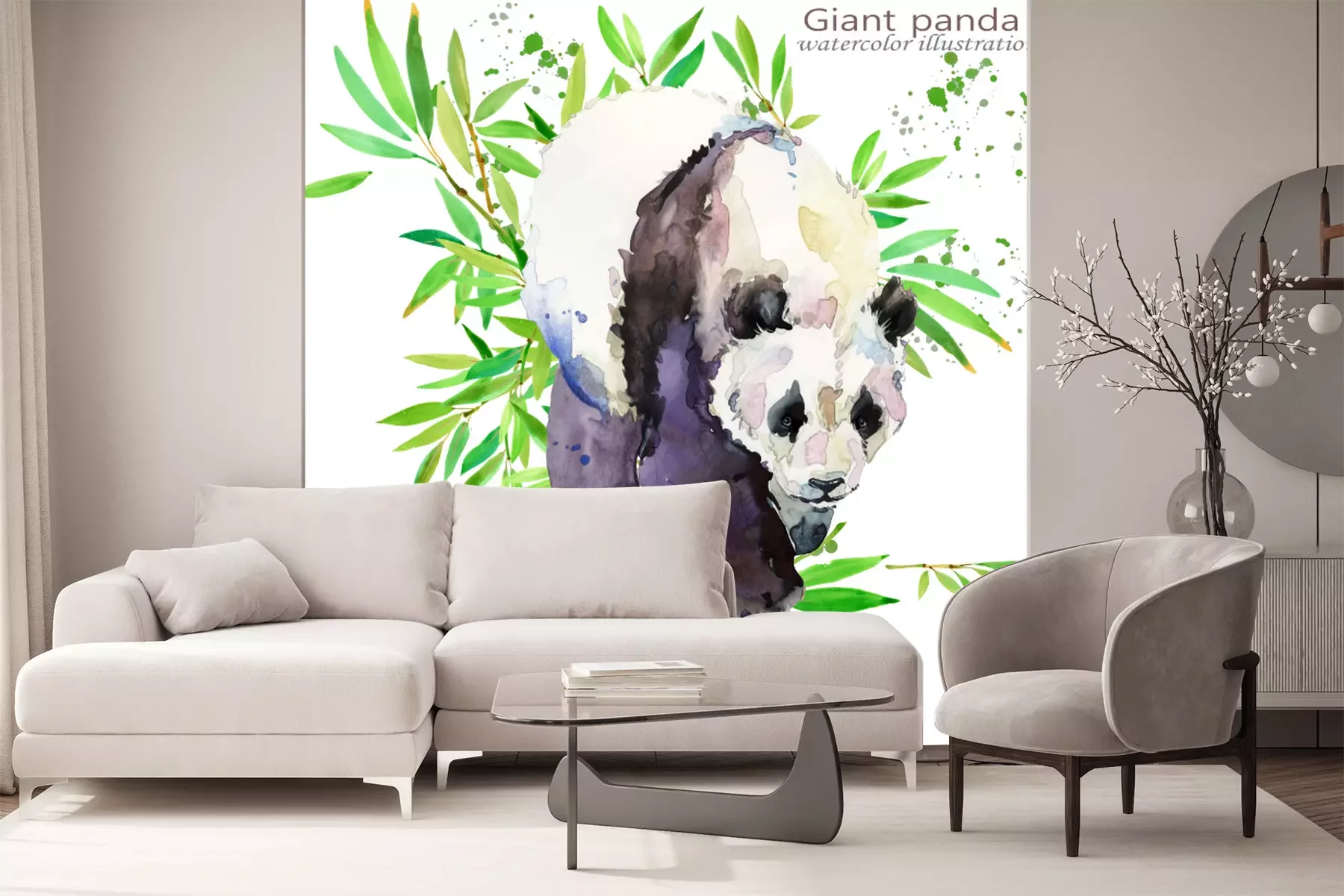 Sticker  main Panda sauvage dessiner illustration aquarelle