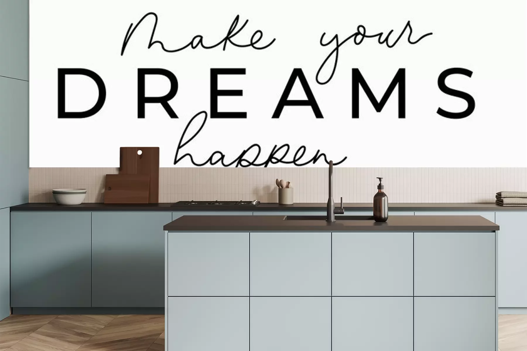 Sticker  Make your dreams happen inspirational lettering card. Cute and kind lettering inscription for prints, textile etc. Vector illustration