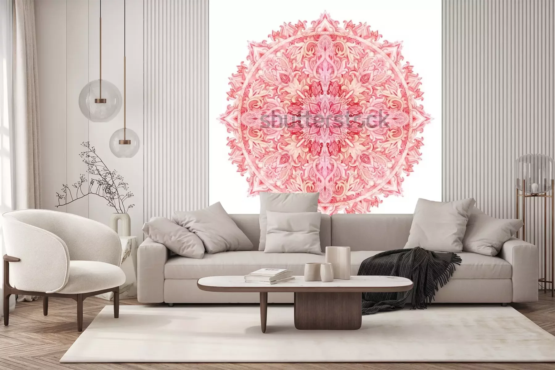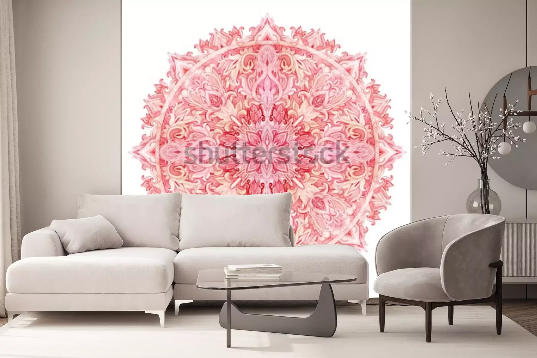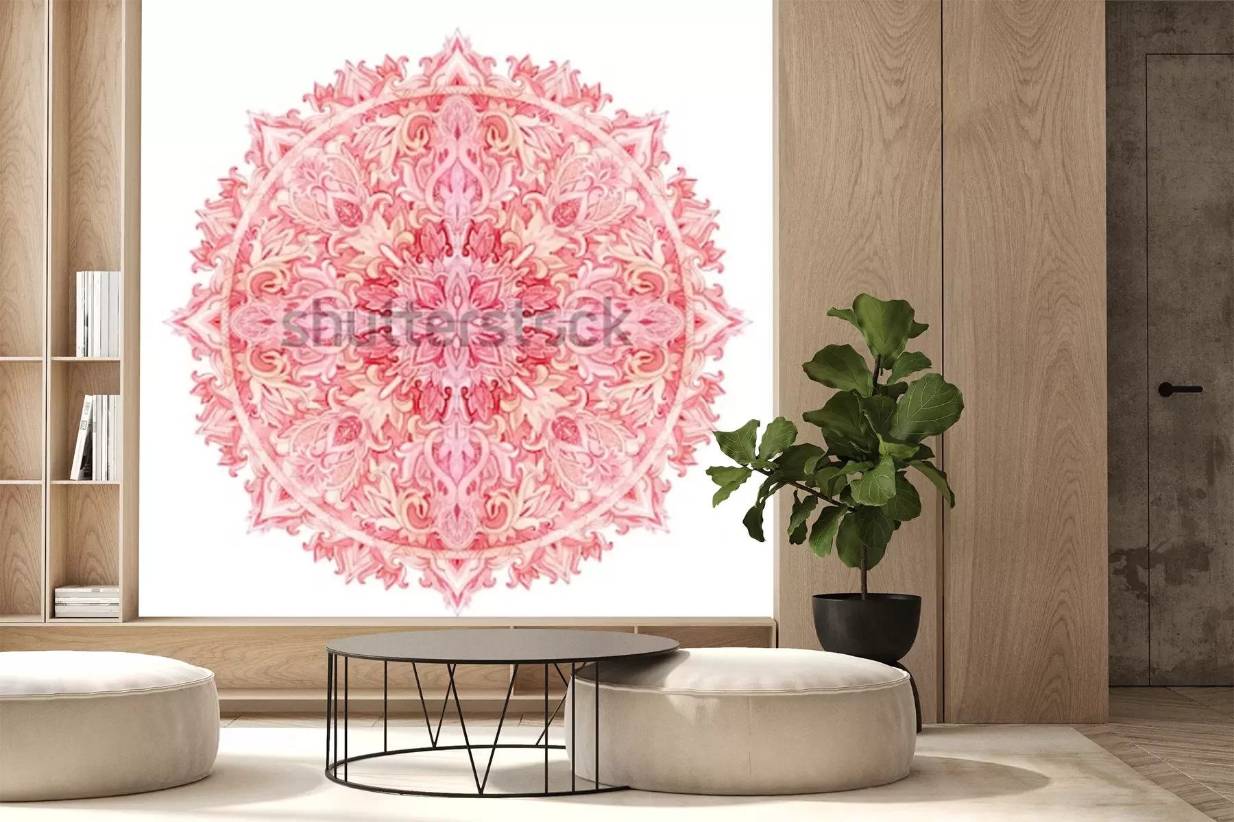 Sticker  Mandala d'aquarelle. Modèle dessiné à la main dans le style oriental. Motif de dentelle ornementale pour les styles tribal et boho. Dentelle traditionnelle isolée sur fond blanc.