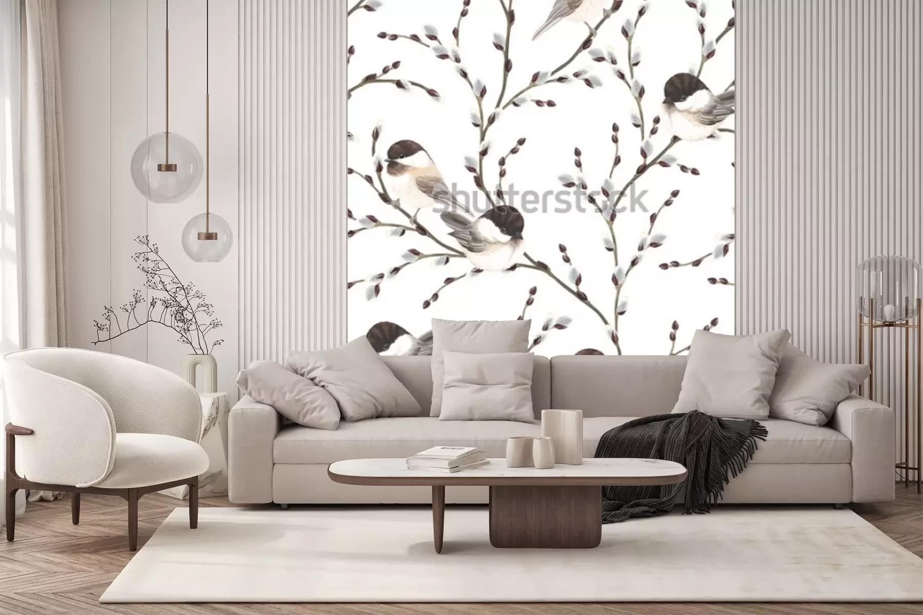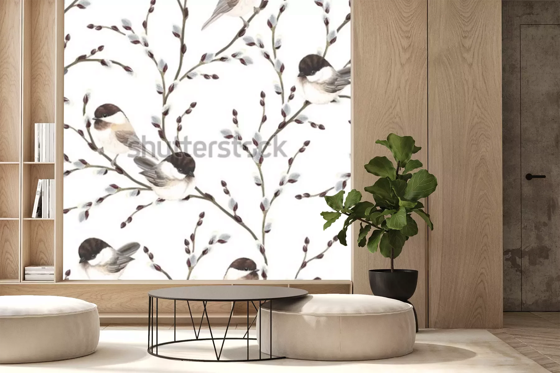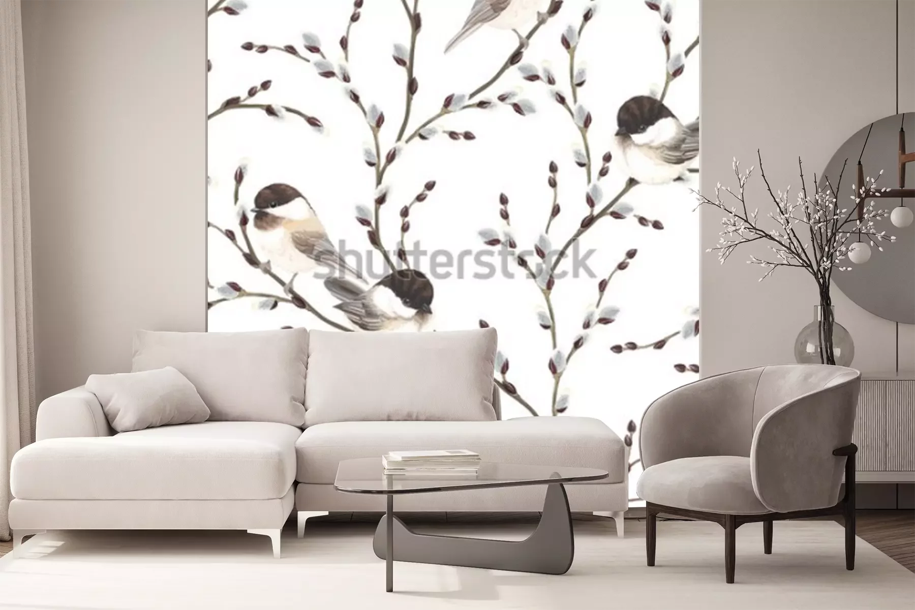 Sticker  Mésanges à tête noire oiseaux, illustration vectorielle sur fond blanc dans un style Aquarelle vintage.