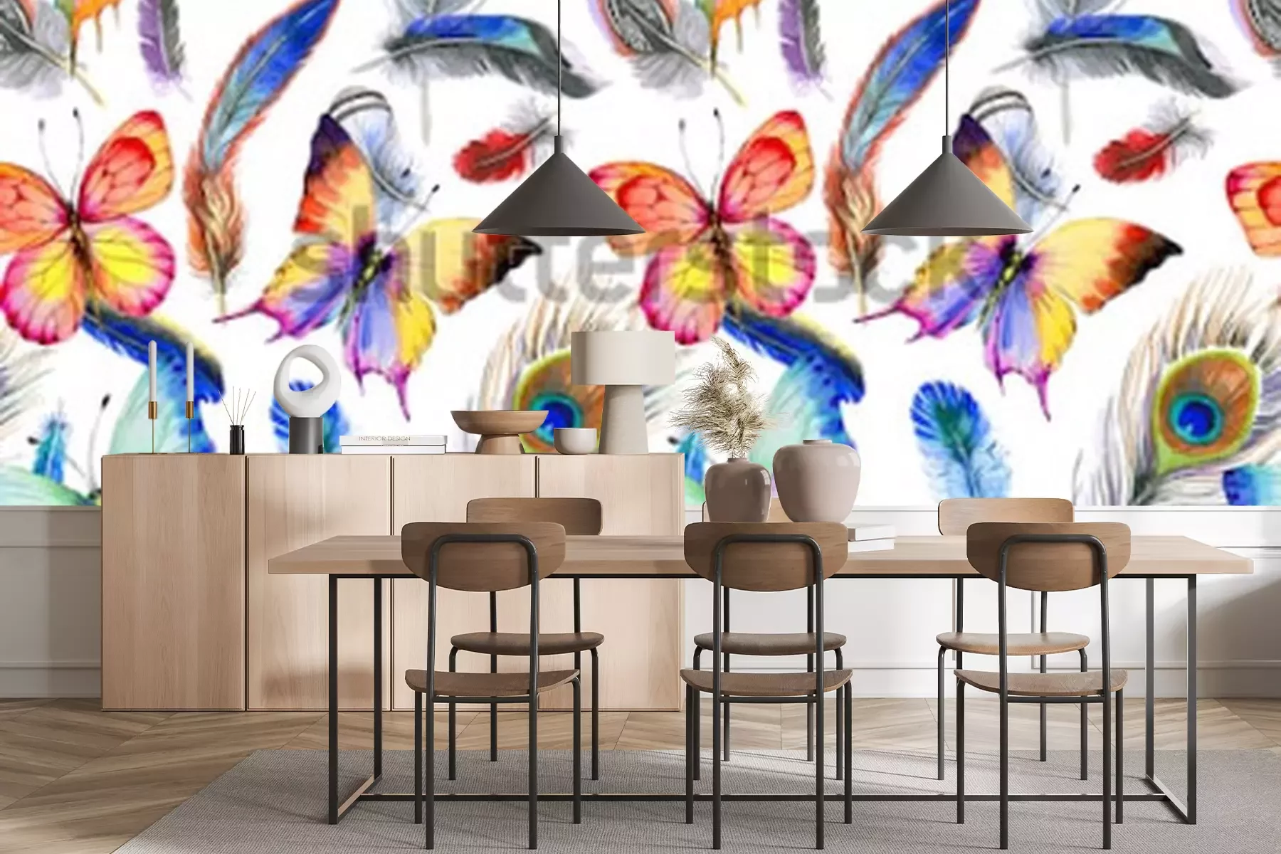 Sticker  Modèle de plume d'oiseau aquarelle de l'aile. Aquarelles Fleur sauvage pour le fond, la texture, le motif enveloppant, le cadre ou la bordure.