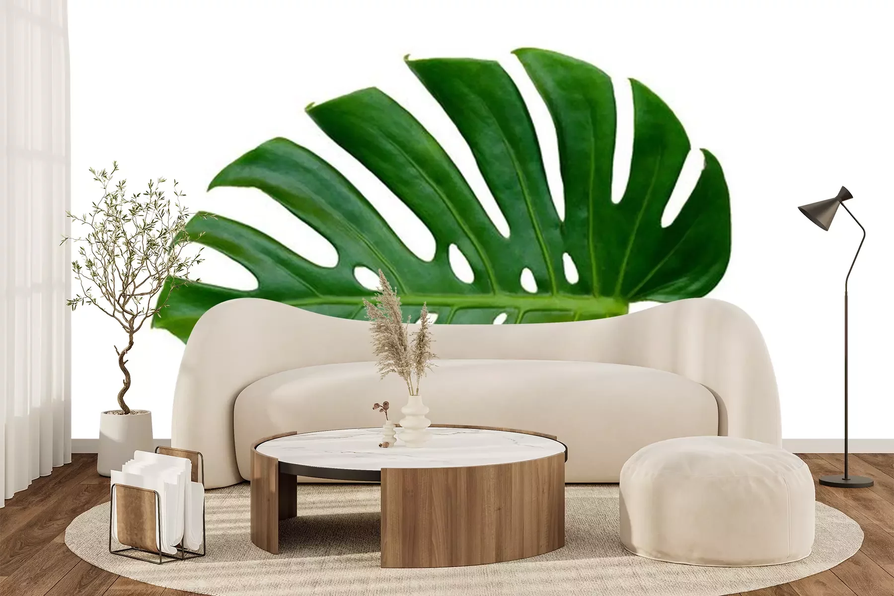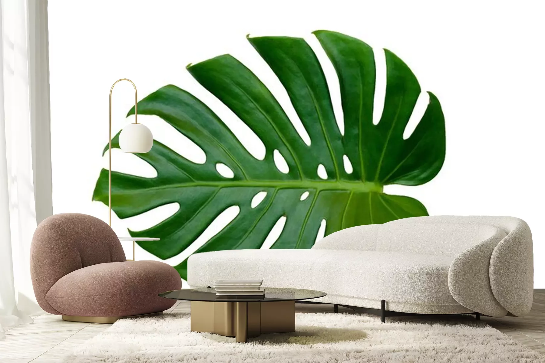 Sticker  Monstera feuilles feuilles avec isoler sur fond blanc feuilles sur blanc