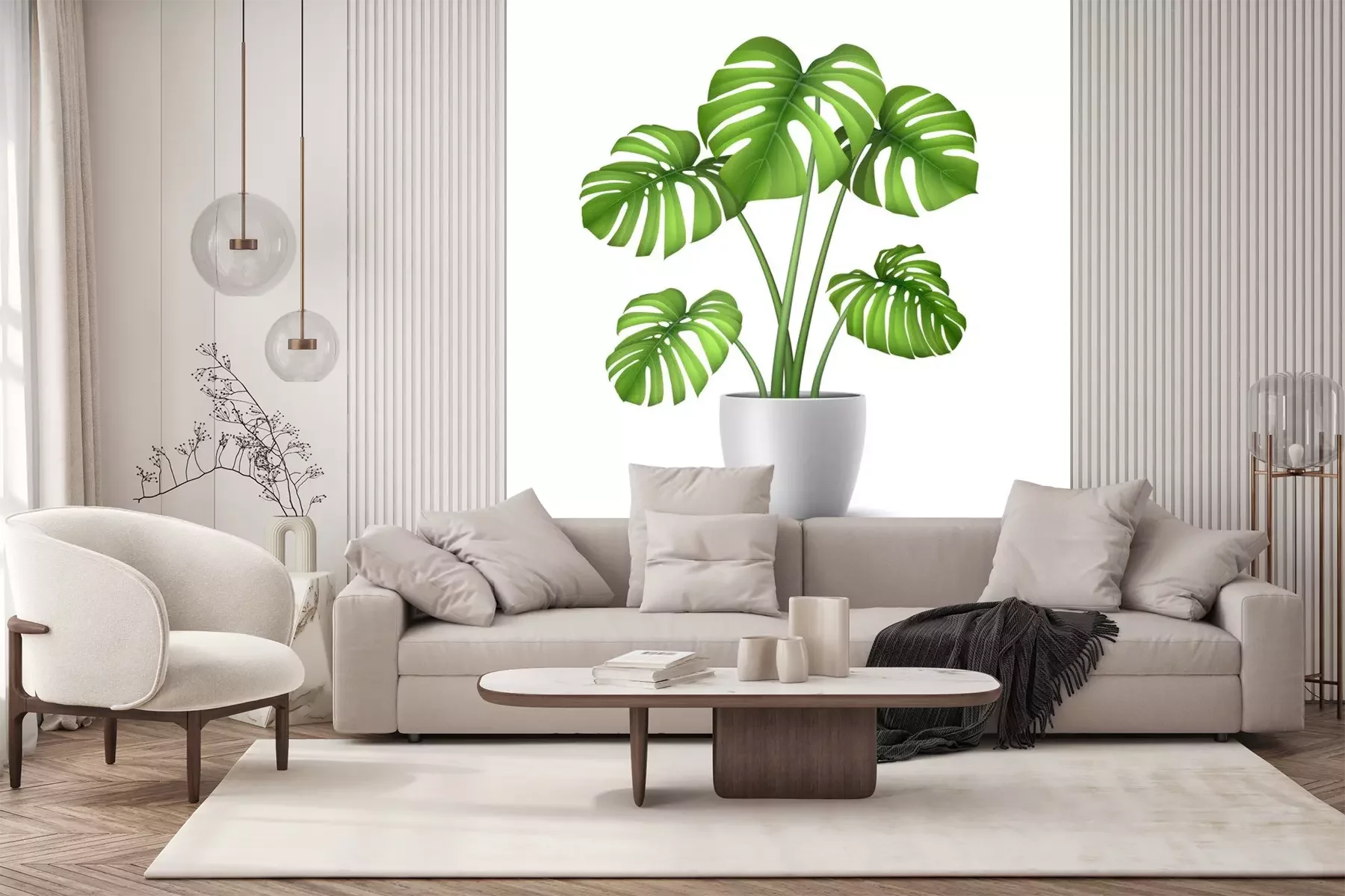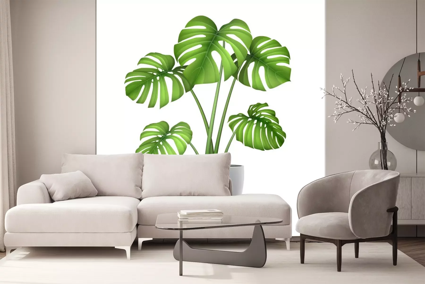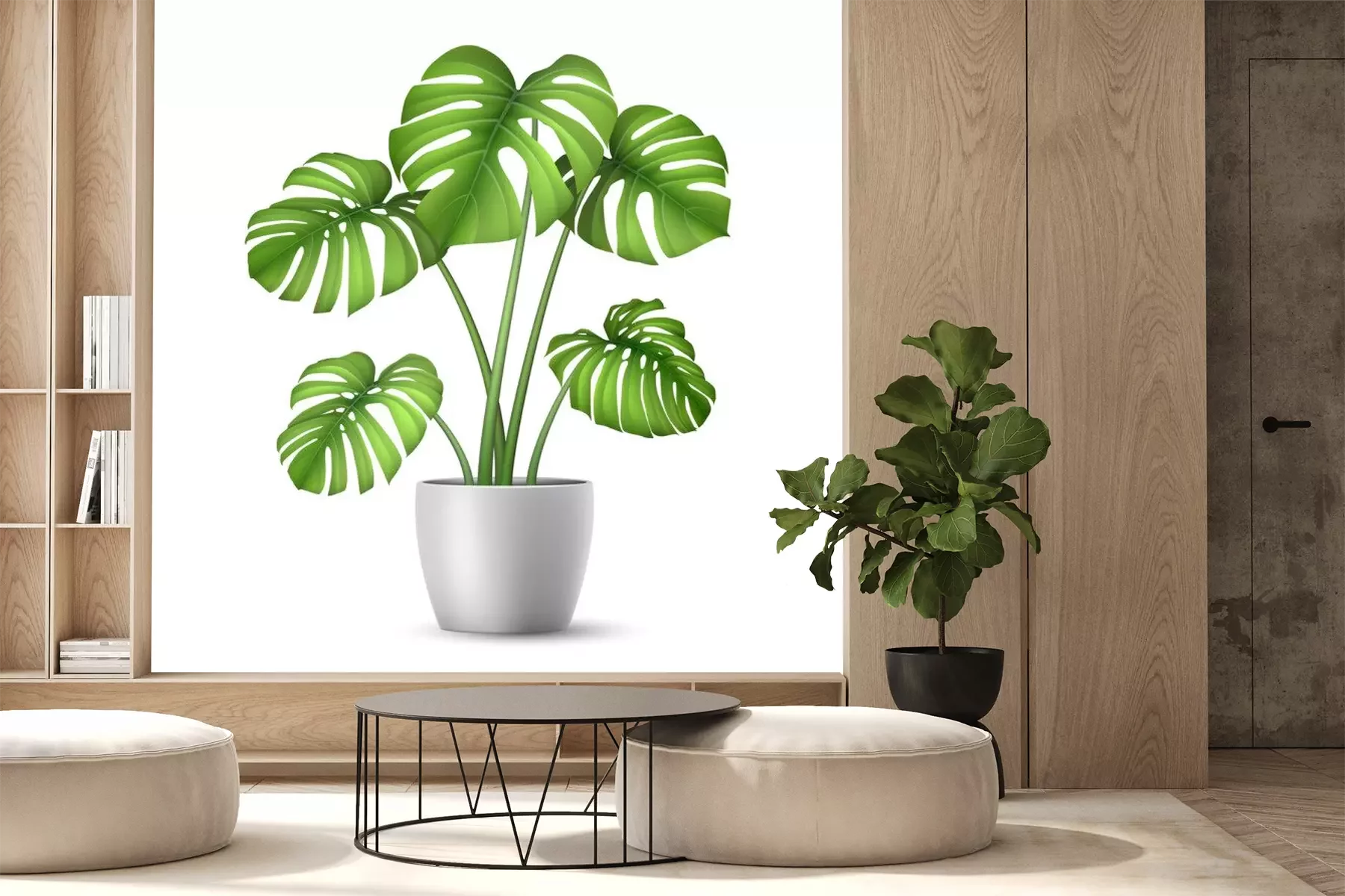 Sticker  Monstera in a flower pot isolated. Tropical plant for interior decor of home or office. Vector illustration in vector realistic 3d style.