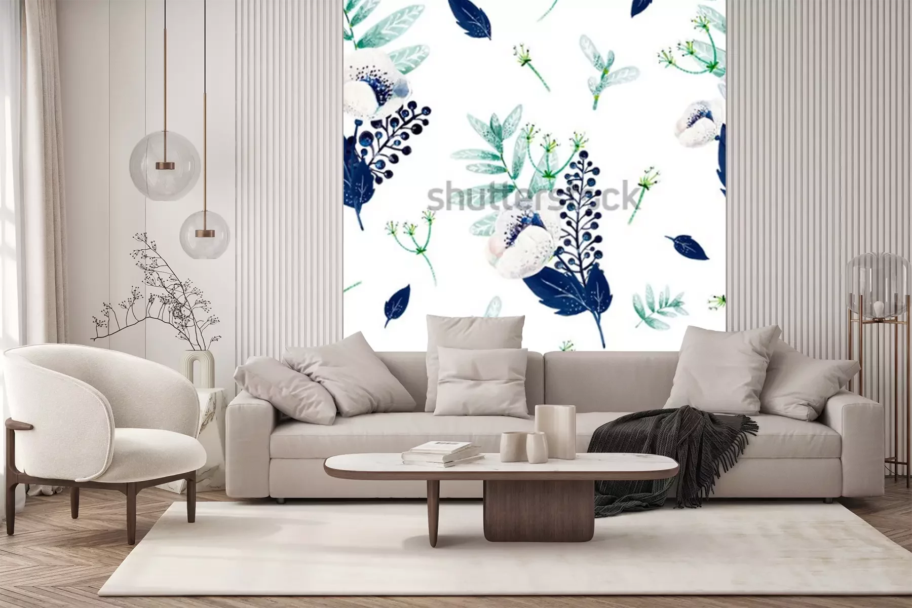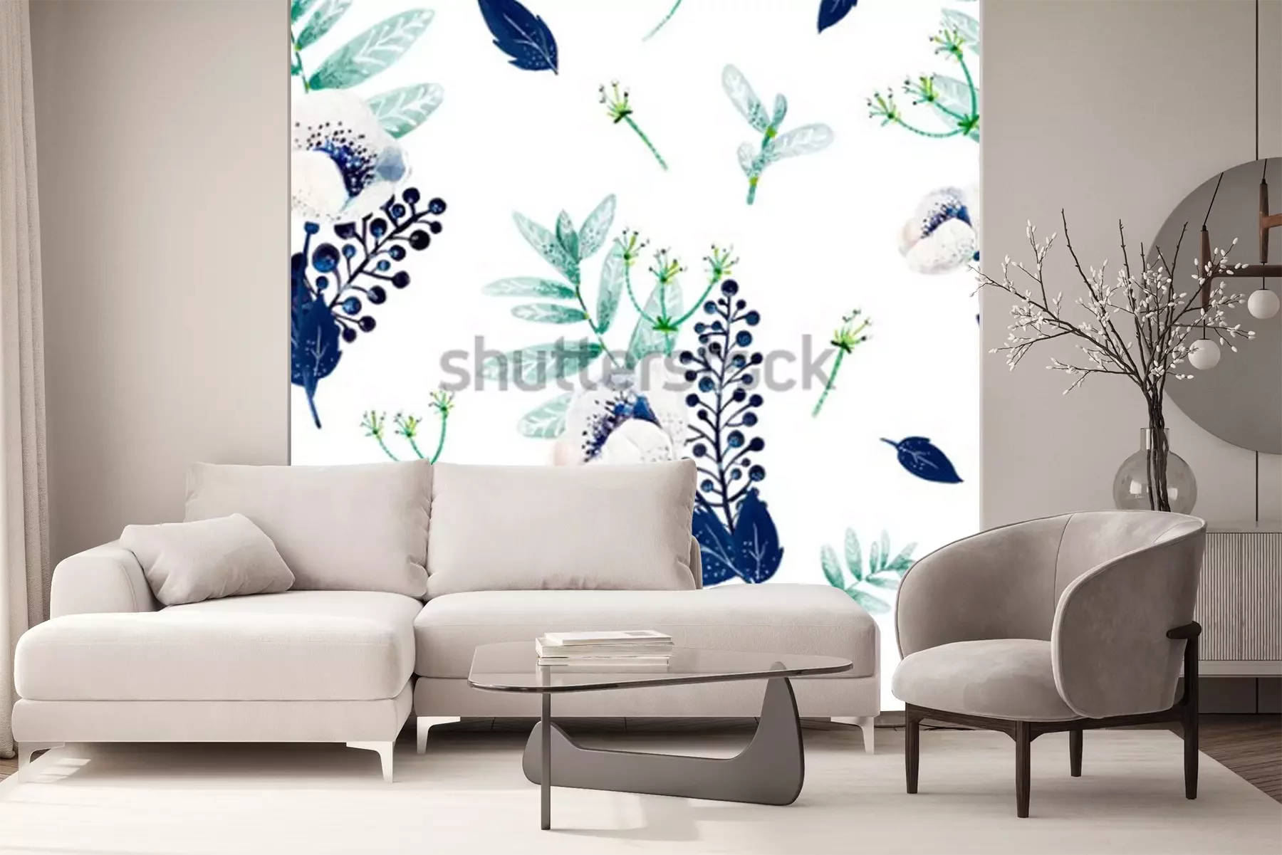 Sticker  Motif à fleurs en bleu et vert