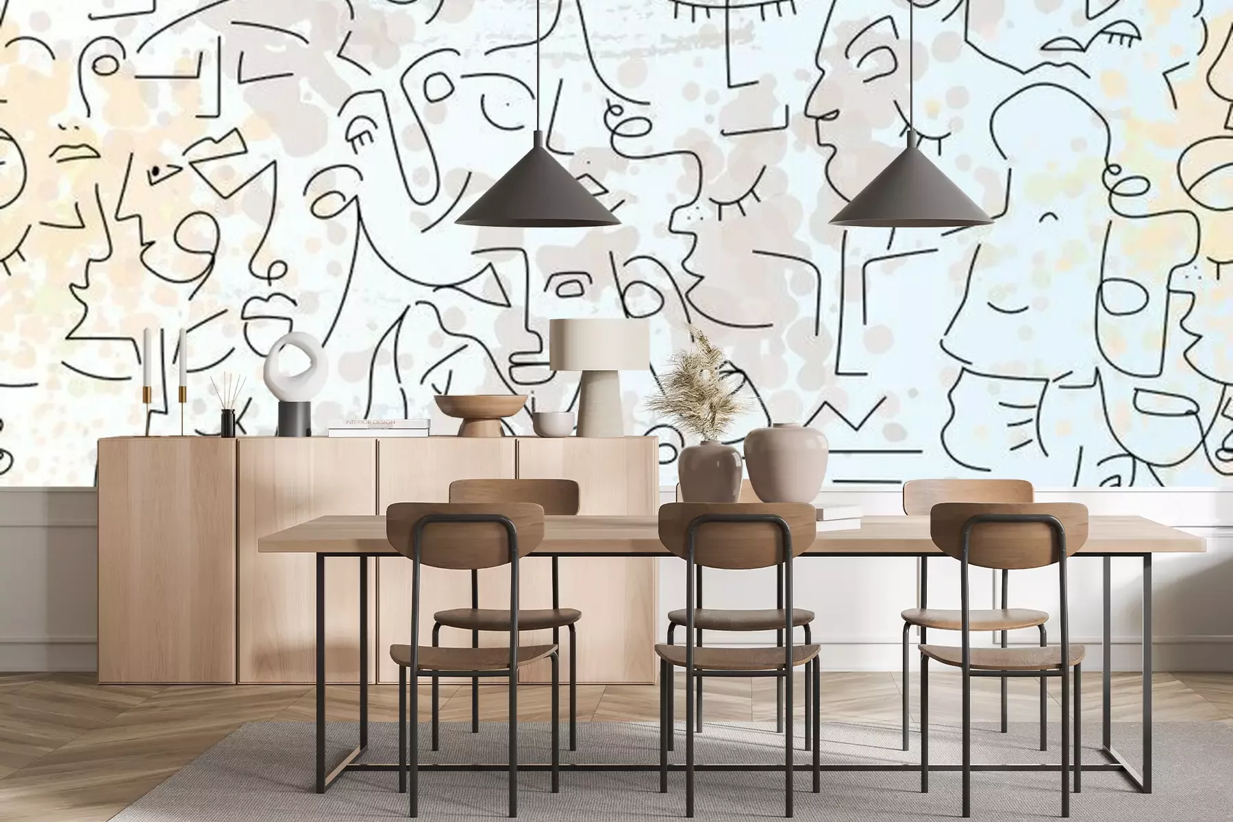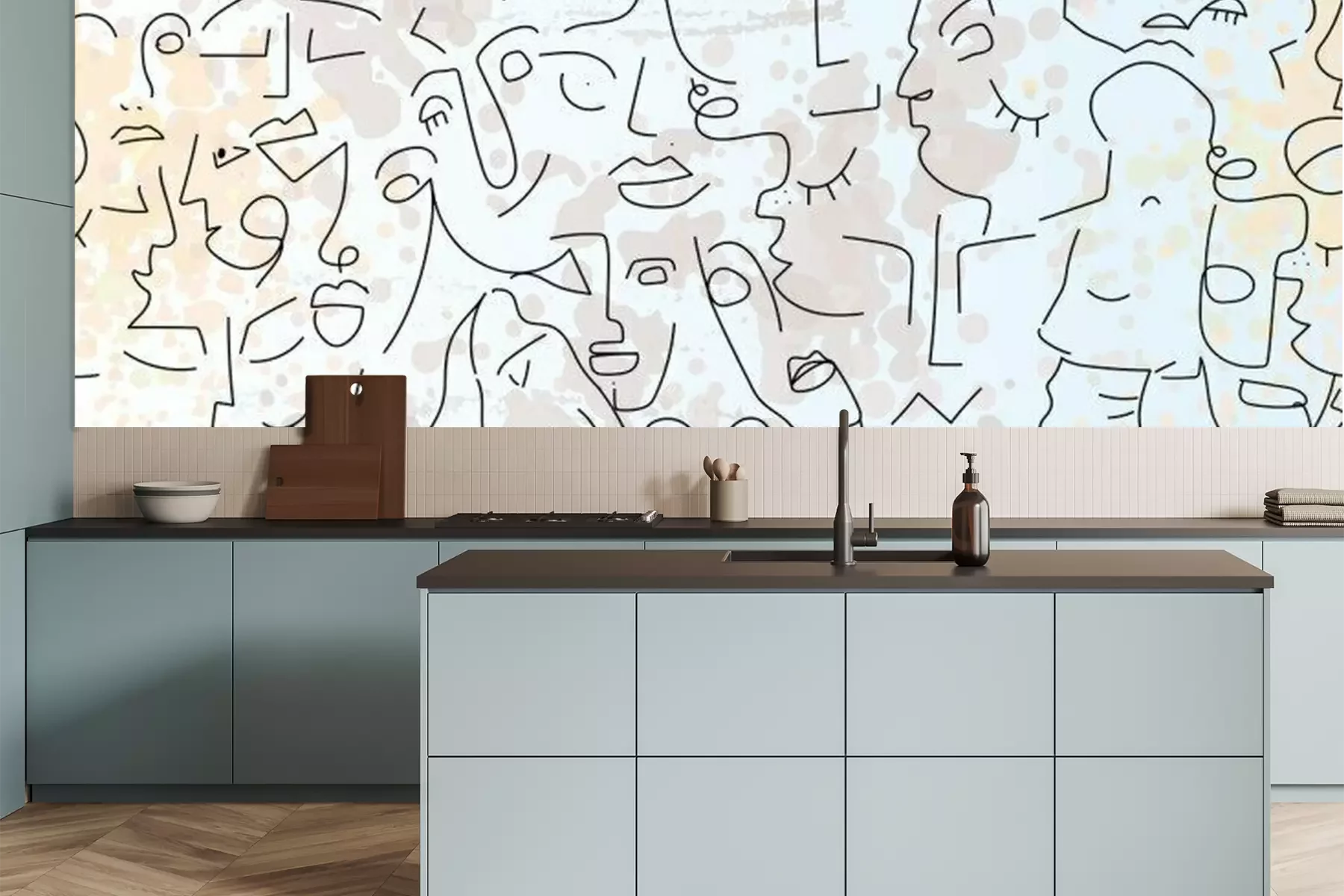 Sticker  Motif avec des visages abstraits version line art