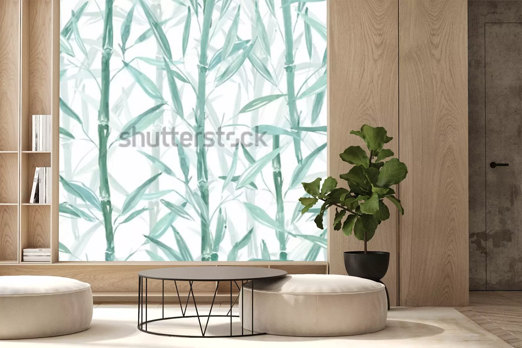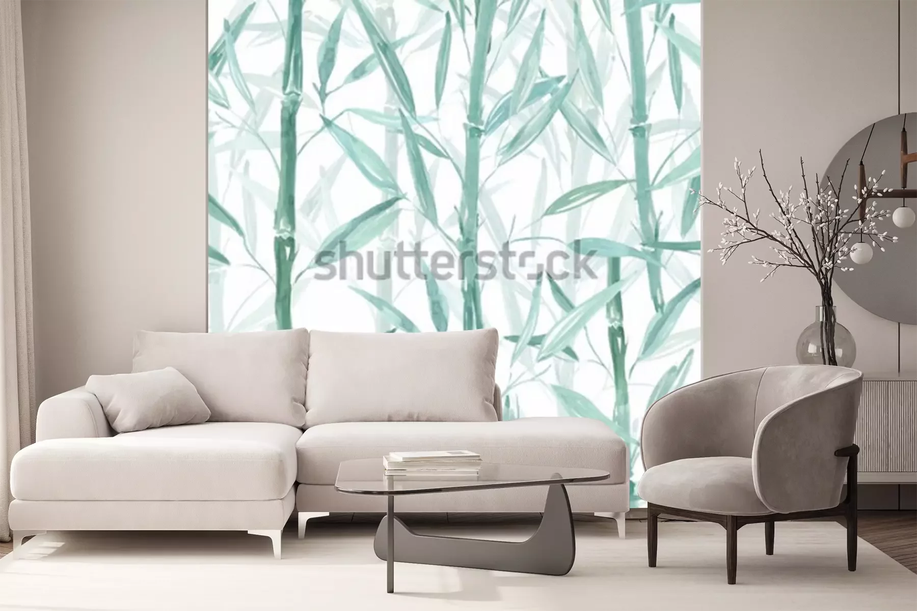 Sticker  Motif botanique sans soudure. Branches de bambou sur fond blanc. Modèle élégant.