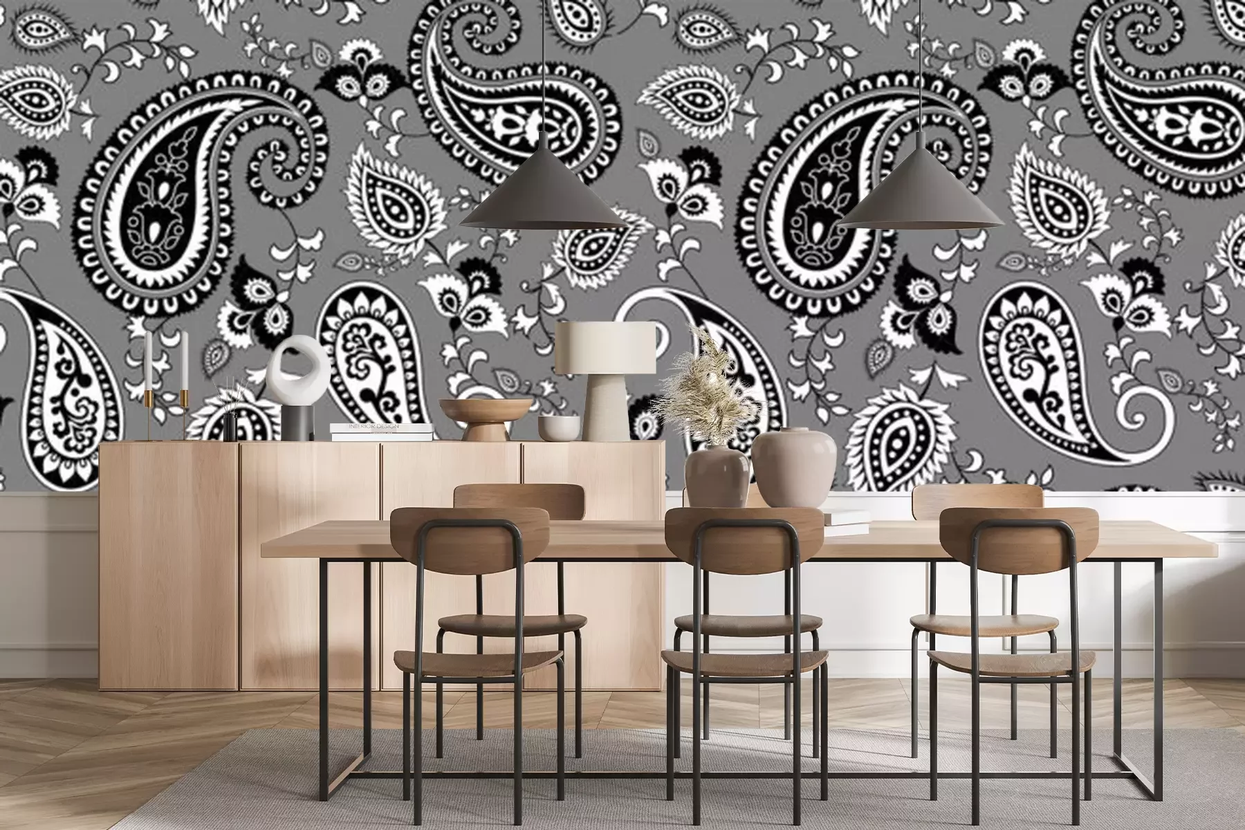 Ornement cachemire noir et grisLivraison sans problème assurée par des transporteurs de confiance