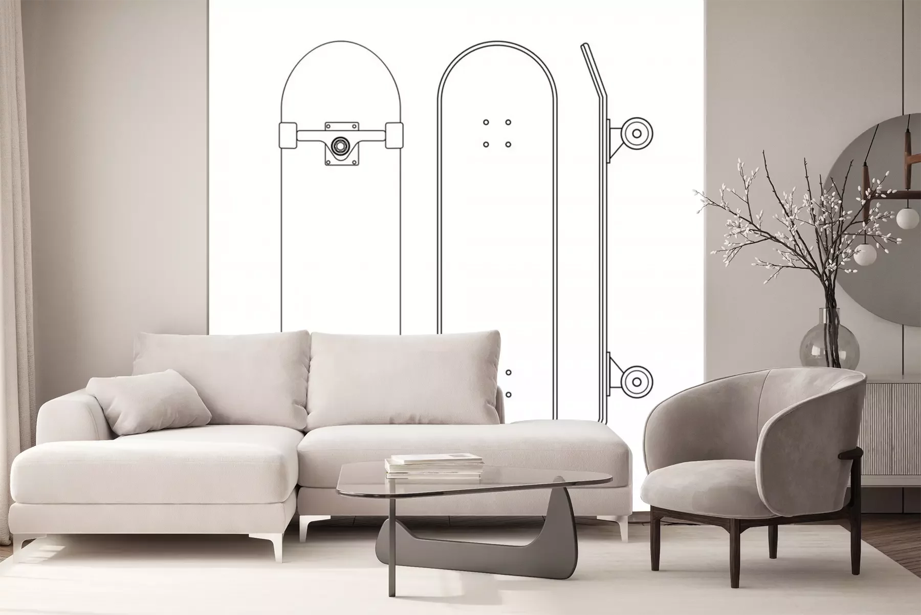 Sticker  Motif de skateboard sur fond blanc
