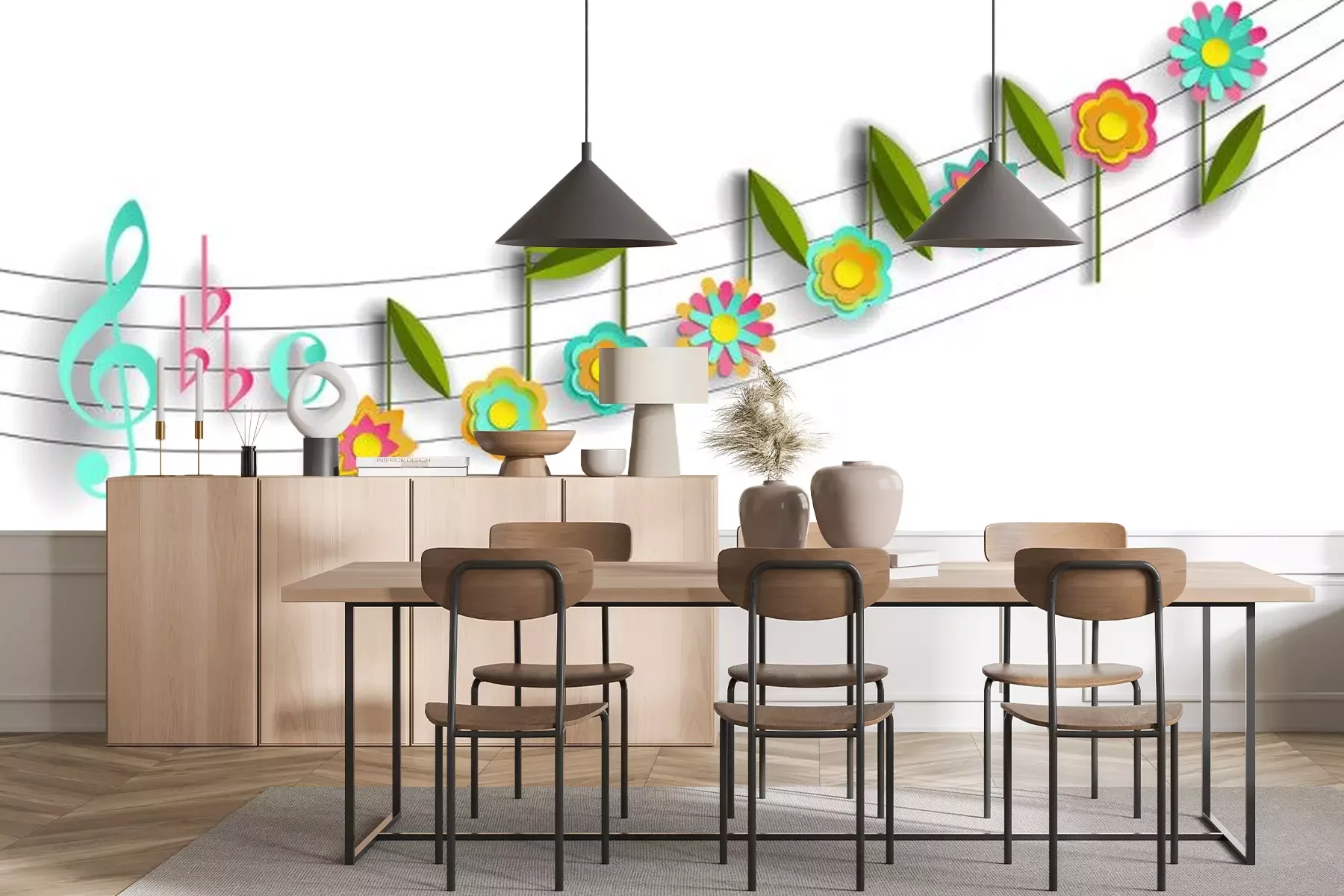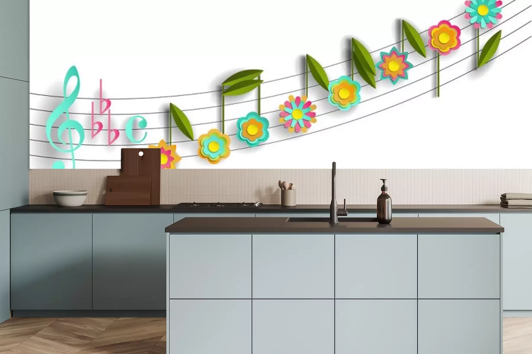 Sticker  Musical notes in the form of flowers. Paper stylization
