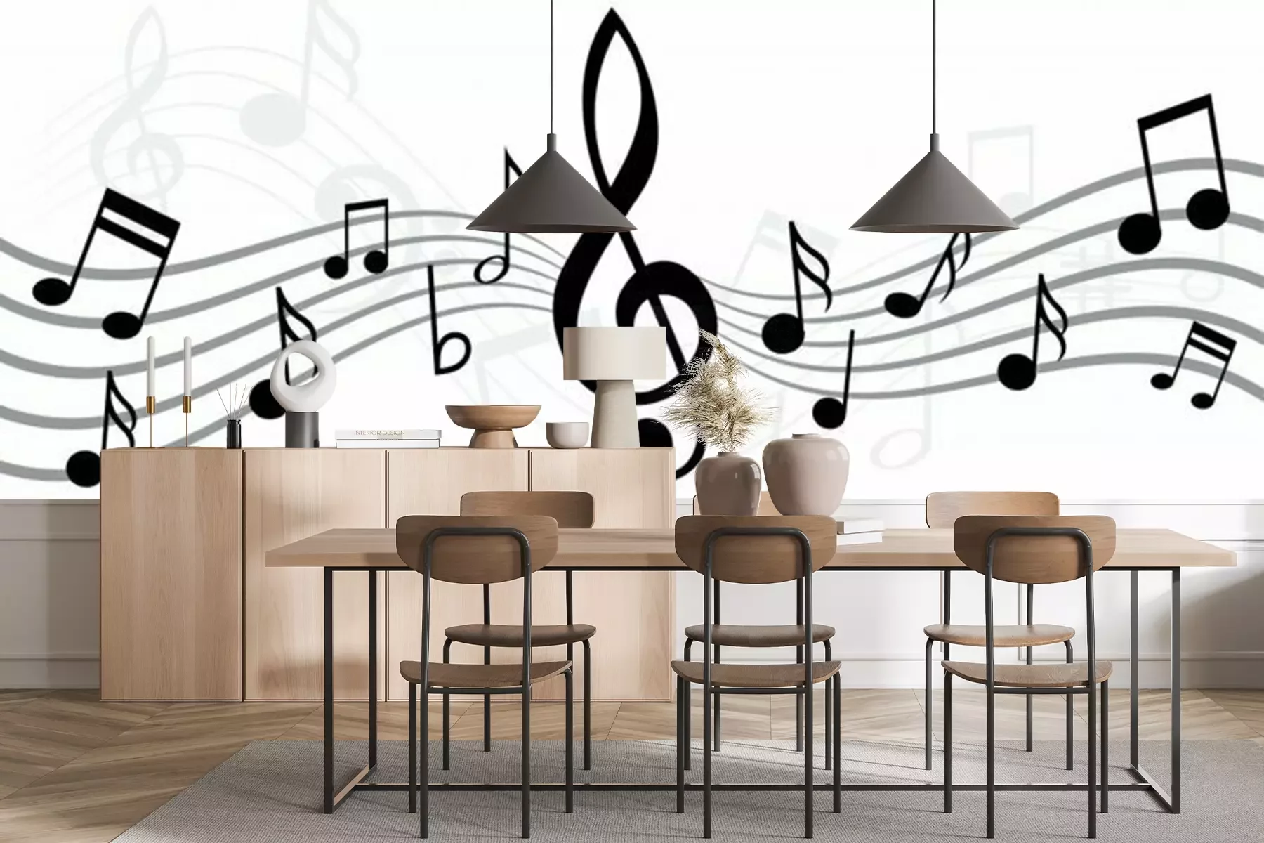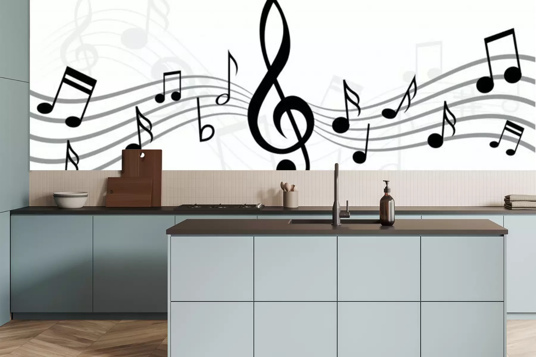 Sticker  Musical notes stave line pattern symbols icon for staff and music note theme Transparent background wave Piano, jazz sound notes Fun vector key sign Classic clef Doodle quaver G melody on paper