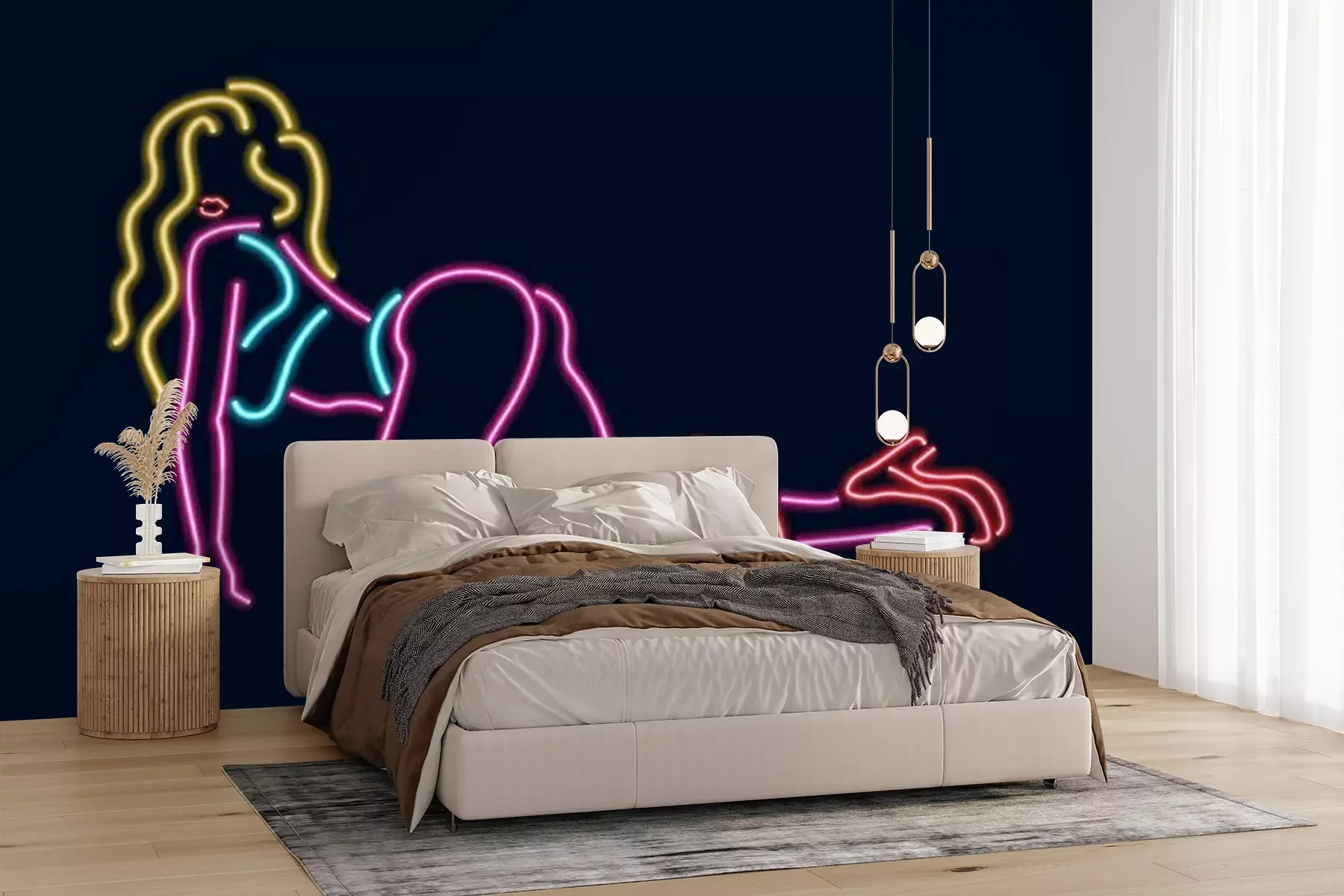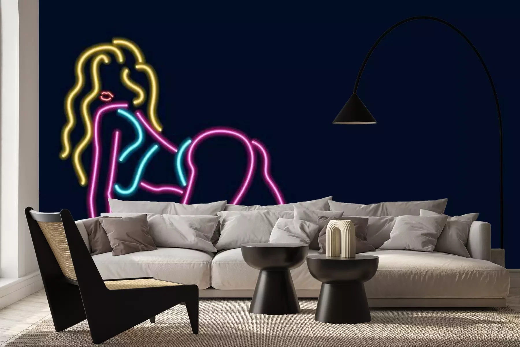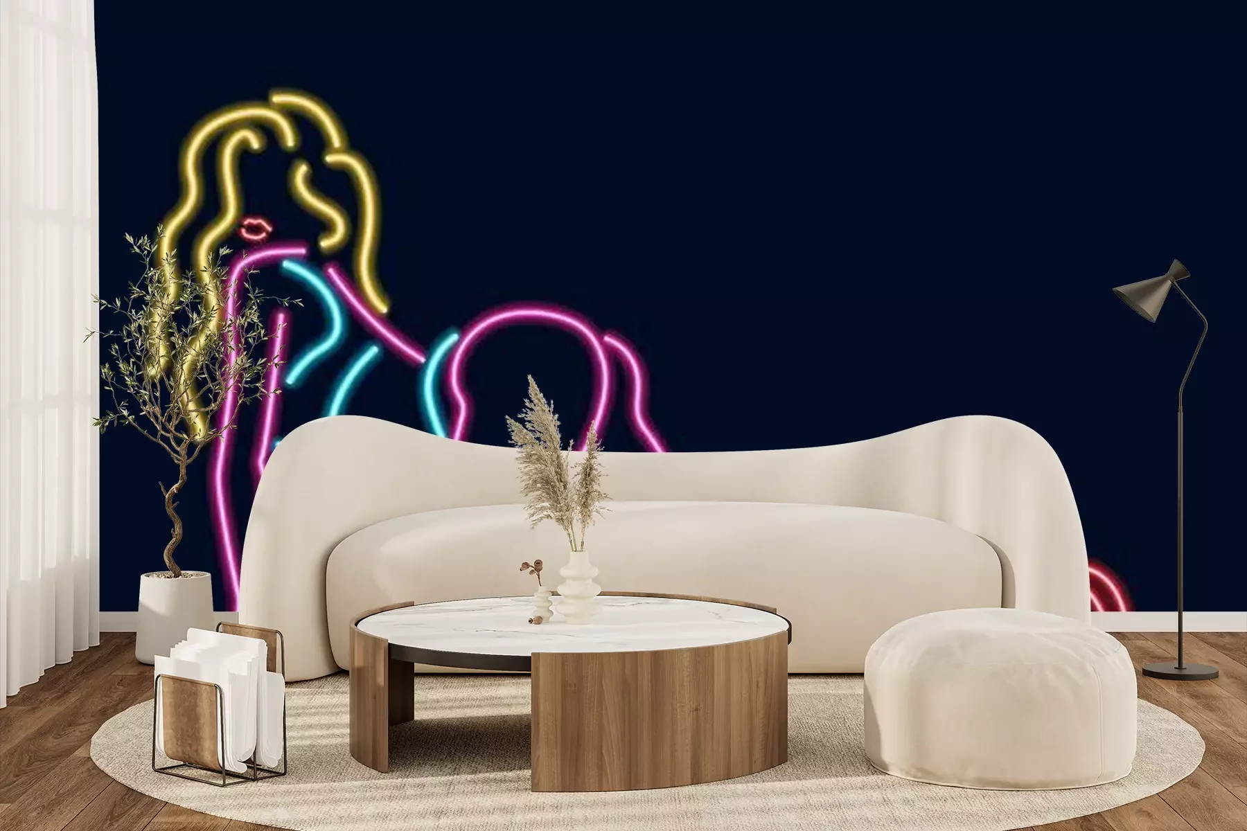Sticker  Neon silhouette of girl. Vector illustration isolated on dark background