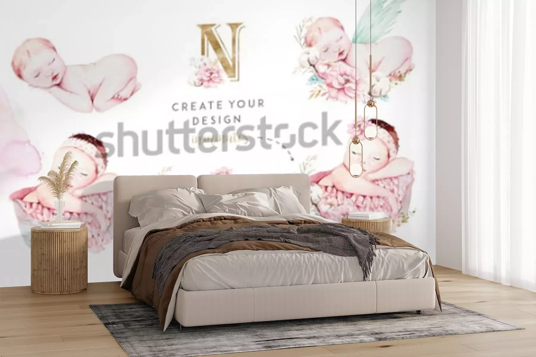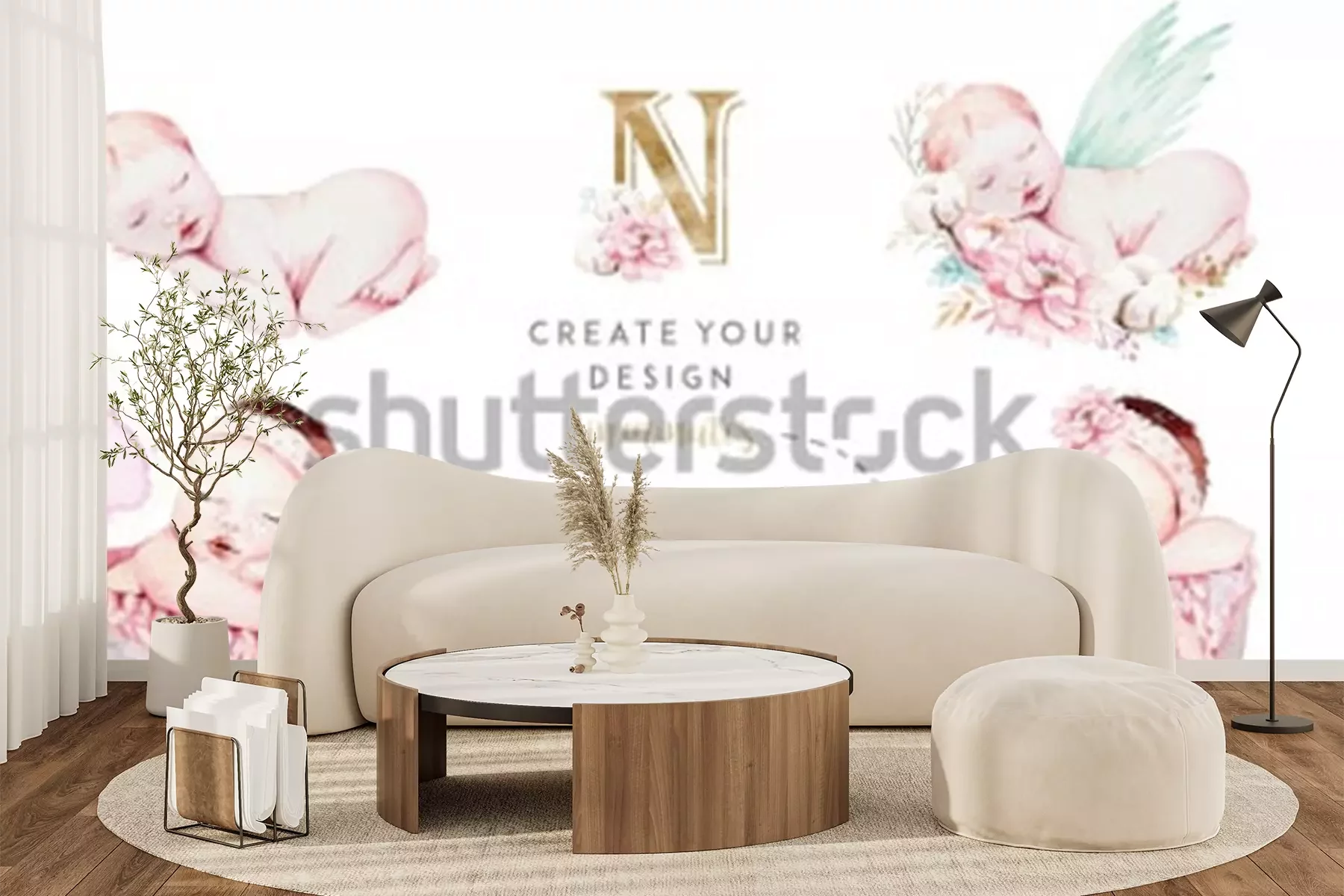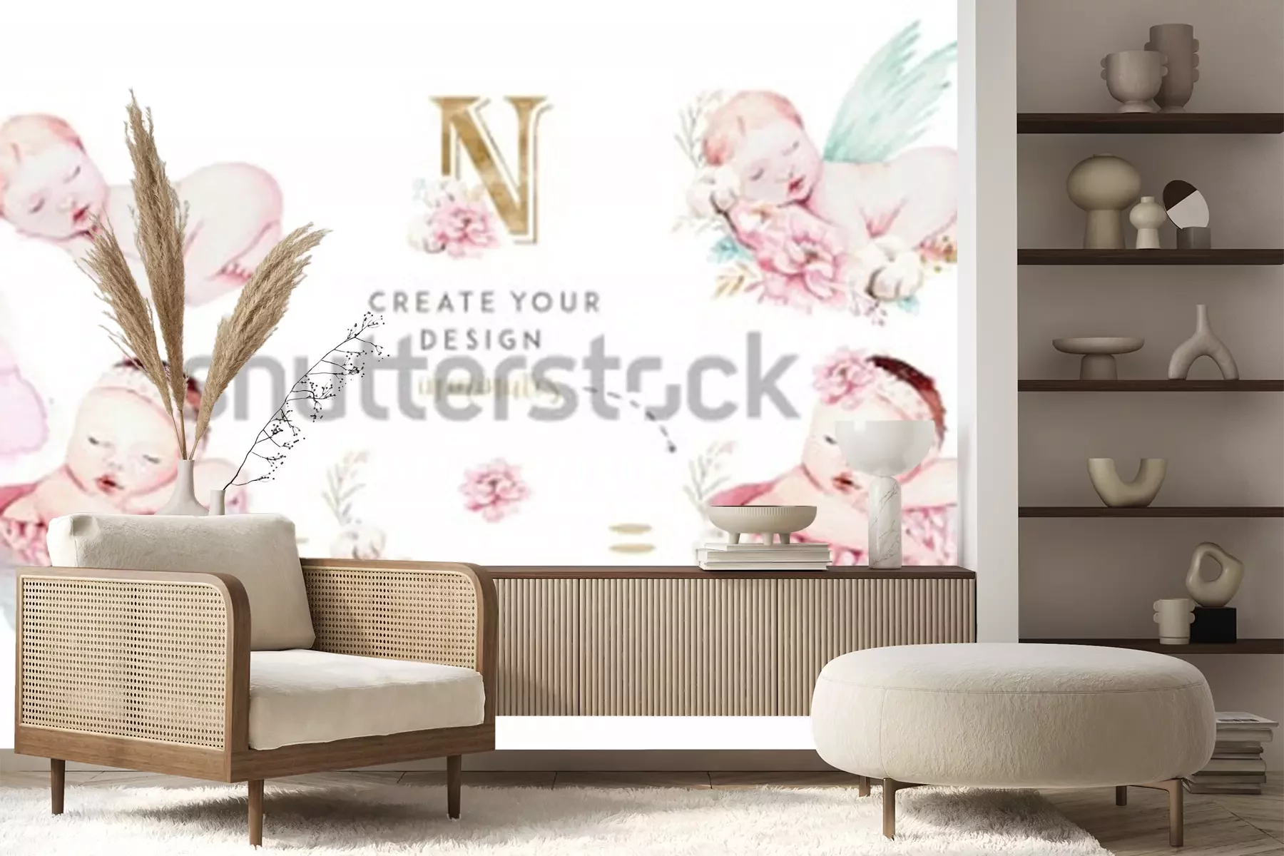 Sticker  Nouveau-nés endormis parmi les fleurs roses