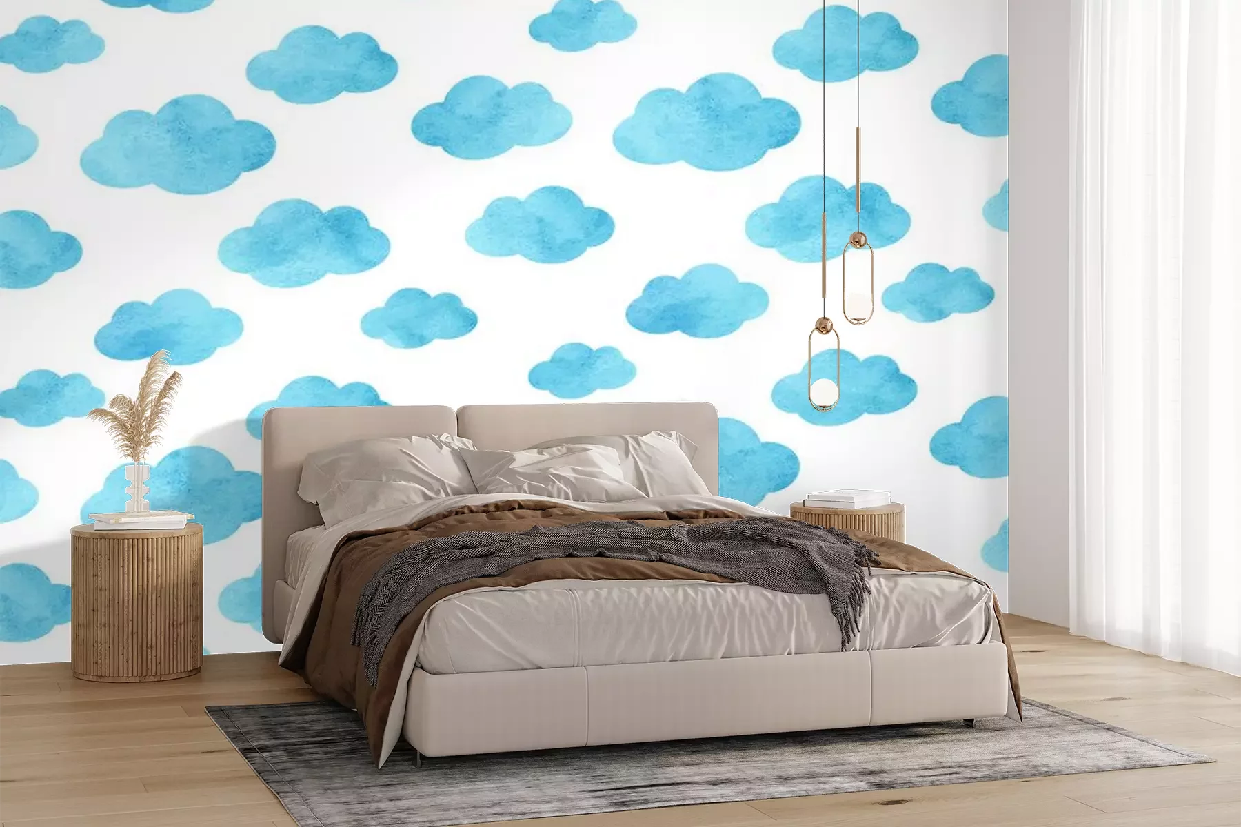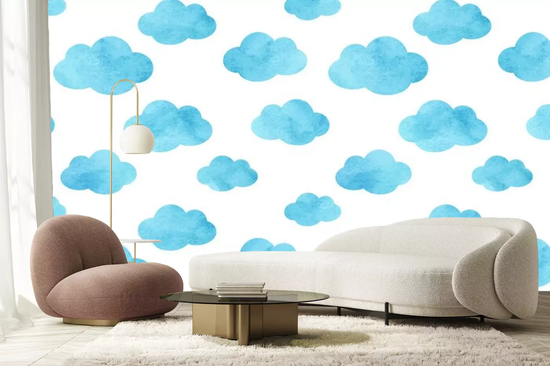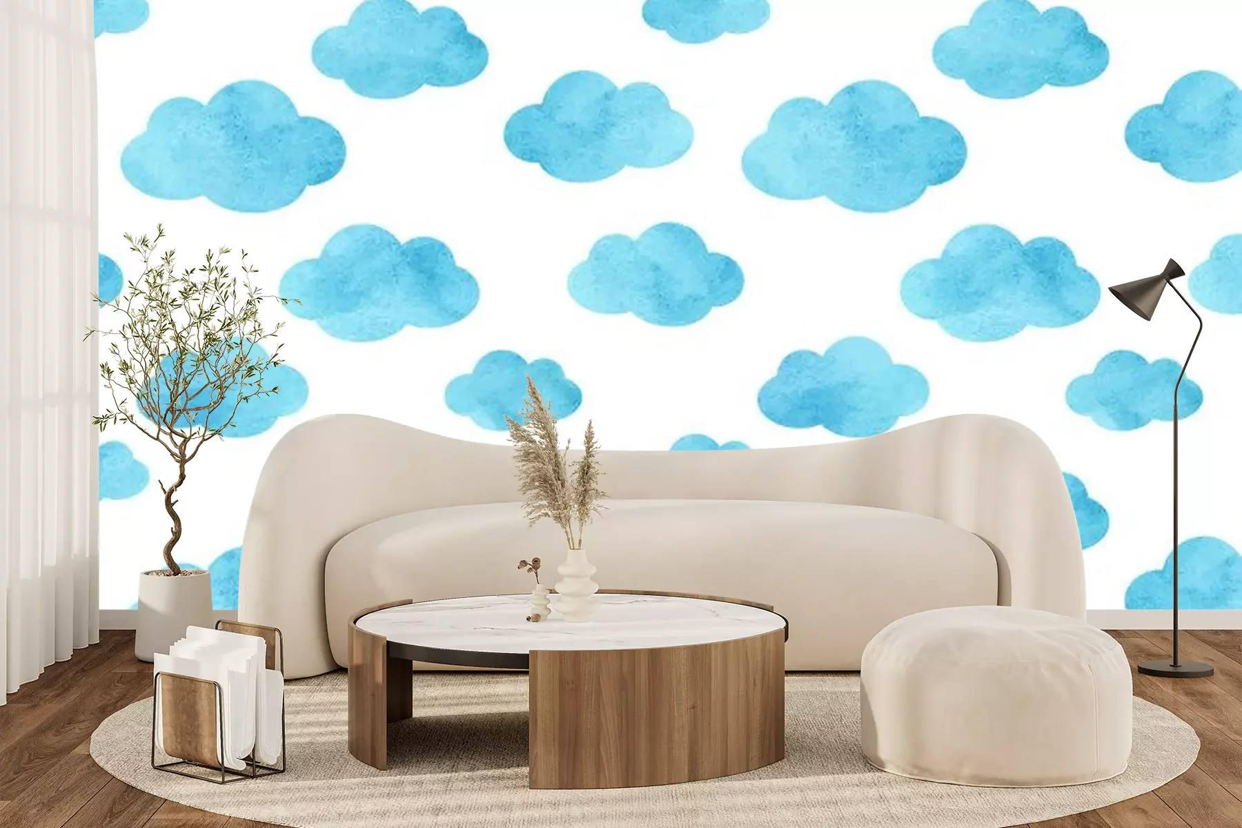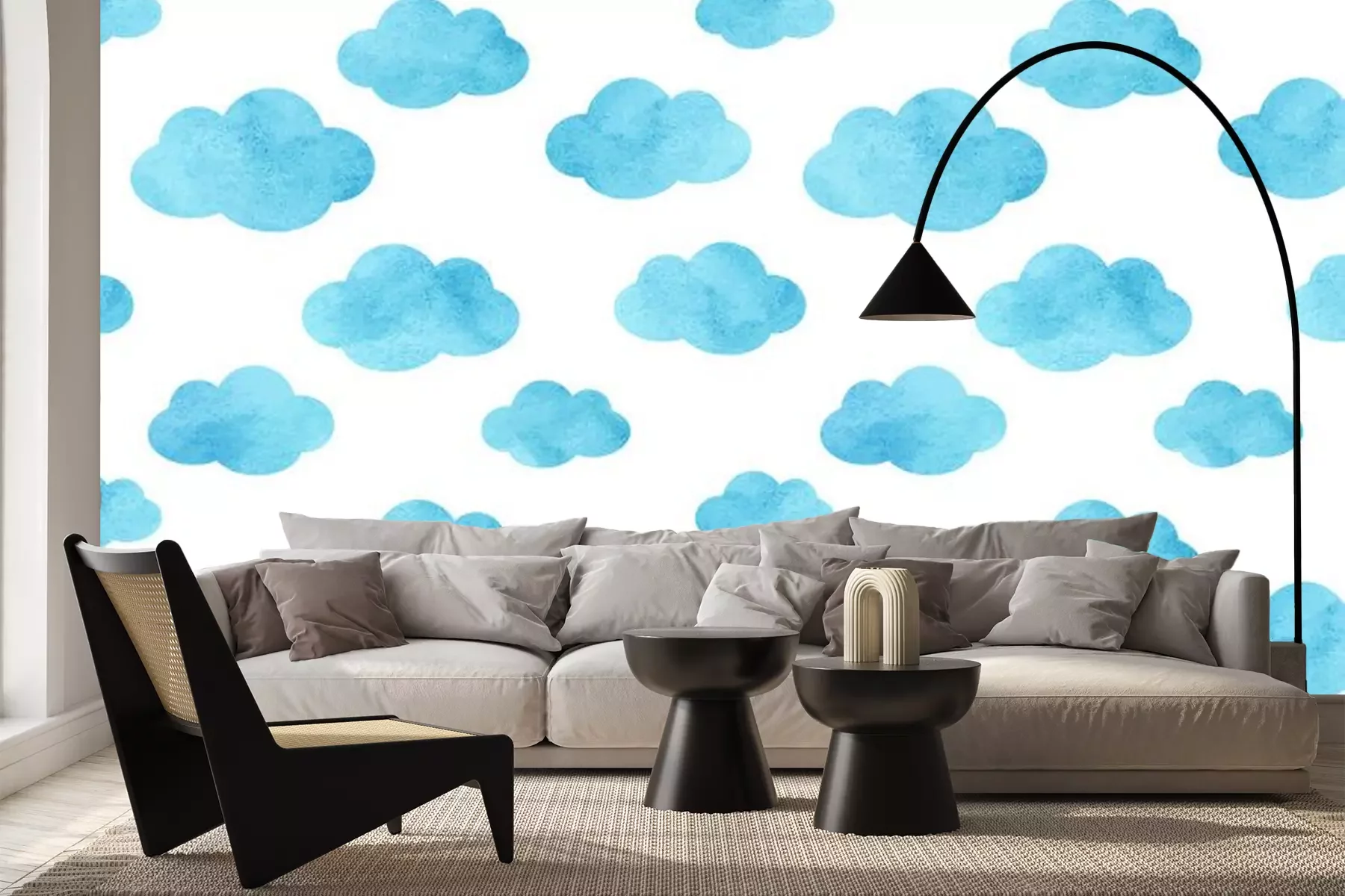 Sticker  Nuages bleus aquarellés sur fond blanc