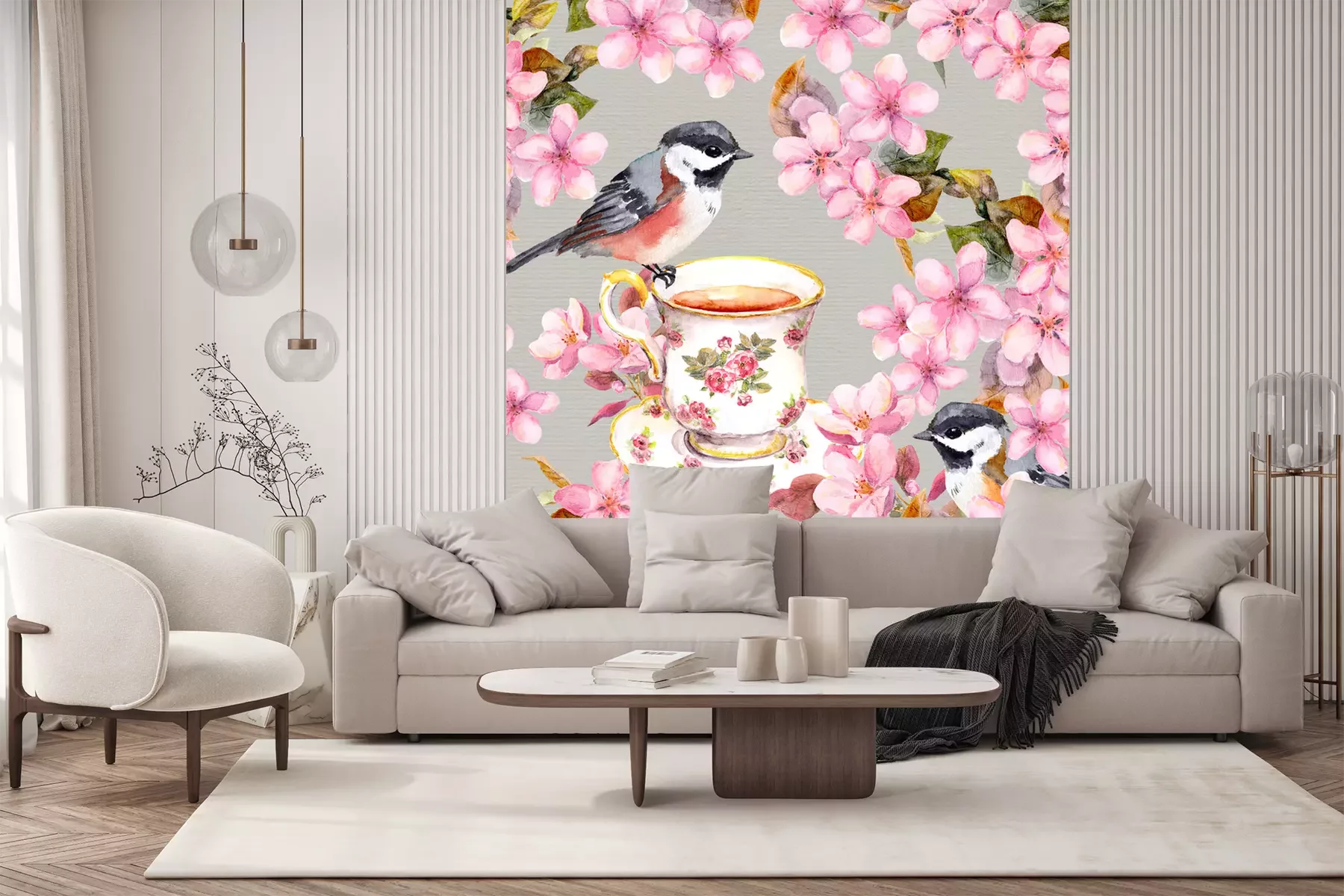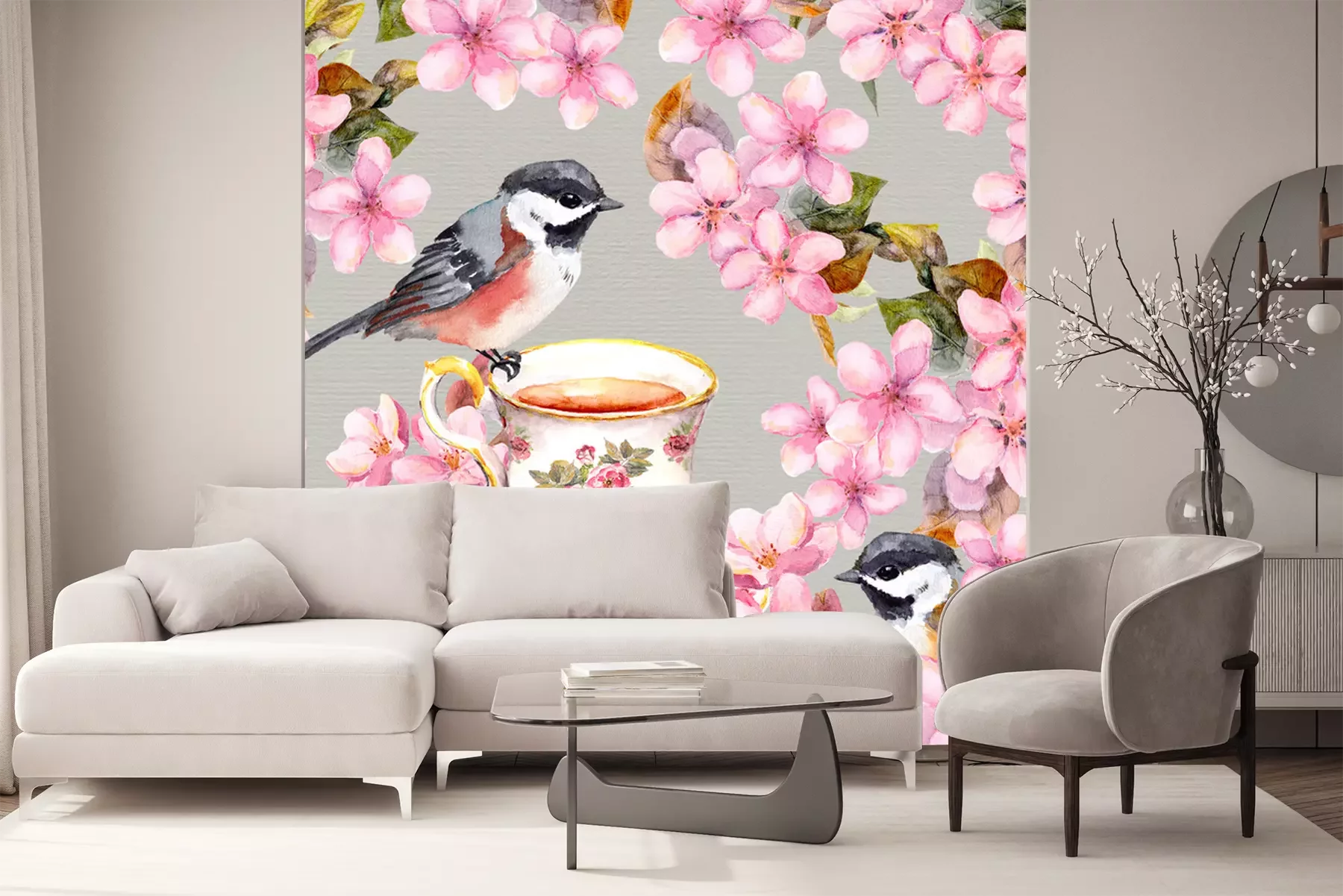 Sticker  Oiseaux de printemps et une tasse