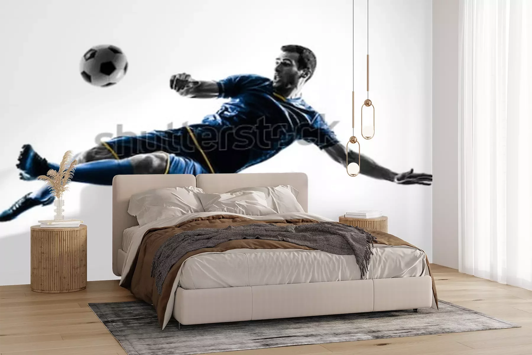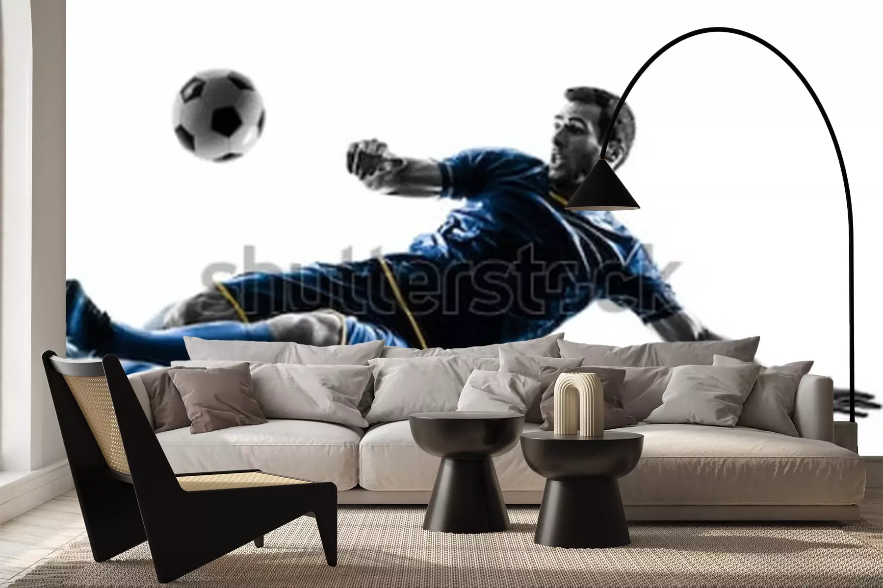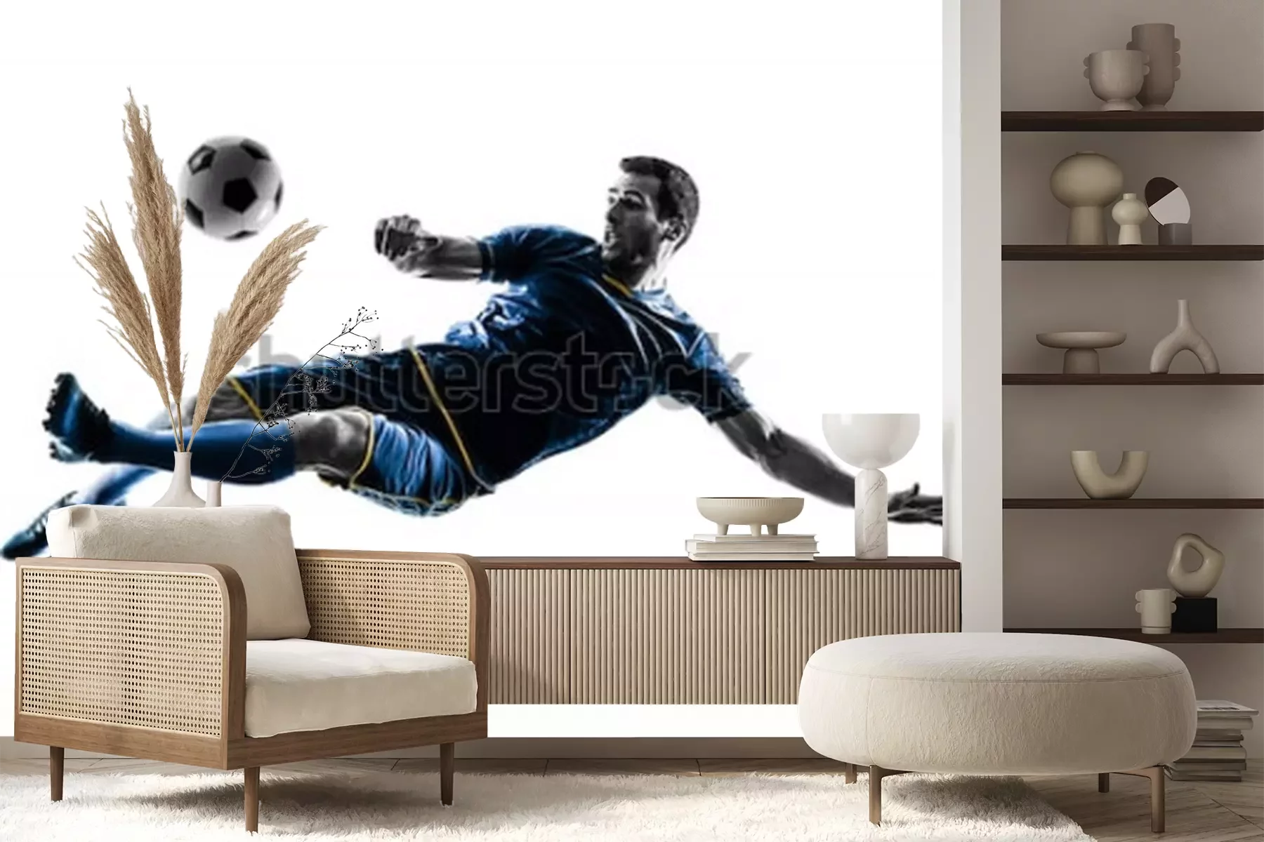 Sticker  one caucasian soccer player man playing kicking in silhouette isolated on white background
